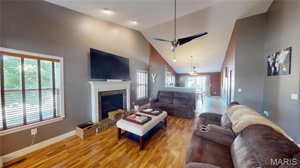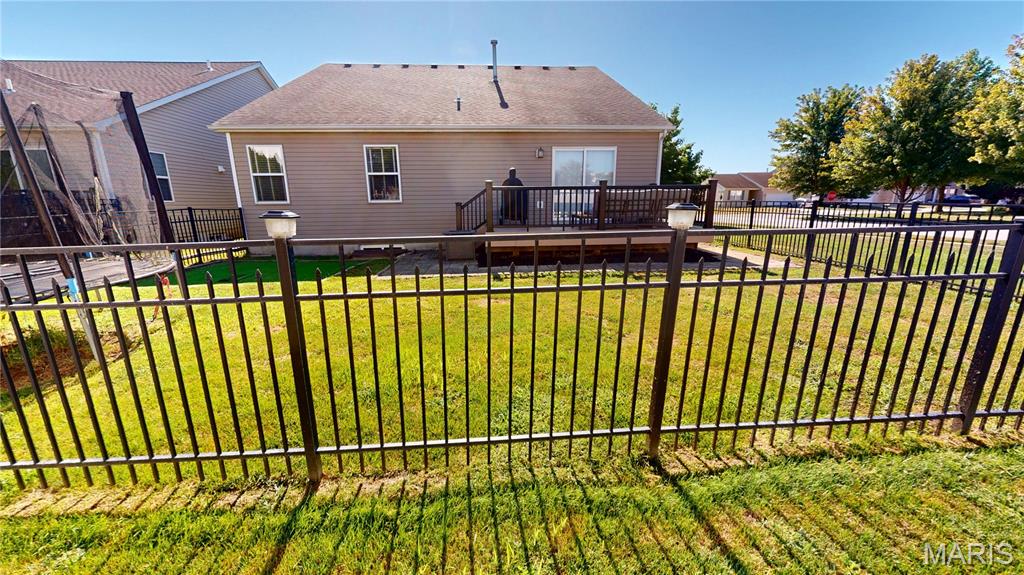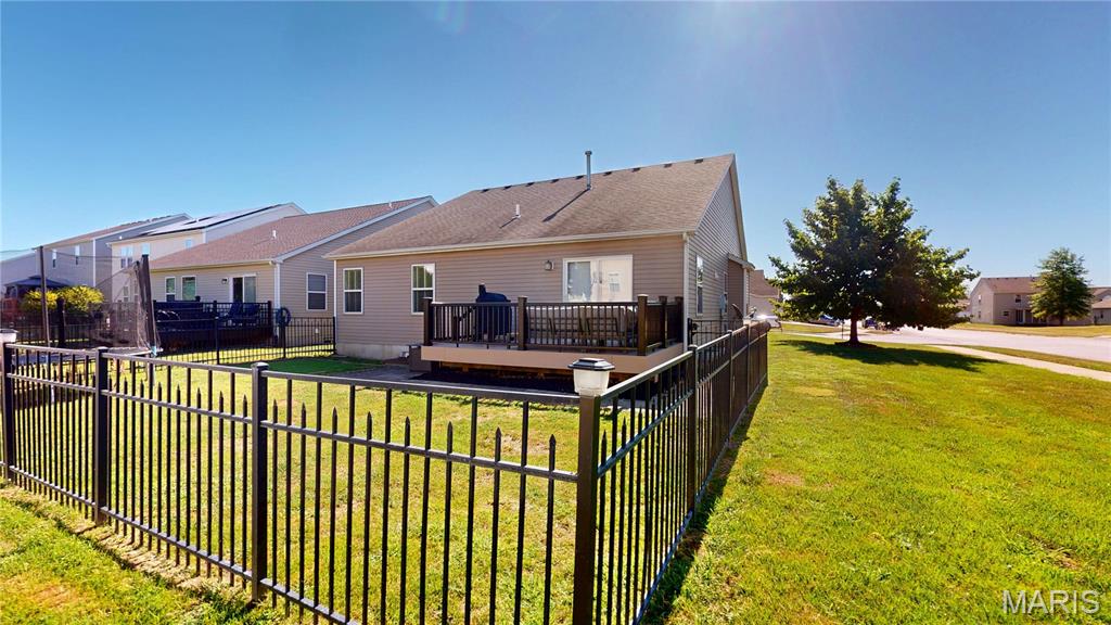 You don’t want to miss out on this beautiful 3 bedroom, 2 bath home on a corner lot. Formal dining with tray ceiling off entry could be used as a spacious office. Large living room with vaulted ceiling and gas fireplace opens up to the kitchen. You’ll love to cook in this well-equipped kitchen featuring staggered hickory cabinets, quartz countertops, and an eat-at island. Breakfast area looks out over maintenance free decking and aluminum fencing. There’s also an irrigation system for your convenience. Large laundry by bedrooms, lovely owner’s suite with 5′ shower and double bowl vanity and large linen closet. Wood blinds, tank-less water heater, full bath rough-in, egress window are more features this home offers. Schedule your showing today!