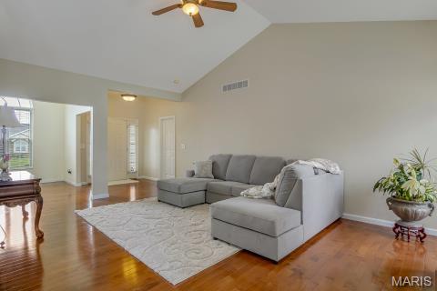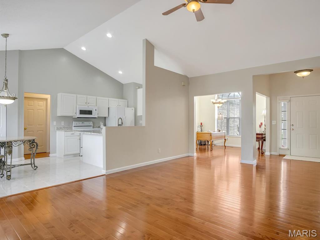BRAND NEW ROOF JUNE 2025!! Welcome to this stunning 4-bedroom, 3-bathroom ranch that effortlessly blends comfort & elegance. This home boasts incredible curb appeal, LUXURY FINISHES & a thoughtfully designed divided floor plan offering both privacy & functionality. Inside, you will love the soaring ceilings, rich hardwood floors & abundant natural light filling the open-concept living spaces. The kitchen is a chef’s dream, featuring granite countertops, ceramic tile flooring & ample cabinetry—perfect for everyday living or entertaining. The finished walkout basement offers a bright and expansive second living area with endless possibilities. With spacious bedrooms, beautifully appointed bathrooms, and premium finishes throughout, this home checks every box. Close to shopping, restaurants, interstate & Scott AFB. Move right in w/ peace of mind knowing this home is already code compliant w/ the Village of Shiloh. (Hot Water Heater & Microwave: 2024,Dishwasher: 2022, A/C: 2020,Kitchen countertops: 2024,kitchen & guest bathroom floors updated in 2025).