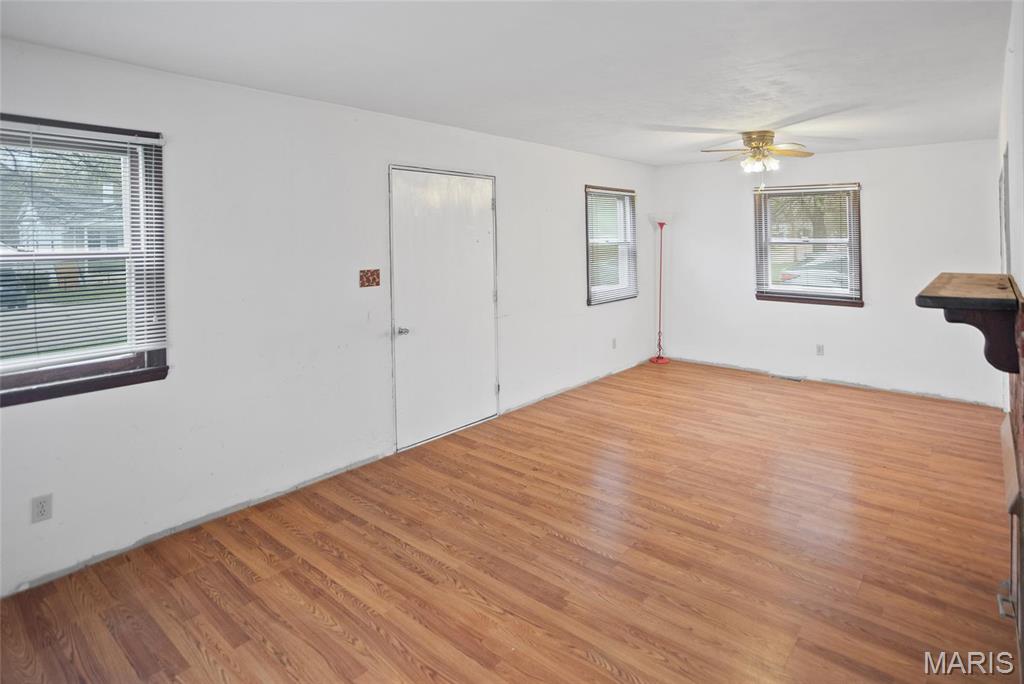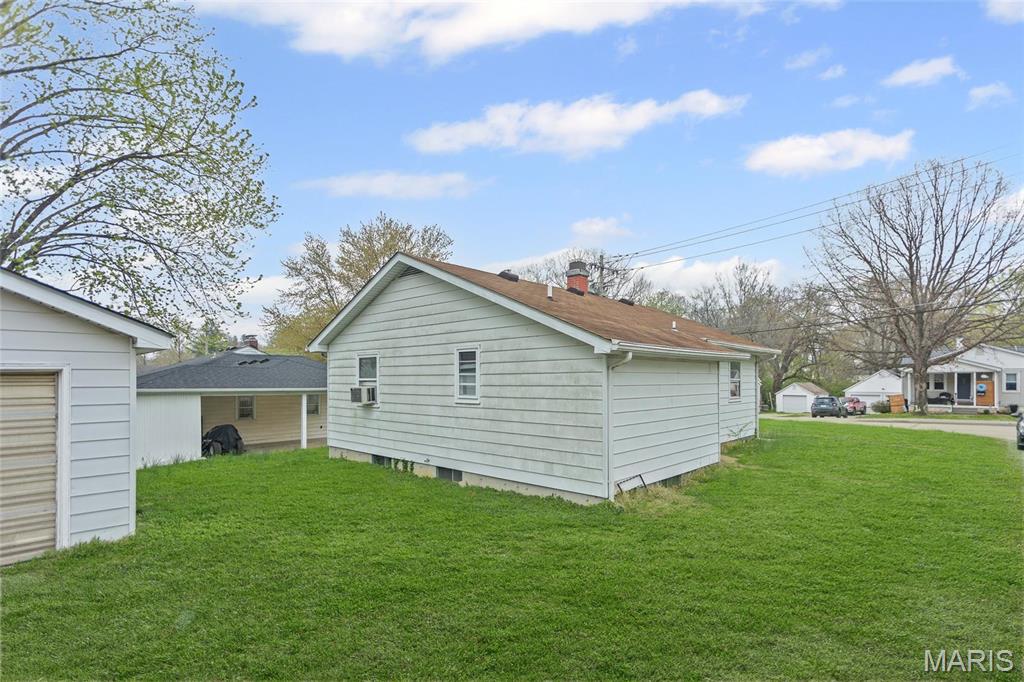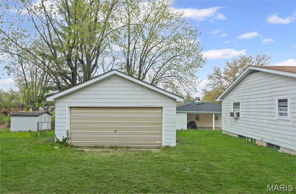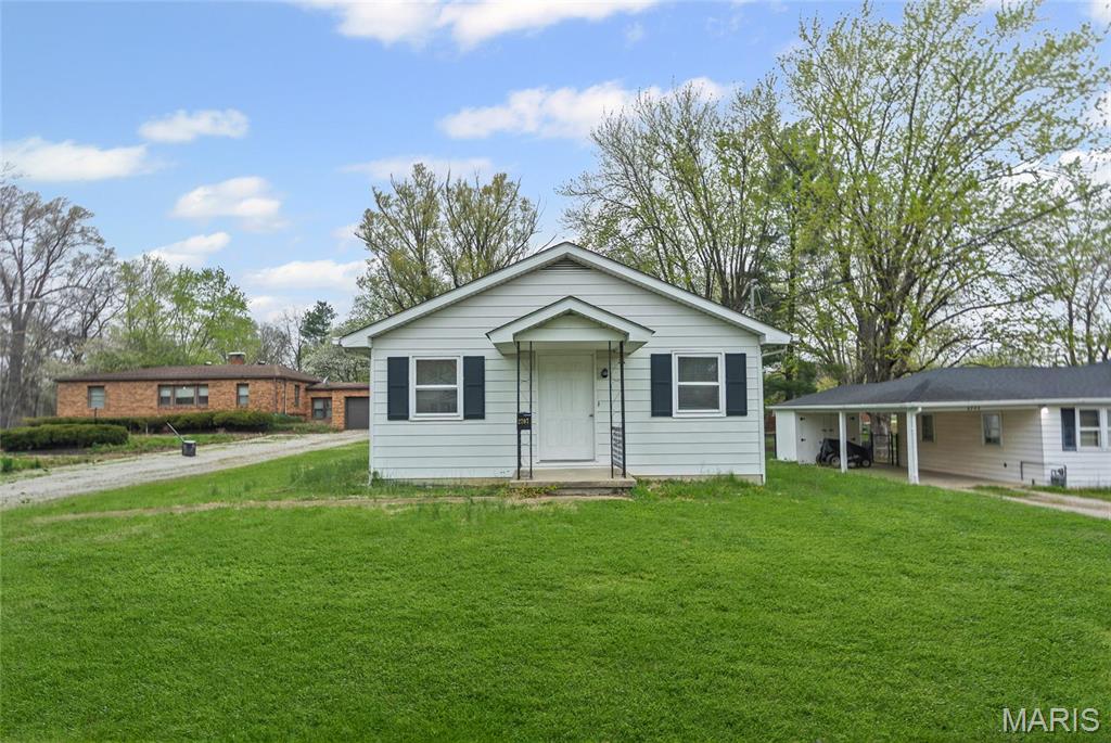 Whether you are looking for a starter home or an investment property, this is it!! Enter into the living/dining room with laminate flooring and a brick wood burning fireplace. The home also offers 2 bedrooms and a full updated bathroom with tub/shower combo. There is a full unfinished basement perfect for storage or finish the space to meet your needs. The oversized detached 2-car garage has electric and would be great for storage or a workshop area. The large backyard offers plenty of privacy and mature trees. This property is affordably priced and centrally located to shopping, schools and Scott AFB. The home is being SOLD “AS IS.”
