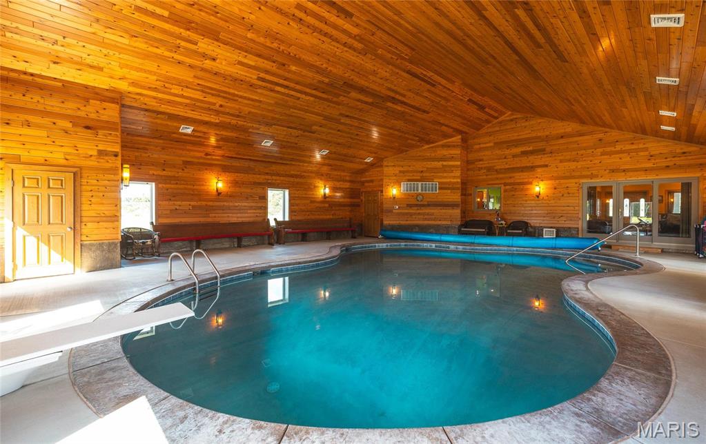 Situated on a picturesque 45+/-acre parcel, this remarkable, 4 bedroom, 3 & a half bath, country estate offers a truly luxurious living experience. This expansive residence provides ample space for both family living & entertaining guests. Large, welcoming living room. Spacious kitchen/dining combo with granite counter tops, center island & pantry. Convenient main floor laundry facilities. Generously sized bedrooms both on the main level & in the lower. Main floor master, 2,000 sq ft indoor pool space with separate HVAC & 3/4 bath. Covered house length front porch, covered stamped concrete patio. 6 in. thick concrete wall construction, fully accessible 36″ doorways & level thresholds. Full, finished, lower level with 9 ft ceilings. GeoThermal HVAC, dual electric water heat. Excellent hunting property. Embrace the splendor of rural living in this exceptional property. Call today & see this one for yourself. Also see 23048827 for house and 5 acres.
