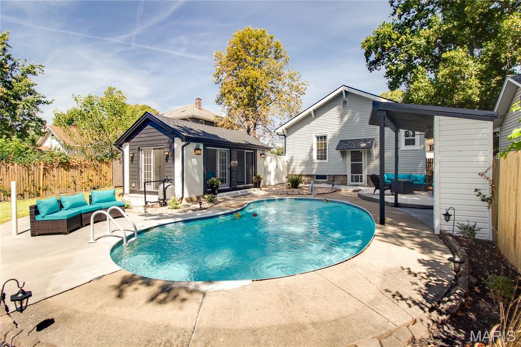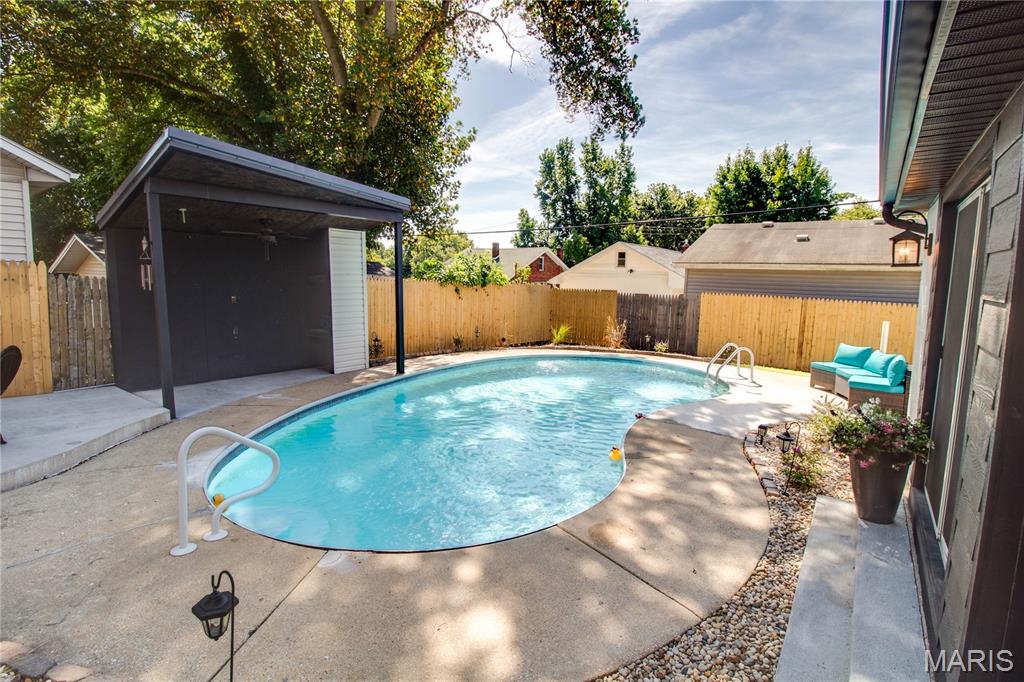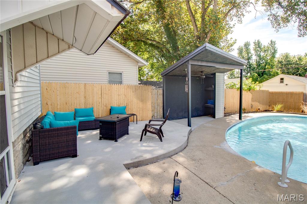 Welcome to this charming 2-bedroom, 1-bathroom bungalow with an inground pool, pool house & sun porch. This beautifully landscaped home combines a cozy charm with outdoor living at its best! Step inside the sun porch, with new windows, that offers a relaxing retreat year-round, filled with natural light and ideal for morning coffee or an evening read. This home offers an inviting living room with wood burning fireplace that flows seamlessly into the dining area, perfect for entertaining or enjoying quiet evenings at home. Outside, enjoy your private fenced-in backyard oasis featuring a sparkling inground pool and a pool house, ideal for hosting summer gatherings or simply unwinding in your own retreat. The unfinished basement provides ample room for additional storage, waiting on your finishing touches for potential added entertaining space. This home is move-in ready and offers a wonderful balance of comfort, style, and functionality. Don’t miss your chance to make it yours!