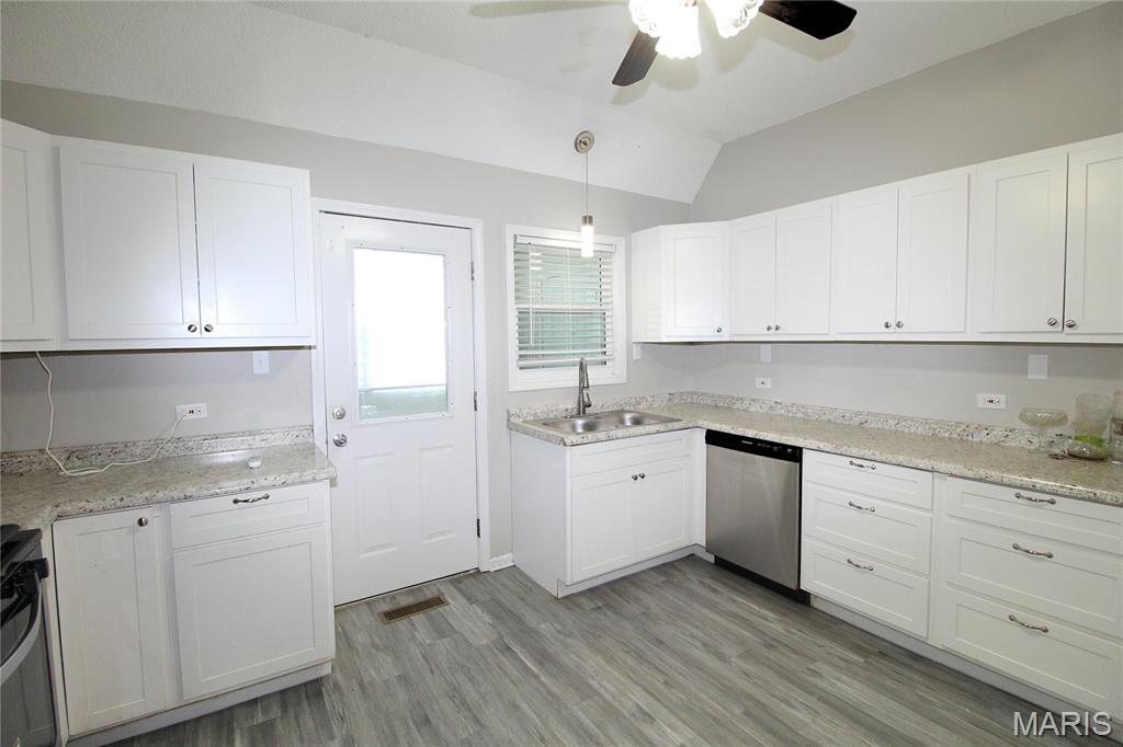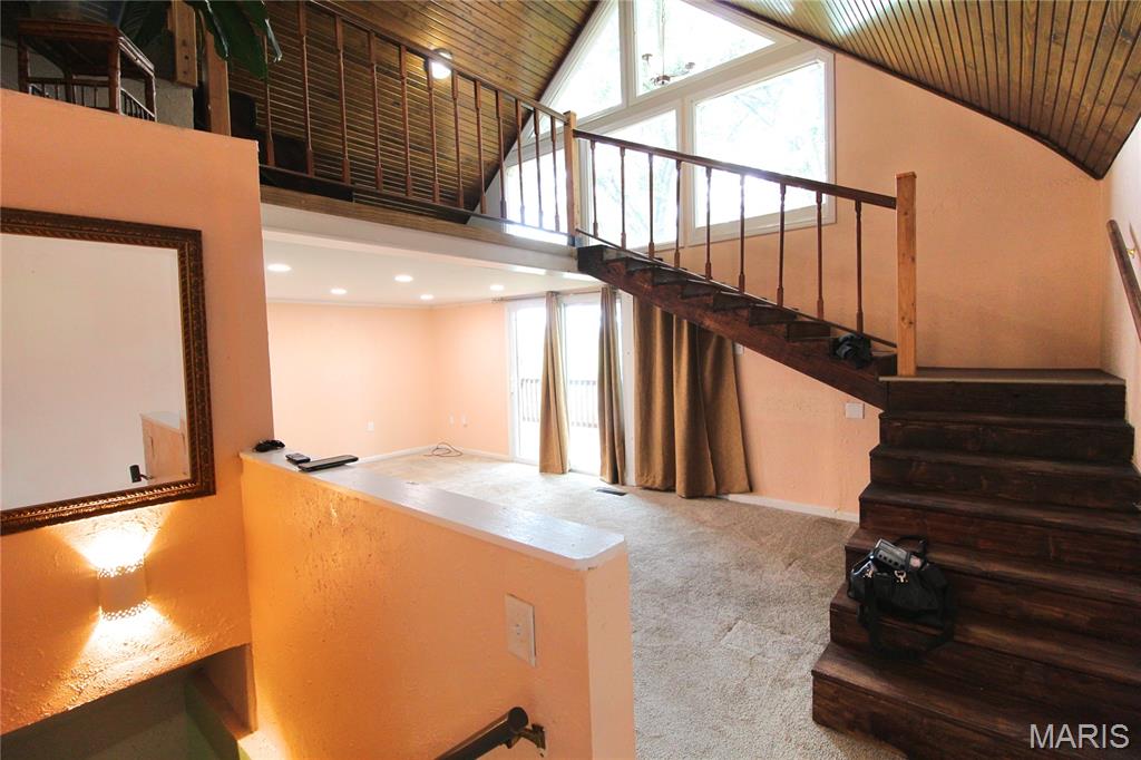 Welcome to 27939 County Hwy 8 in Dubois, IL! This beautifully updated 3-bedroom, 3-bath A-frame home blends rustic charm with modern comfort. The main level features a spacious living and dining area with vaulted ceilings, a well-appointed kitchen with pantry storage and stainless steel appliances, a primary bedroom, guest bedroom, full bath, and a convenient laundry/mudroom. Off the kitchen, enjoy your morning coffee in the sunroom or step out onto the deck for peaceful privacy. Upstairs, a newly designed loft space fills the home with natural light and leads to the third bedroom and another full bath. The unfinished basement provides abundant storage, an additional full bath, and your own personal sauna. Outside, the fenced yard and greenhouse make gardening a joy, while the oversized 2-car garage offers plenty of space for vehicles and tools. Set on a serene rural lot yet just minutes from town, this one-of-a-kind home is ready for its next chapter. Schedule your private showing today!