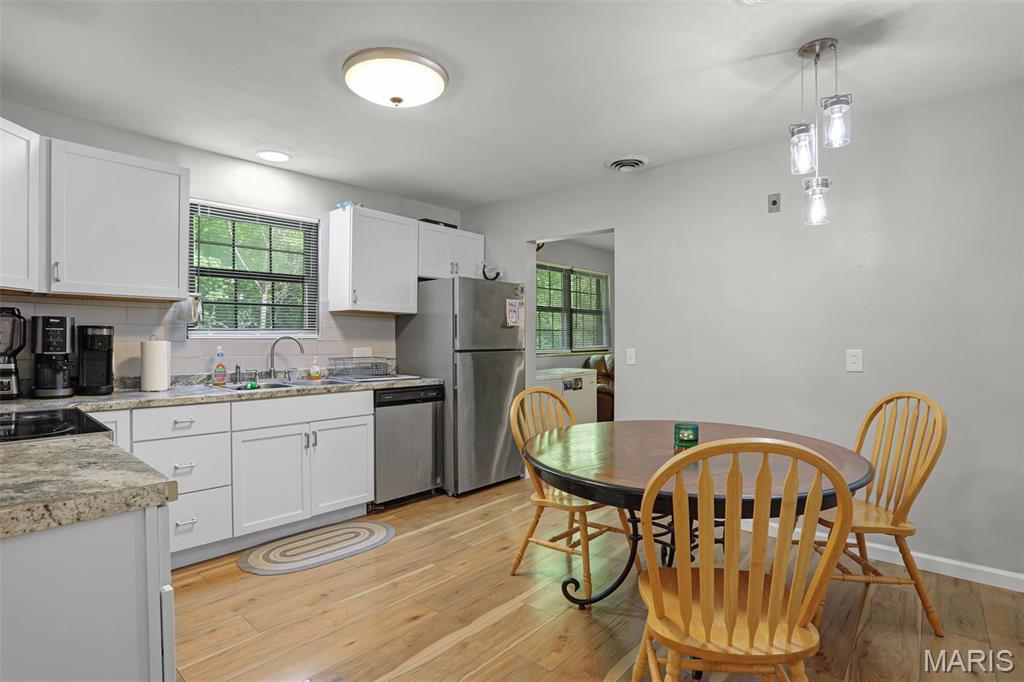 Welcome to your new home. 5 bedroom, 3 bath, well maintained home in a quiet neighborhood. Sits toward the end of a culdesac. Improvements include newer furnace and AC, New hot water heater in 2024 and updated landscaping. When you walk in you see tons of natural light through the bay window in the family room. A large eat in kitchen and a separate dining area ideal for family dinners or holiday celebrations. The sliding glass doors lead to a deck overlooking your wooded backyard. Upstairs you’ll find 5 large bedrooms with a Jack and Jill style master bath allowing access from an additional bedroom. 2nd full bath has a recently remodeled tile shower with plenty of space. The lower level boasts great storage and a laundry room. New in 2024; washer and dryer stays with the home as well as the 65″ TV. A walk -out basement leads to the whole house generator which is a major plus for this home. Schedule your showing today! This is a must see.