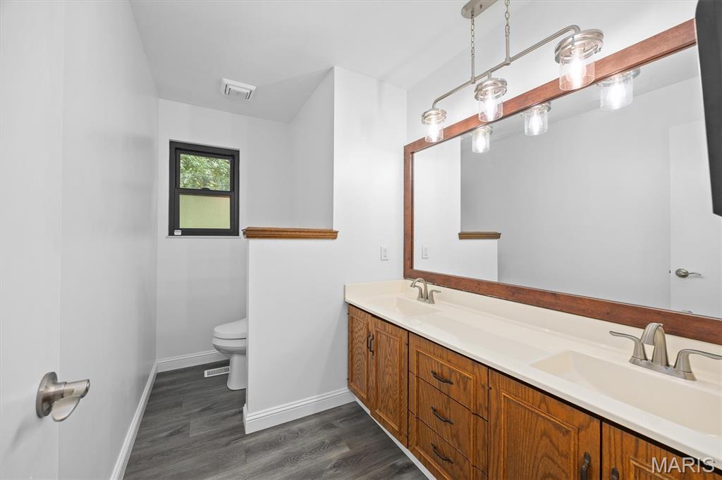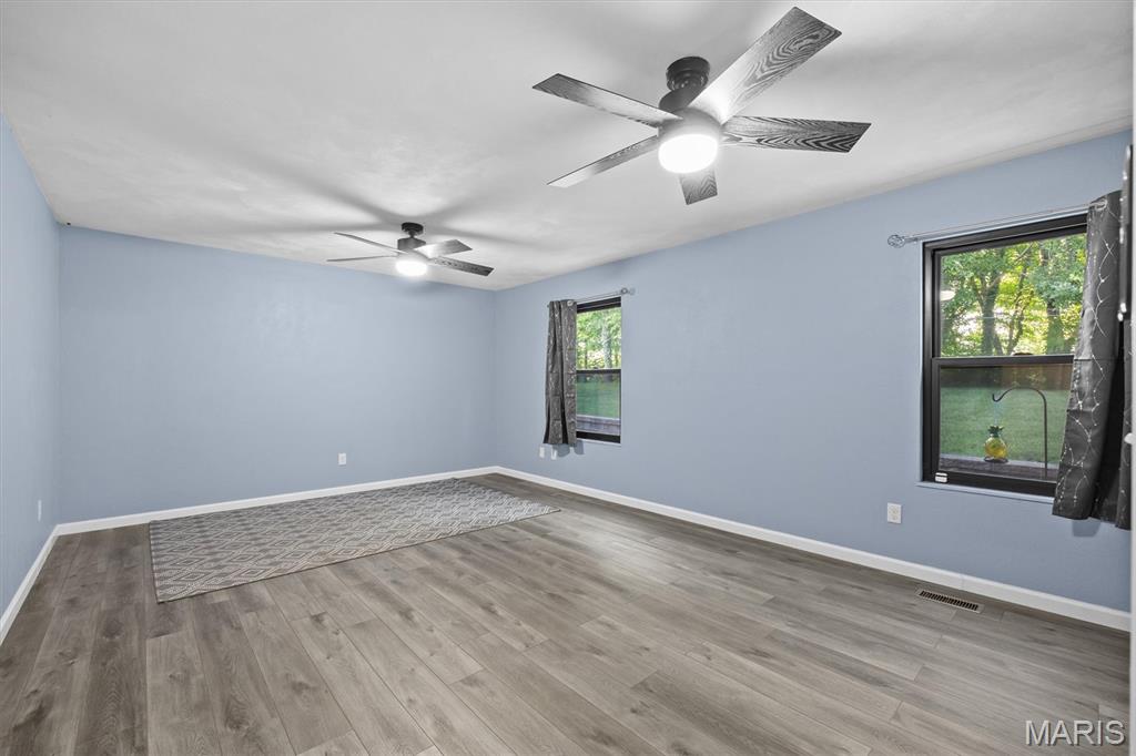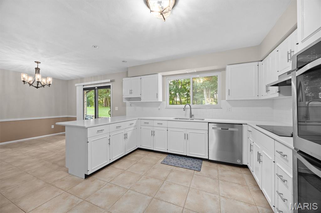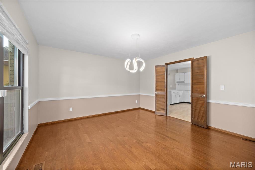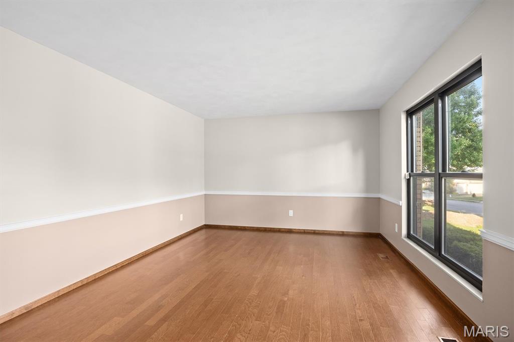 Cul-de-sac living at its finest! This beautifully updated 5 bed, 2.5 bath home backs to serene woods and features a side garden perfect for the green thumb. Formal living and dining rooms complement the spacious family room with a striking fireplace and access to the patio. The updated kitchen boasts white cabinetry, quartz counters, custom-paneled fridge, and wooded views. A large main-level bedroom is ideal for guests or a home office. Upstairs, find 3 bedrooms, a refreshed hall bath, and a spacious primary suite with walk-in closet, ensuite, fireplace, and private balcony. Oversized 2-car garage with EV outlet and attic storage. Updates: Renewal by Andersen windows (2021), HVAC (2021), water heater (2023), roof (2012). Located in sought-after O’Fallon schools and minutes to downtown.