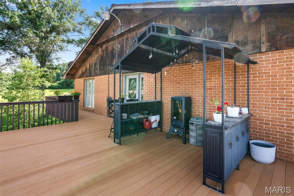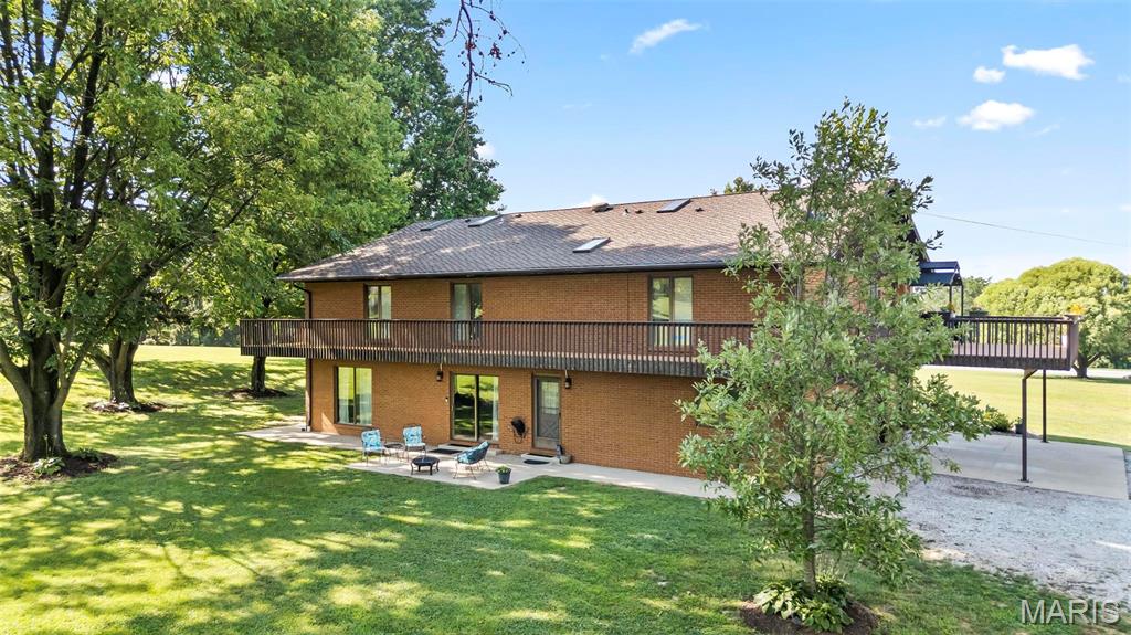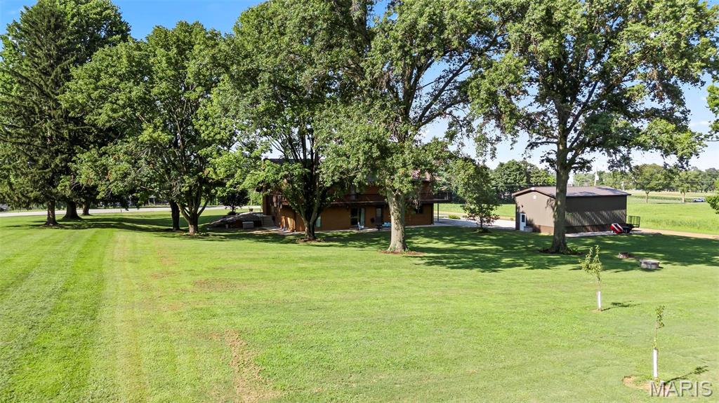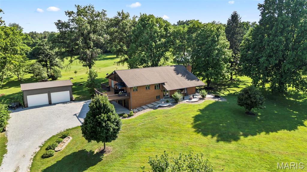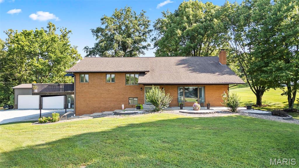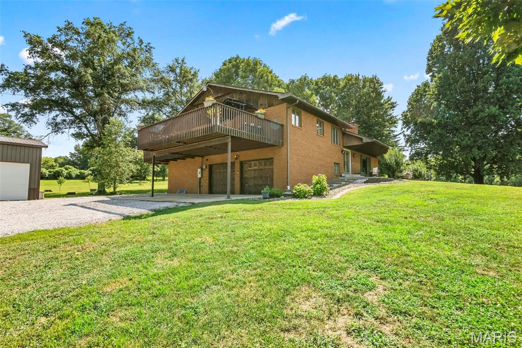 This impressive 5-bedroom, 4-bathroom custom brick home offers approximately 4,295 square feet of living space perfectly situated on a scenic 2.99-acre lot. Whether you’re seeking space, self-sufficiency, or a serene retreat, this property delivers. Enjoy the freedom of country living with room to roam and relax. A highlight of the property is the expansive wrap-around deck—perfect for outdoor entertaining or quiet evenings surrounded by nature and shaded by a row of established trees. A large Cleary pole barn with 30A electric and a mezzanine is perfect for equipment, vehicles, or hobbies. Private well, septic, buried propane tank, and a whole-house generator ensures self-sufficiency and peace of mind during any season. Inside, the home features multiple living areas and a flexible layout ideal for entertaining, working from home, crafting; even multi-generational living. The family room has big ceilings, a nice view out front, and a fireplace and is a really perfect gathering area. The huge functional kitchen and dining areas flow beautifully and offer long views over the adjacent deck and the surrounding acreage. Convenient full pantry and utility areas. Double shower in the primary suite. Huge basement unfinished storage you will never tire of compliments the finished walkout apartment-like basement. Large concrete patio area. Pella windows. Water softener and filtration. Central vac. Mascoutah schools. Close to Scott AFB. Schedule your private showing today. Hurry!