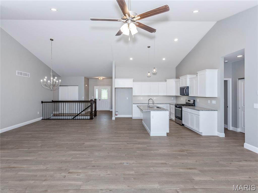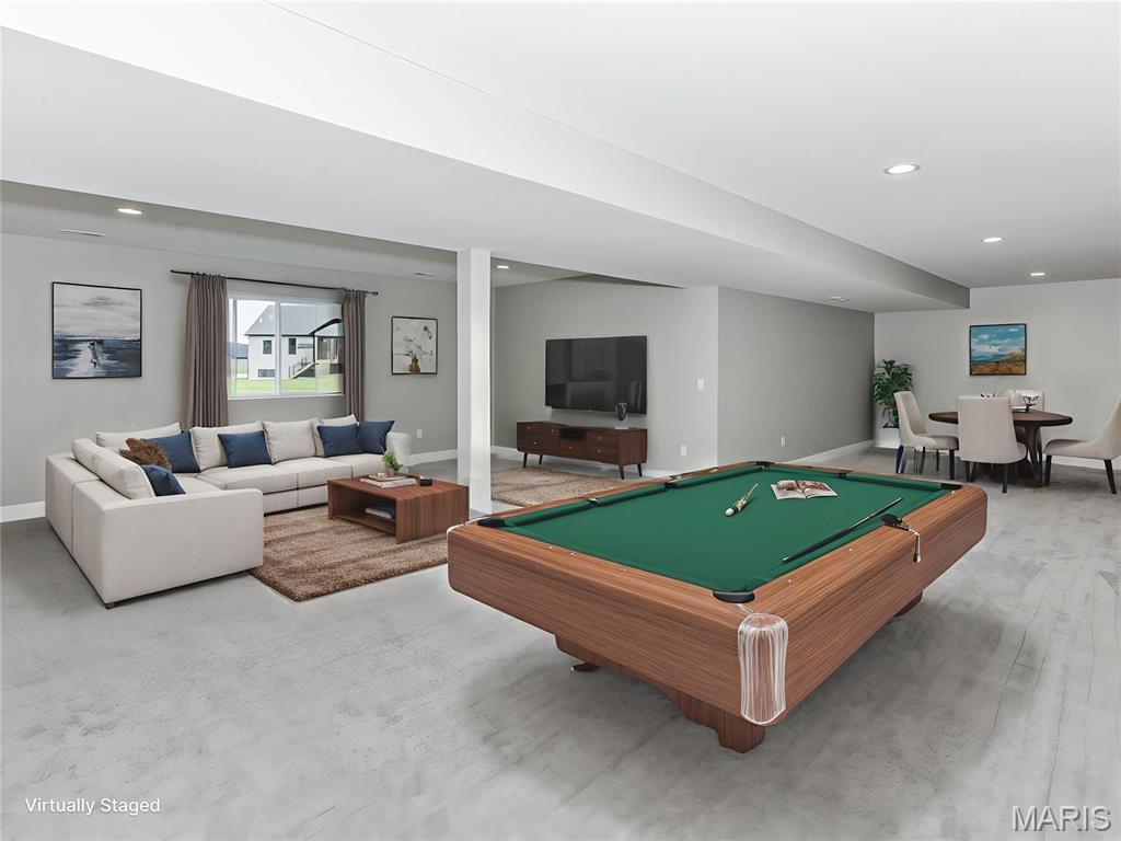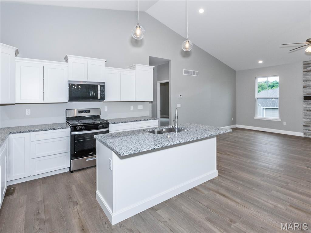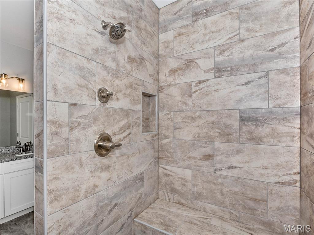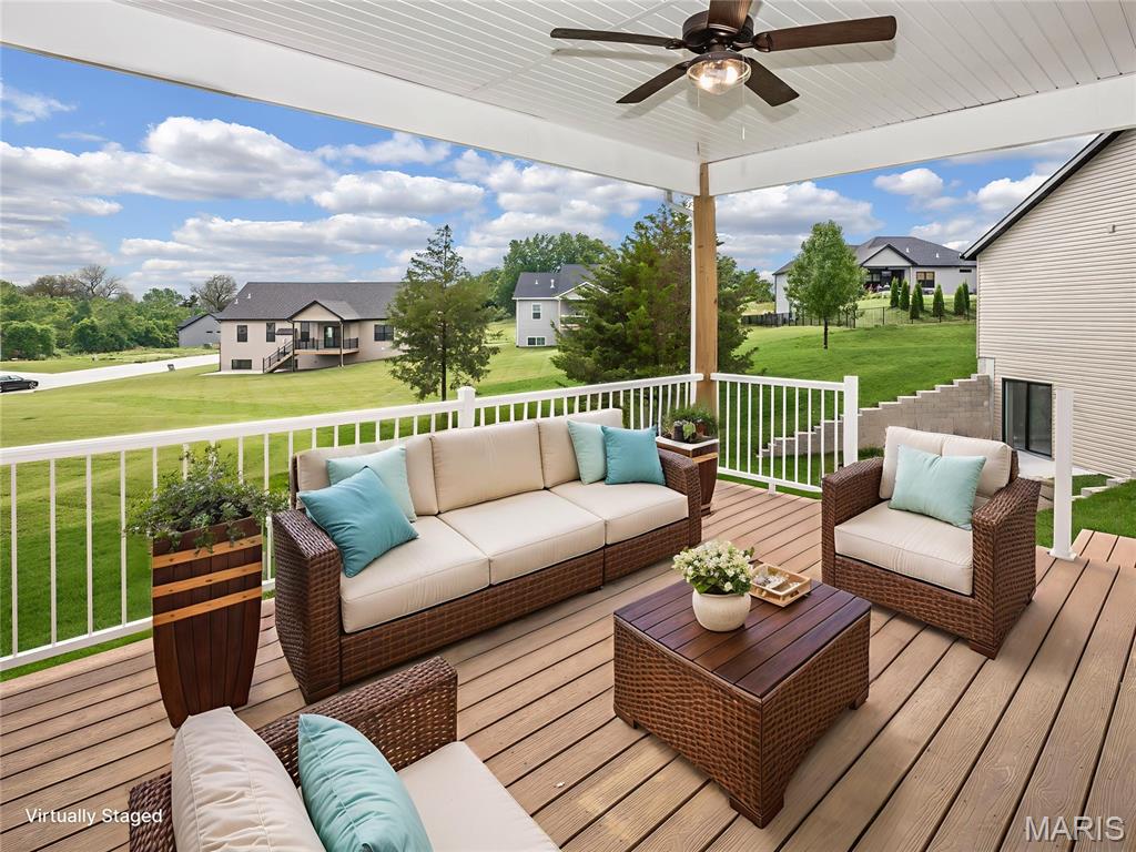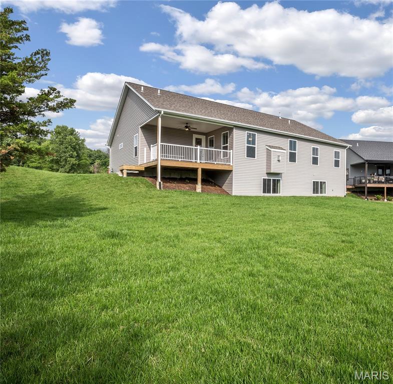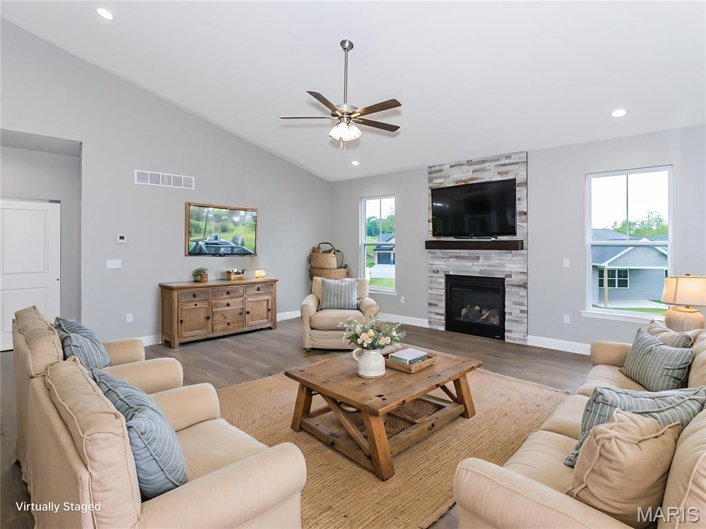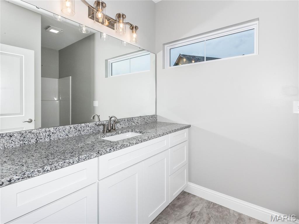 Open, spacious floorplan! Living room with stone fireplace (gas) and vaulted ceiling, dining room with door to covered deck. Kitchen features expansive white cabinetry, granite countertops & center island/breakfast bar! In the primary suite you will find a large bedroom w/ensuite that features 4×7 walk in shower with beautiful tile work, dual bowl vanities & walk in closet! Two addl. main floor bedrooms are nicely sized. Main floor laundry. Lower level with daylight windows offers a spacious family room, game area, 4th bedroom with walk in closet and full bath. Large storage room. Very close to SIUE and all Interstate, Shopping and Dining!