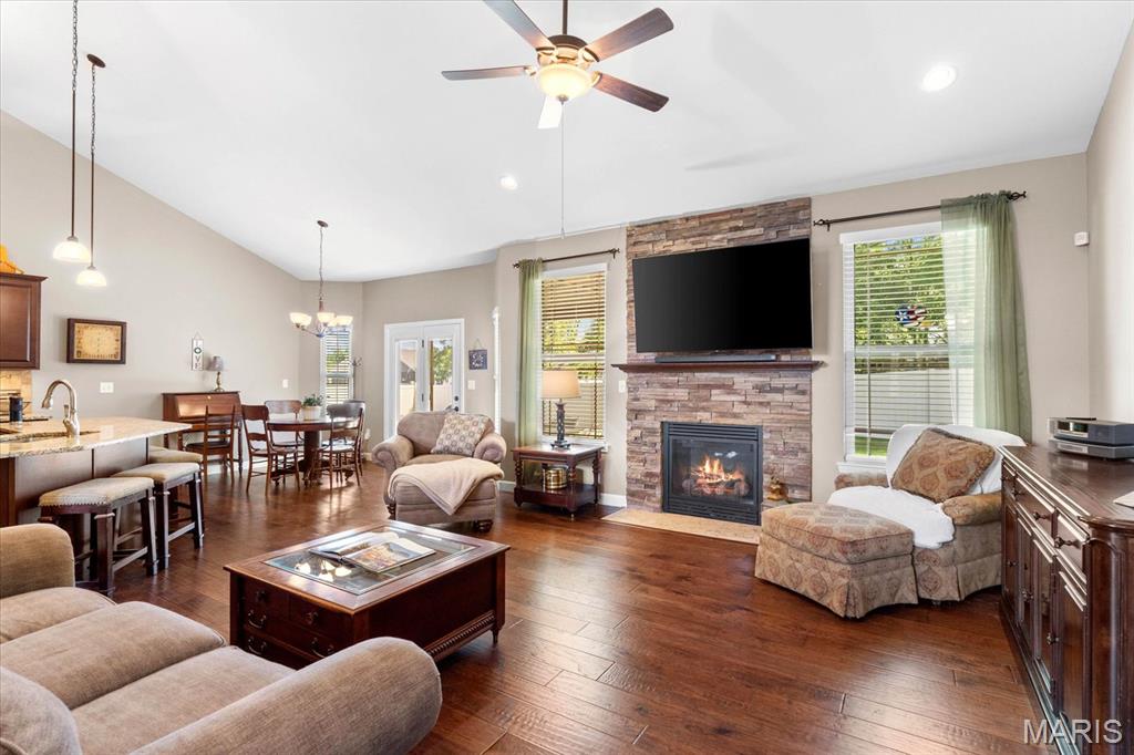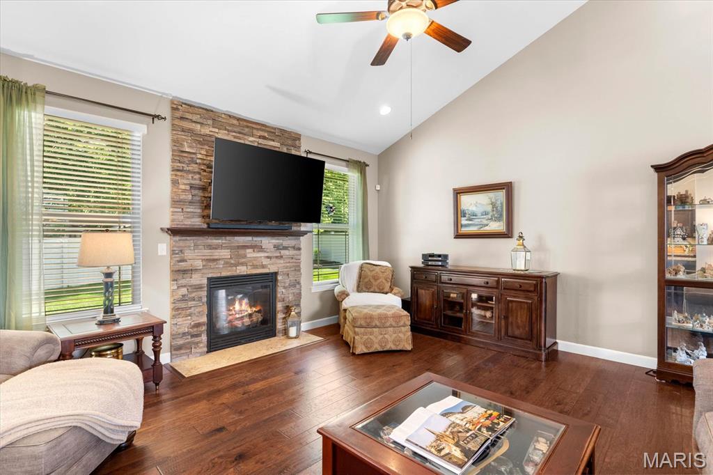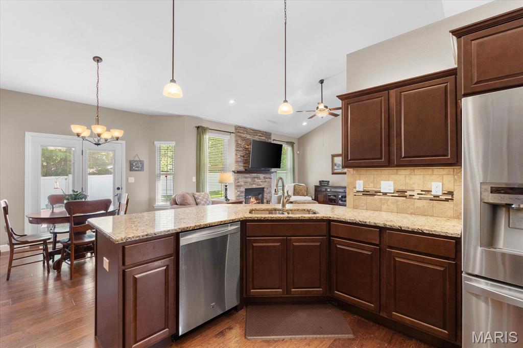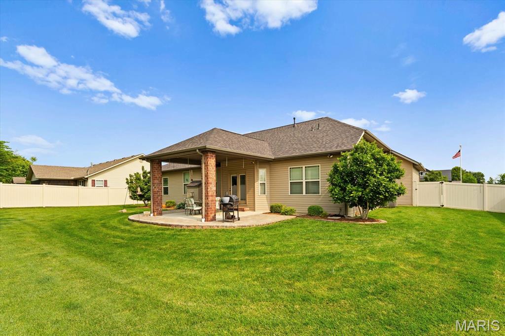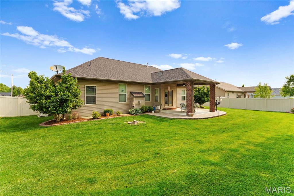 Welcome to Your Dream Home in Stonebriar! Discover this beautiful home in the sought-after community of Troy, IL. Featuring 4 spacious bdrms and 3 full bathrooms, this stunning home offers 2,890 sq ft of luxurious living space. As you approach, admire the lovely stone accents and charming pathway that create a welcoming first impression. The 3car garage enhances curb appeal and provides ample parking, while a flagpole adds a nice touch. Step into your private backyard oasis, enclosed by a durable vinyl fence. The landscaped yard boasts colorful flower beds, perfect for sunny afternoons. The covered patio is ideal for outdoor entertaining, complete with brick pavers and a ceiling fan. Inside, the grand foyer greets you with beautiful hardwood flooring and abundant natural light. The spacious living room, with vaulted ceilings and a cozy gas fireplace, offers a perfect setting for relaxation. At the heart of the home is the kitchen, featuring modern stainless steel appliances, light stone countertops, and stylish pendant lighting. The breakfast bar and staggered cabinetry provide both function and flair. Retreat to the luxurious master suite with recessed lighting and a tray ceiling. The spa-like ensuite includes a whirlpool tub and sleek shower. Additional bedrooms ensure privacy for guests.