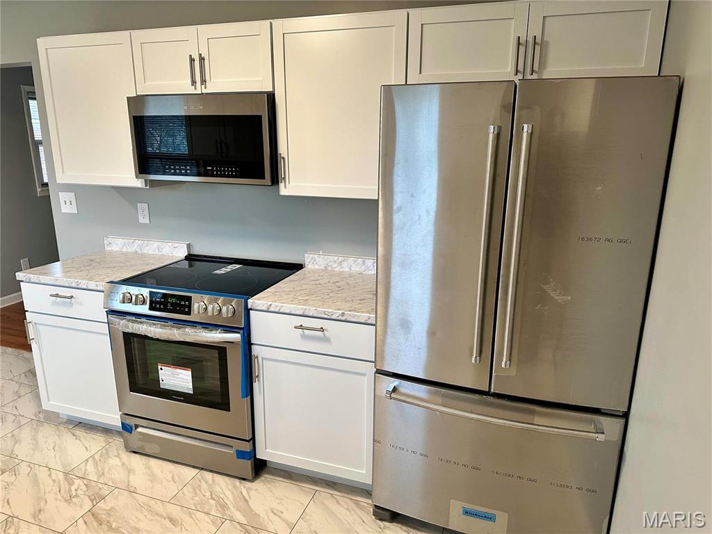 HOUSE TO TOUR: SUNDAY, AUGUST 24TH NOON-1:00P.M. Conveniently located North Alton property situated on secluded cul-de-sac has been recently renovated. Nice floor plan features 3 finished levels each featuring a bathroom. Spacious walk-out basement, attached garage, replacement windows, new water hater, attractive hardwood, & main level bedroom. Newly remodeled kitchen w/ upgraded stainless range, built-in microwave, large refrigerator, & dishwasher. Ample-sized bedrooms w/ private views of wooded area beyond backyard. New light fixtures, ceiling fans, & fresh paint. Property is available for immediate move-in. Tenant responsible for utilities & yard maintenance. Pets generally allowed; terms negotiable. No indoor smoking. Preferred qualifications include 6+ months at current job, 600+ credit, combined income at least 3X rent after taxes, no evictions, clean background, & minimum 18 month lease. Certain exceptions may apply for students. Locally owned/managed. Listing agent has ownership interest. Great place to live, come have a look!