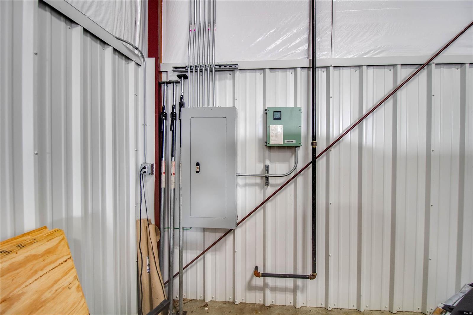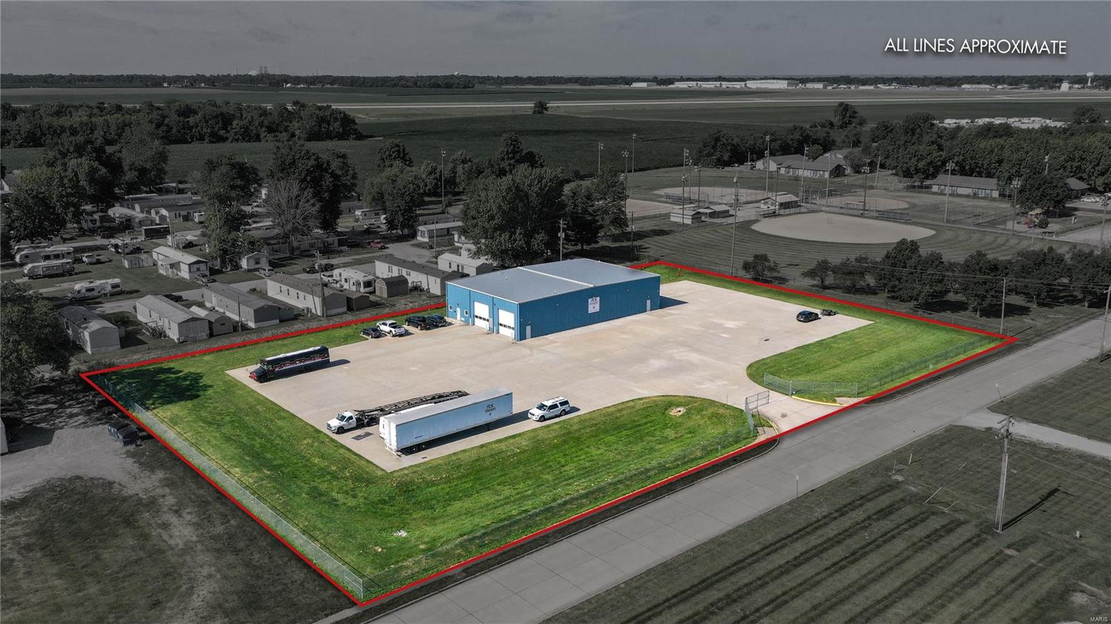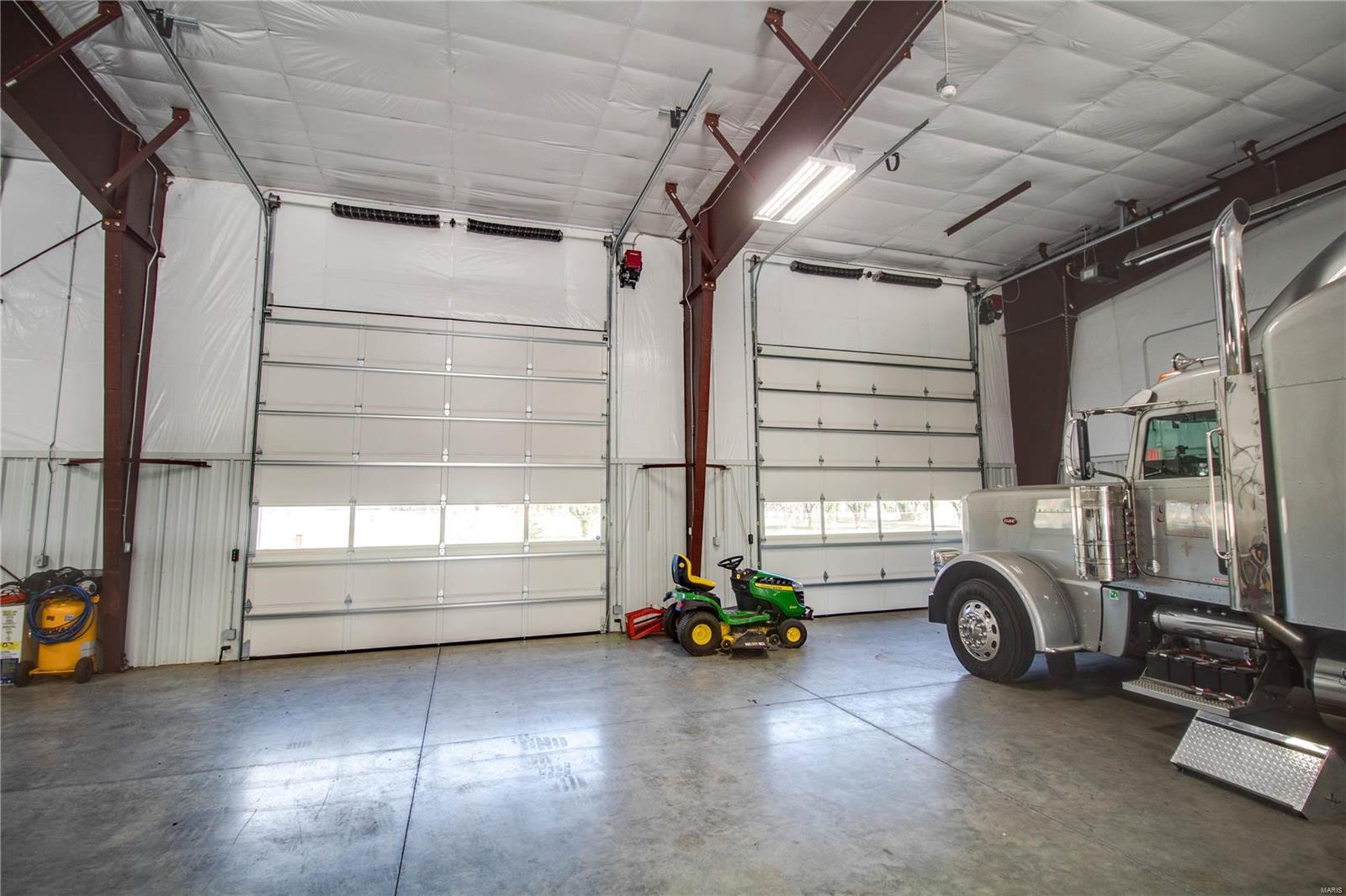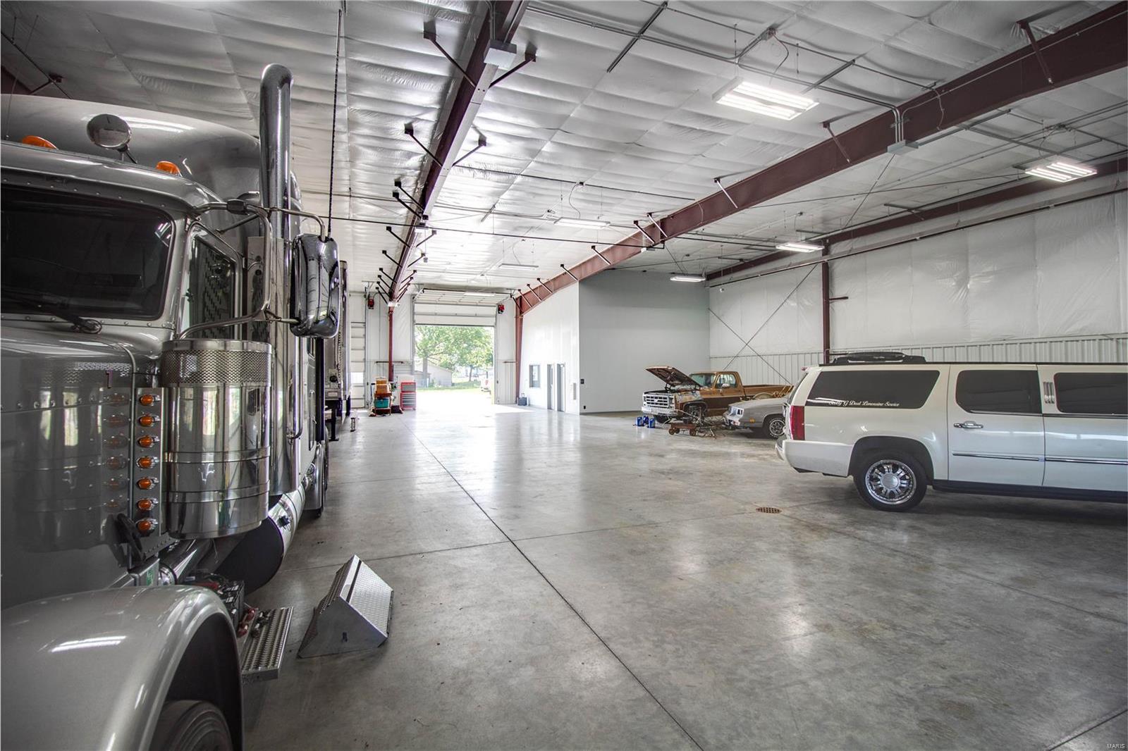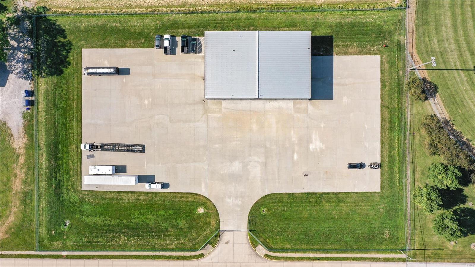 Don’t miss out on this amazing commercial opportunity! Situated on 2.96+/- acres, this expansive 103 by 65 insulated metal building with 20 foot ceilings features (4) 14 ft. by 14 ft. roll doors and gas ceiling heaters in the main shop space. Spacious office area with climate controls. The half bathroom with mop sink has doors leading into the office AND the main garage space. The 8″ reinforced concrete is both inside and outside, and is rated for 80,000 lb. vehicles. There is 250amp power service, and the entirety of the 40,000 sq. ft. concrete lot is secured with a chain link fence and gate. Call today and picture the possibilities of your next commercial venture in person at this desirable Bethalto property. Location: Other