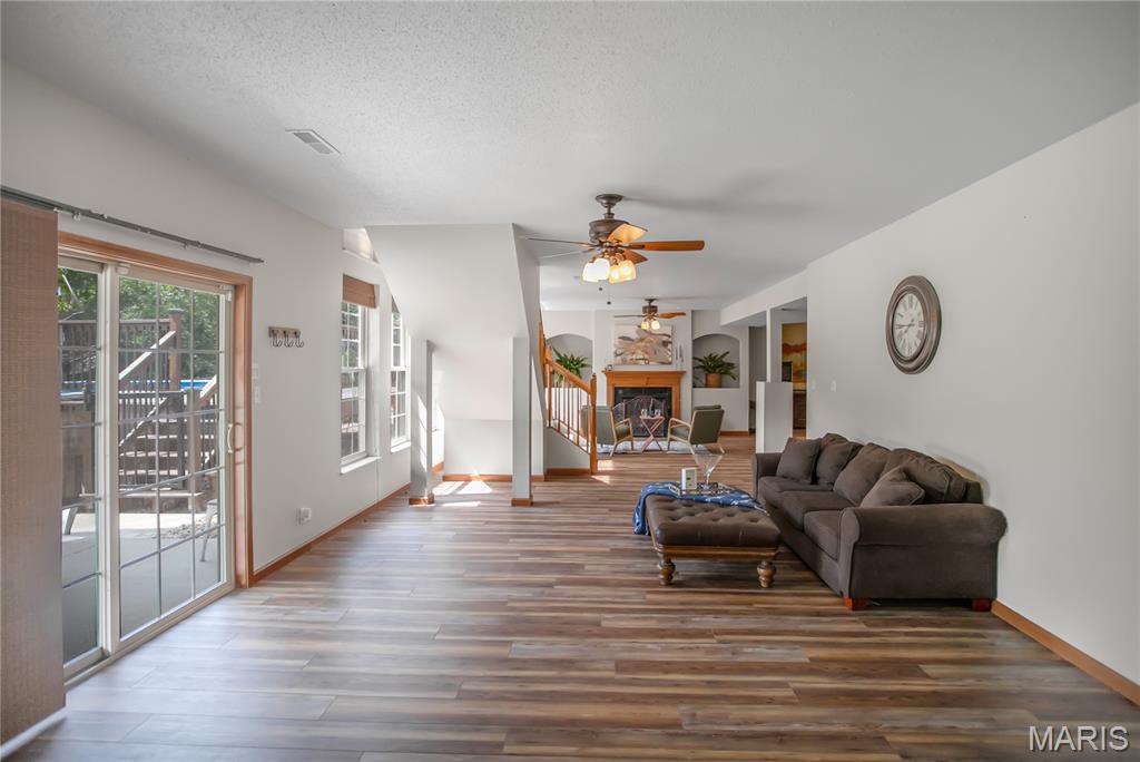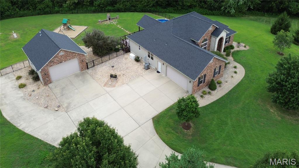 Welcome home to this impressive atrium ranch tucked away on just over 2 acres at the end of a cul-de-sac in Highland School District. This home features gorgeous hardwood floors flowing throughout the living room, kitchen and dining area. The kitchen is a hostess with the mostest dream with quartz countertops, bar seating, custom maple cabinetry, under cabinet lighting, tile backsplash, and all stainless steel appliances included. Enjoy indoor-outdoor living with a massive, partially covered back deck overlooking a fenced in backyard, playset area, fire pit and above ground pool with attached pool deck. The master suite offers spa-like vibes with a beautiful curbless glass shower, double vanity and walk in closet. The spacious walkout basement includes a family room, workout area, gas fireplace and beautiful wet bar with a built in artisan coffee center and wine rack. Plenty of storage in the lower level as well. Recent updates include 2024 AC unit, 2023 Roof/downspouts, 2023 Aeration system, 2018 hot water heater, You’ll love the oversized heated attached garage plus a 26’x23′ detached garage with heating/cooling and 10 ft door. There’s even a concrete pad with 30-AMP RV hookup, plus a whole-house generator hook-up. Work out area in lower level could easily be converted into a bedroom by just building a wall and closet. Just minutes from the Highland Country Club. From morning coffee on the deck to cozy evenings by the firepit, this home was made for everyday memories!