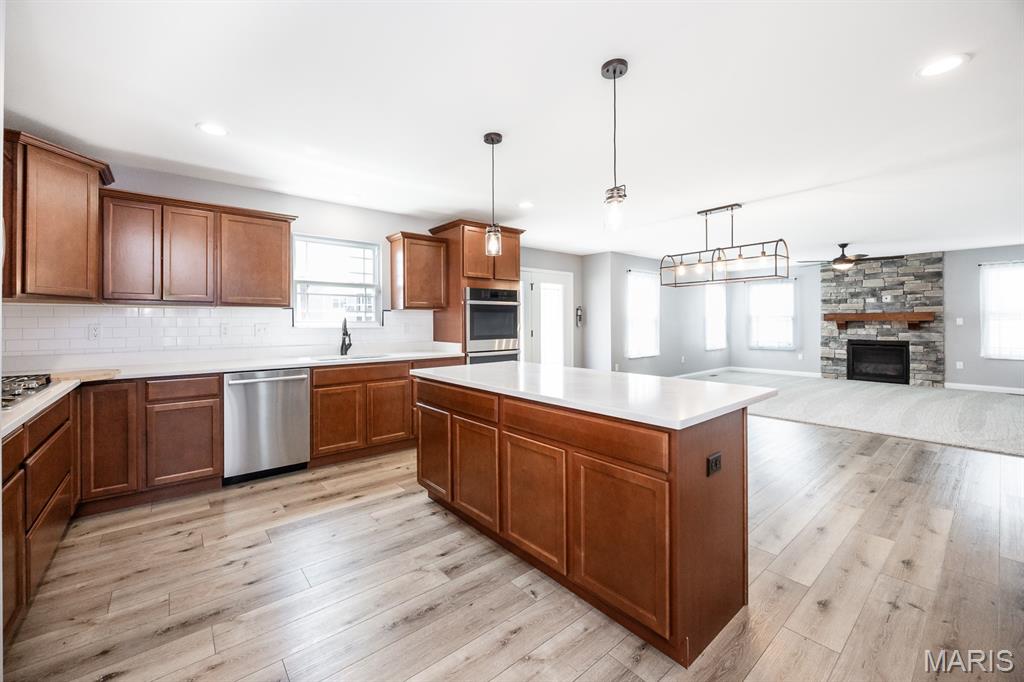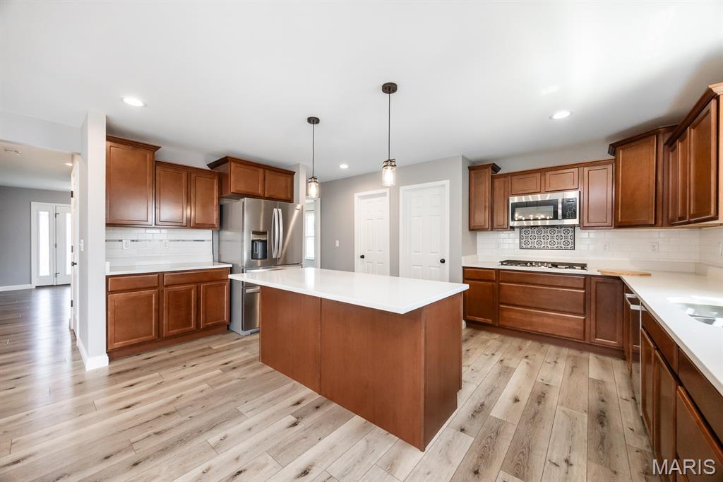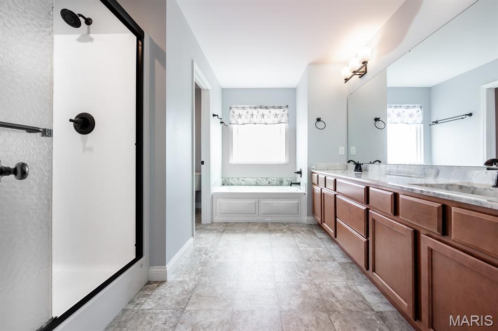 This amazing NEWER (2020) Home in Mascoutah School District offers almost 4,000 sq ft – 5 Bedrooms/5 Baths, plus a 3-car very OVERSIZED garage, Covered Patio and Fenced Yard! Plus, it has a primo Cul-De-Sac location in the desirable Wingate Subdivision that offers a Community Walking Trail, Neighborhood Playground and the Wingate (Mascoutah) Elementary School. The Interior of this home boasts an Open Floor Plan with a spacious High-End Kitchen including a Large Quartz Island, plenty of Countertop space, Upgraded Cabinetry, Double Oven, NEW gorgeous Tile Backsplash, large Built-In Gas Cooktop and a GIGANTIC Walk-In Pantry! Also, the main level also has a beautiful Stone (gas) Fireplace with Mantel in the Living Rm, Drop Zone, French Doors to the covered patio, and lovely LVP Flooring. You will also enjoy the New Carpet in the Living Room and both Stairwells. Upstairs you will find the Huge Primary Suite offering 2 sizable Closets, plus an On-Suite Bath including a double sink vanity, jetted tub and separate shower. You will also love the Bedroom #2 Junior Suite with a large bedroom and a private Full Bath. All 4 upstairs bedrooms include Walk-In Closets too! There is an additional Full Bath and Large Laundry Room upstairs, near the bedrooms. The Finished Basement offers NEW Luxury Vinyl Plank Flooring, a 5th Bedroom, 5th Bath, Rec Room, Family Room and plenty of storage. Extra Perks – the Washer, Steam Dryer, Basement Refrigerator, Water Softener and Shed will stay!