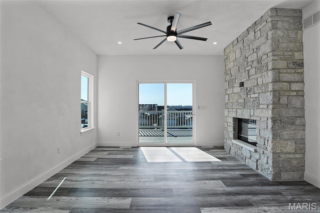 Welcome to this stunning new construction, maintenance-free condo, nestled in a gated community offering breathtaking views. Step into the spacious living room featuring a stone gas fireplace, which seamlessly flows into the dining area and chef-inspired kitchen with custom cabinetry, quartz countertops, and a tiled backsplash .The peaceful owner’s suite boasts an ensuite with dual sinks, a tiled walk-in shower, and a large walk-in closet. Upstairs you will also find a second bedroom and full bathroom. Downstairs, enjoy a flexible space, full bath, storage closet, and access to the 2-car garage. Located near Grafton Winery & Brewhaus, downtown Grafton’s shops, the marina, trails, and more. Close to Raging Rivers Water Park, Pere Marquette State Park, and the Grafton Ferry to historic St. Louis.