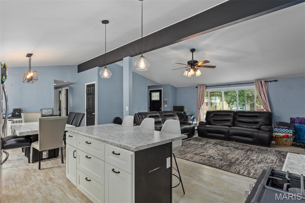 Beautifully renovated 3 bed / 1.5 bath ranch with modern updates throughout! Enjoy an open-concept layout connecting the spacious living room to the kitchen and dining area—perfect for entertaining. Living room has plenty of space and well lit for multiple layouts. The kitchen features a large center island with breakfast bar, sleek countertops, ample cabinetry, and stainless steel appliances. The dining area flows seamlessly from the kitchen and living room. Excellent place to entertain. A finished lower-level family room offers great extra living space, plus a private bedroom and half bath—ideal for guests or a home office. Step outside to a fully fenced backyard with a large deck, above ground pool, and storage shed—perfect for relaxing or hosting. All mechanicals have been recently updated. This move-in ready home blends comfort, style, and functionality—don’t miss it!