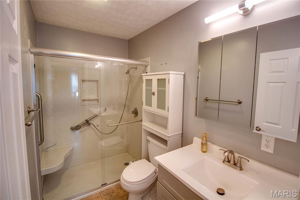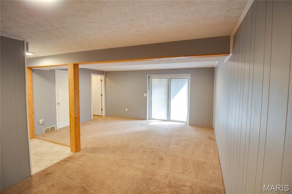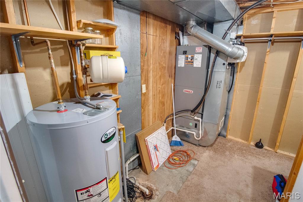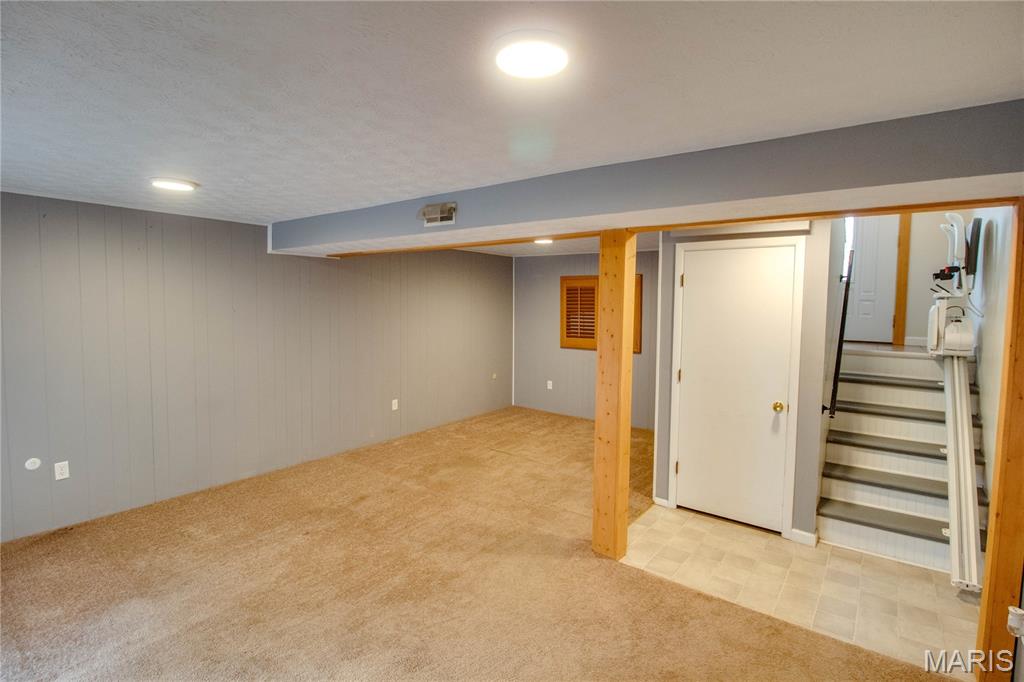 The lower level includes a spacious family room with a second set of sliding doors that walk out to a concrete patio. There’s also a half bath, two additional bedrooms (one with potential as a walk-through), and a dedicated laundry/utility area with extra space for storage.