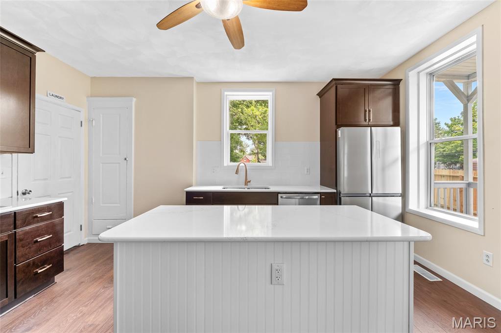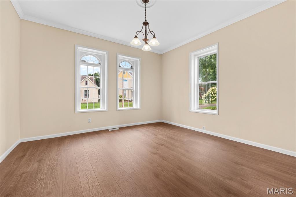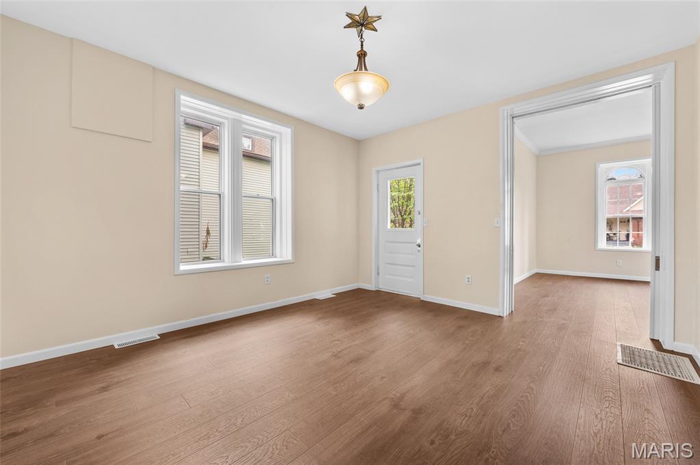 You got to see this 128 year old home!! Completely remodeled!! There are 4 bedrooms and 2 1/2 bath rooms, Just walk in the front door and be greeted by a spacious dining room with large windows , then turn to the family room with more big windows to let the light in. There is a 1/2 bath (1st of 3 bathrooms) in hall way to master. The master is on the main level and has its own bathroom with ceramic floors. Next walk to the back of this home to a beautiful fully remodeled from floor to ceiling kitchen (just like the rest of the house). New counters, cabinets, flooring, double oven, electric cooktop, refrigerator, dishwasher (all stainless steel) sink and garbage disposal. This kitchen is fantastic with its high ceilings too. Off the kitchen is the main floor laundry room with a window to look out back The back door to go outside is from the kitchen. Take the stair up to 3 more spacious bedrooms with a fully remodeled full bathroom with ceramic tile floors. The basement is full but unfinished. Out back is a great size yard and parking off the alley way. This is downtown living at its best. New electrical, plumbing, floors and more through out this home home. HVAC 2021, hot water heater 2014.