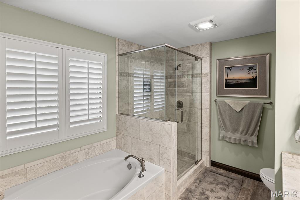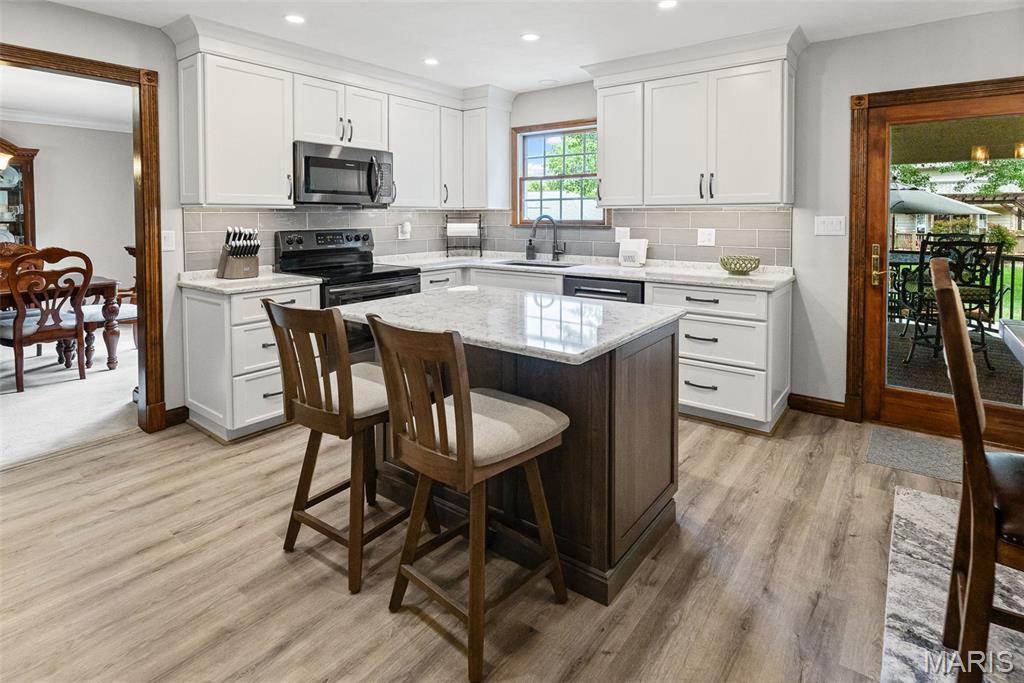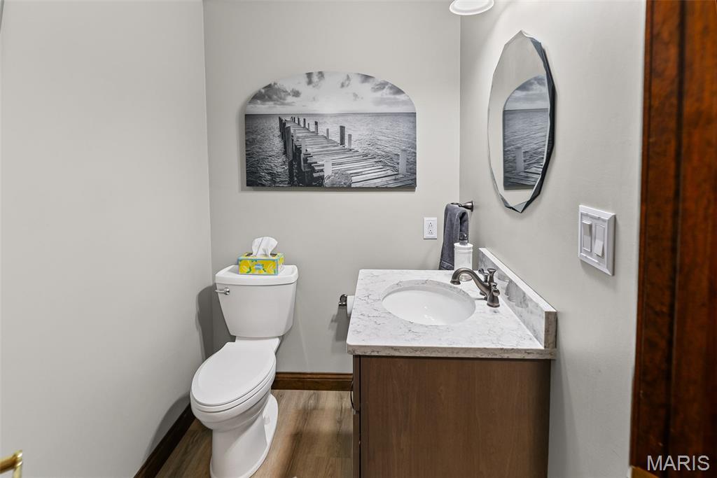 COMPLETELY UPDATED, 2 story, one owner home offers 4 beds/4 baths, incredible finished basement & stunning outdoor space! Charming, covered front porch leads into spacious foyer w soaring ceilings & beautiful stairway. Executive office is rich w built in book cases. Gorgeous, airy eat in kitchen features custom cabinetry, quartz counter tops, center island & stainless steel appliances. You will love the open, adjacent sunken family room that features gas fire place flanked by built in book cases. Exit to the massive veranda out back and be amazed by the gorgeous bead board ceiling, maintenance free deck and ambient lighting. Meticulously maintained lawn and landscape abound! Formal dining/living room combo w/crown molding completes main level. Upstairs offers an extra wide hallway with hardwood flooring. Spacious primary suite offers a luxurious bath with soaking tub, separate shower, dual bowl vanity with custom cabinetry & granite counter top. 2 additional bedrooms, bonus room (could be 4th bedroom) and remodeled full bath with dual granite sink complete the upper level. Lower level surprises with an enormous recreational space and 10 ft ceilings! Entertain guests around the large custom wet bar with back bar and ample storage. Additional room makes a perfect home gym or crafting room. Updated half bath and large unfinished with tons of storage and work bench complete this level. Incredible craftsmanship thoughout, ask for list of improvements today!