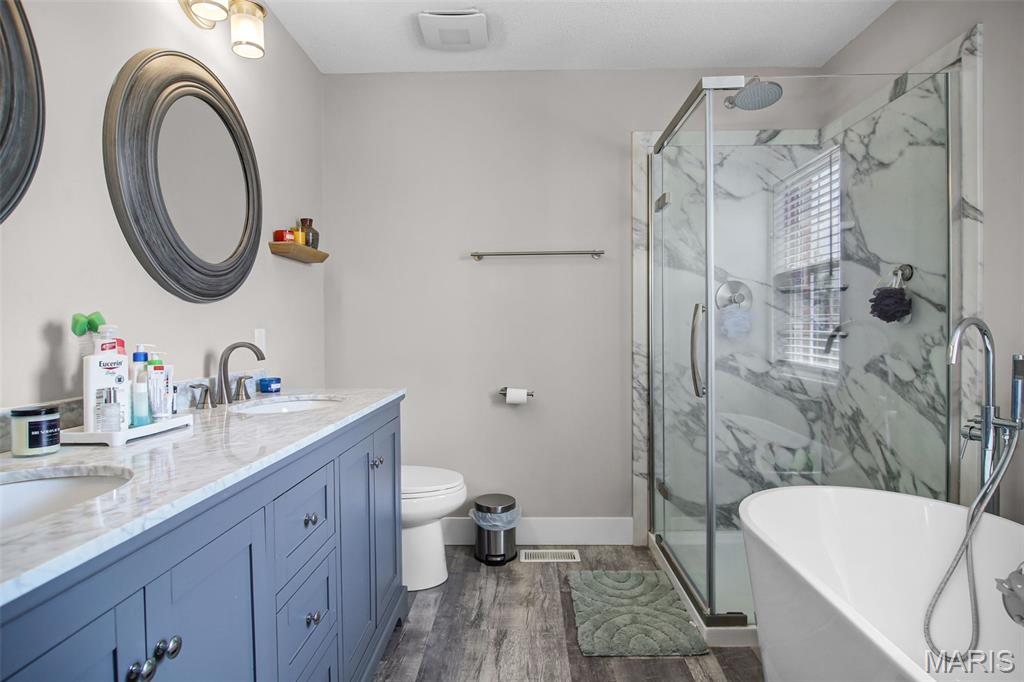 BEAUTIFULLY UPDATED home w/a private backyard & inground pool! Upon entry to this gorgeous home you will immediately notice all of the amazing updates! The first floor features formal living & formal dining rooms, family room w/fireplace & accent wall w/custom built-in cabinets w/outlets & media storage. Stunning kitchen features quartz countertops w/”waterfall” feature, glass backsplash, stainless appliances & breakfast area. Laundry room w/extra cabinets & 1/2 bath complete the first floor (w/newer LVP flooring & 5″baseboards). Second floor features spacious master suite w/updated bath (quartz countertops/dual vanities, free standing tub, separate tile shower etc) & 2 closets. There are also three additional bedrooms and 2nd full bath. Lower level has 3rd full bath(w/jacuzzi), family room, wet bar w/cabinets & 5th “non-conforming” bedroom & extra storage space. Outside space is amazing w/lush landscaping & lighting, inground pool (3′-8’depth and 32×16), patio, playset & sandbox w/cover & plenty of additional backyard space. Enjoy your own personal and private oasis! Immense pride of ownership is reflected in this property – ask your favorite realtor for a complete list of upgrades/updates. Conveniently located to schools, shopping, etc in Willow Creek subdivision!