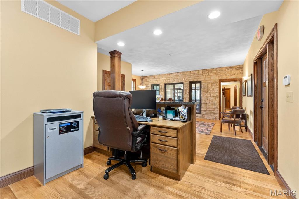 A thoughtfully designed addition expands the property’s versatility, featuring a beautifully finished lower level with a private entrance—perfect for a secondary office suite or separate business operation. The property includes 10 dedicated parking spaces, a detached garage, and spans three parcels, offering exceptional exterior space and future development possibilities.
