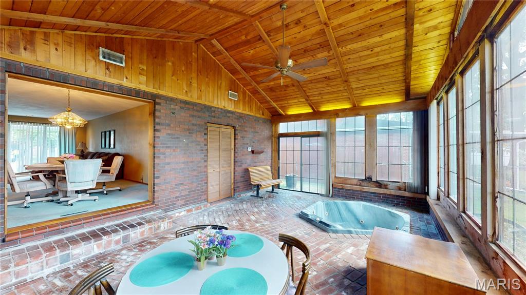 Welcome to 3229 Princeton Dr., a well-maintained 3-bedroom, 2-bath all-brick ranch. This home offers a stylish, comfortable layout with unique features. Step into the living area, then flow through the dining area into the huge sunroom, flooded with natural light and featuring a built-in hot tub—perfect for year-round relaxation, since it is heated and cooled. The kitchen is a decent size, with pantry. The main level has hardwood floors under the carpet! Downstairs, the finished basement adds major versatility with a swanky bar, second kitchen, and room to entertain or unwind. The home’s clean lines, warm finishes, and timeless brick exterior give it lasting appeal to that right buyer. Located in a quiet, established neighborhood in Granite City. Security alarm is included in sale! Schedule your private tour today!