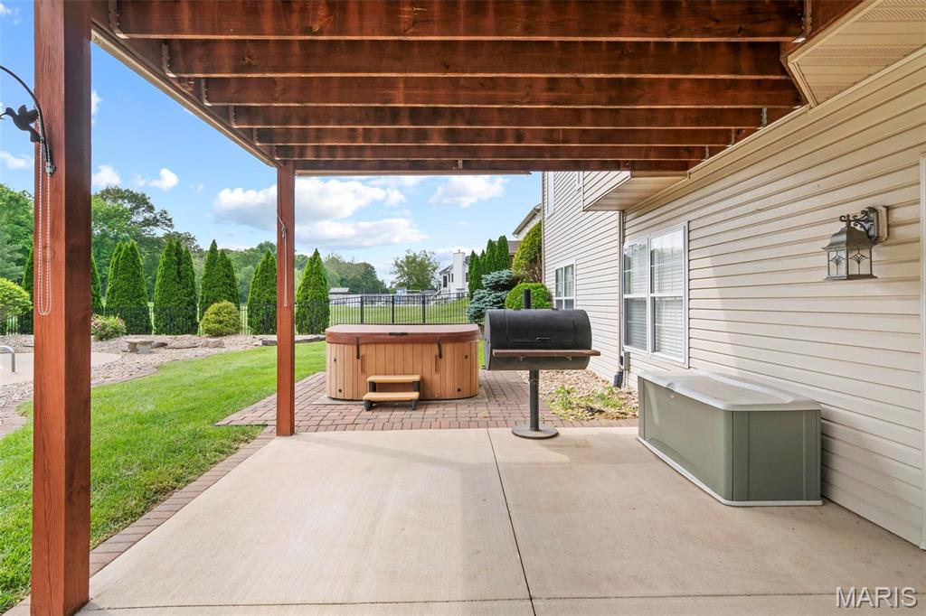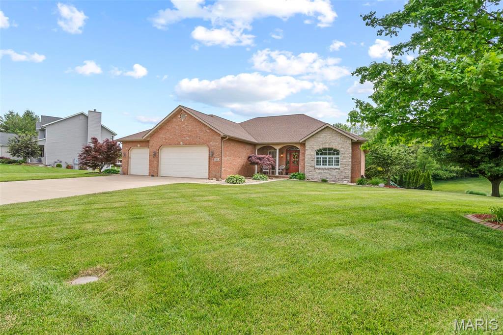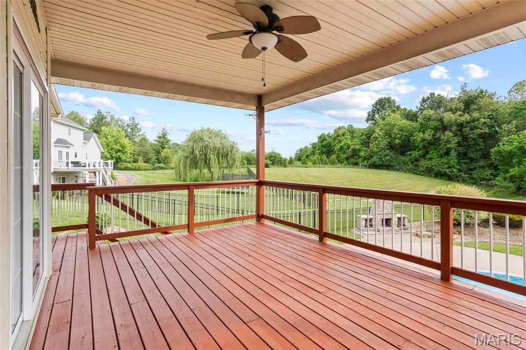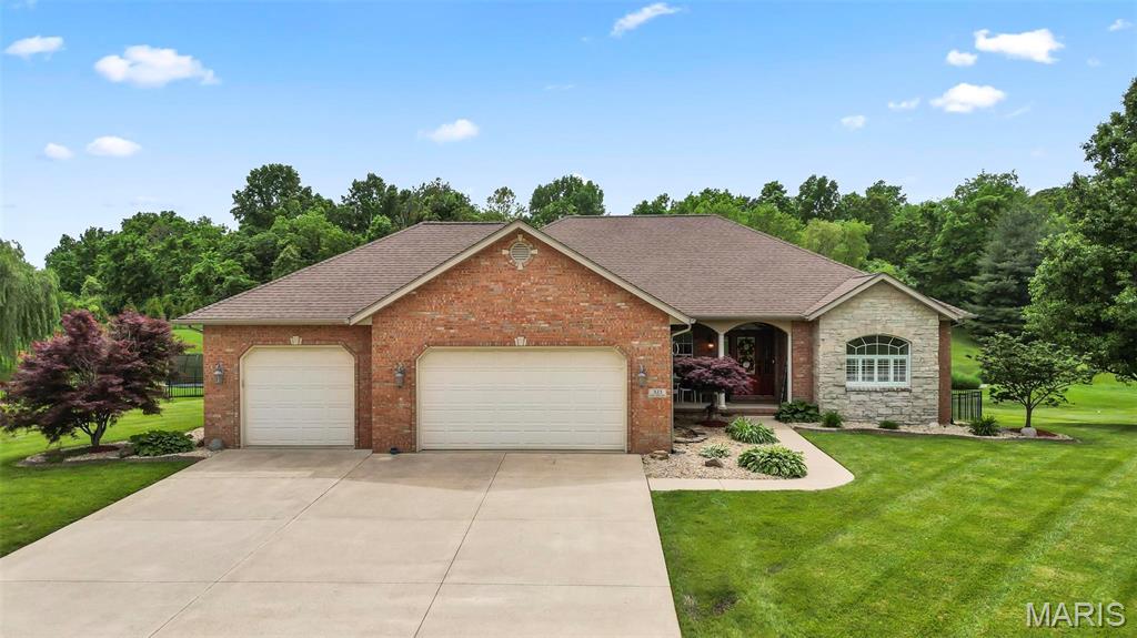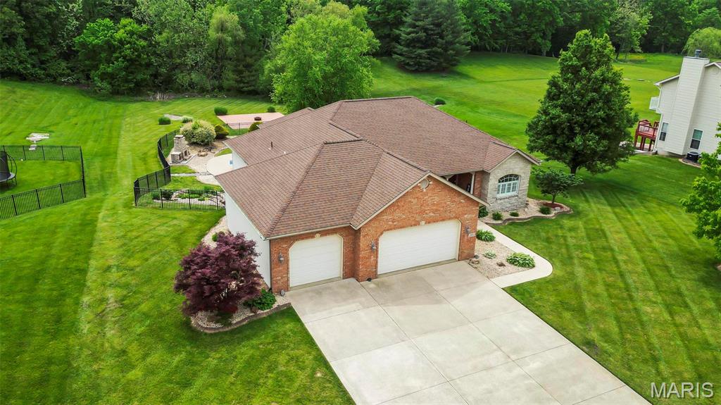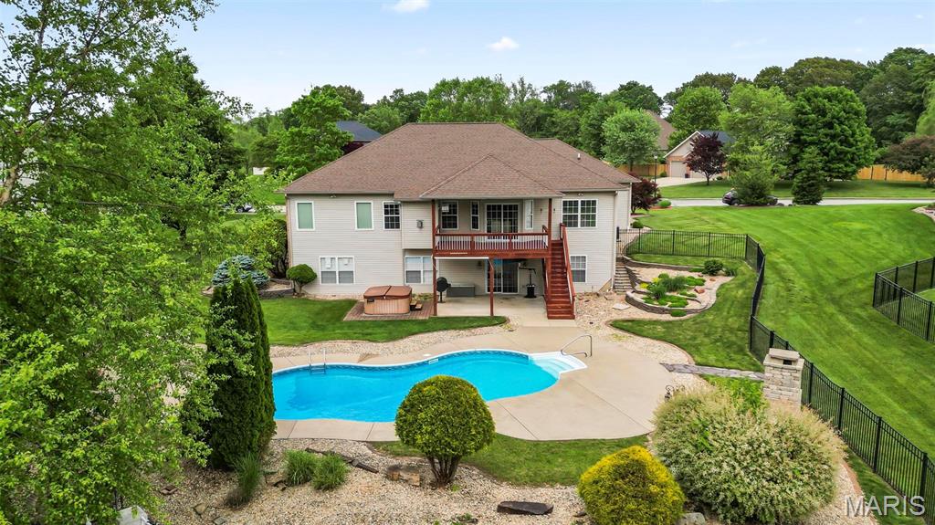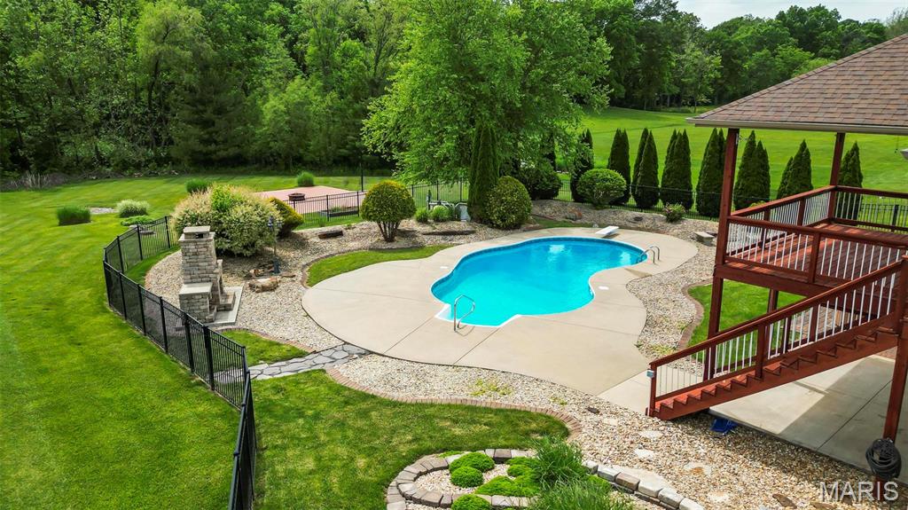 Back on market at NO fault of Seller (due to buyer financing). Cool off with this beautiful, custom-built home. wooded lot, and in-ground, salt-water pool! An executive home, built for family & entertaining, with a stunning entrance, new flooring & a charming office & custom book shelves, leads into a gorgeous living room w/vaulted ceilings. A Gourmet chef’s kitchen with granite counters, new s/s appliances & custom cabinetry, plus dining area, showcases beautiful wooded views year-round, inside and out. The master bedroom features more incredible views, a walk-in closet, and bath with spa features. Two more large bedrooms, a full-sized updated bath, laundry room w/new washer & dryer, a guest bath, and plenty of closets complete the main level. The outside is built to be used all year–with over-sized, heated pool, stone fireplace & sitting area, basketball court, fire pit, large covered patio, hot tub & grill area. The lower level patio leads to a 44′ x 32′ recreation area, custom bar area, large 4th bedroom & walk-in closet, updated full bath, and even more storage! With newer windows throughout, custom Bruce hardwood flooring, new appliances and lighting, an oversized 3 car garage, lots of upgrades, on 2+ wooded, private acres in the O’Fallon school district, and minutes to downtown, you’ll see why this home is both beautiful and unique. Home has been appraised and listed well below appraised value.
