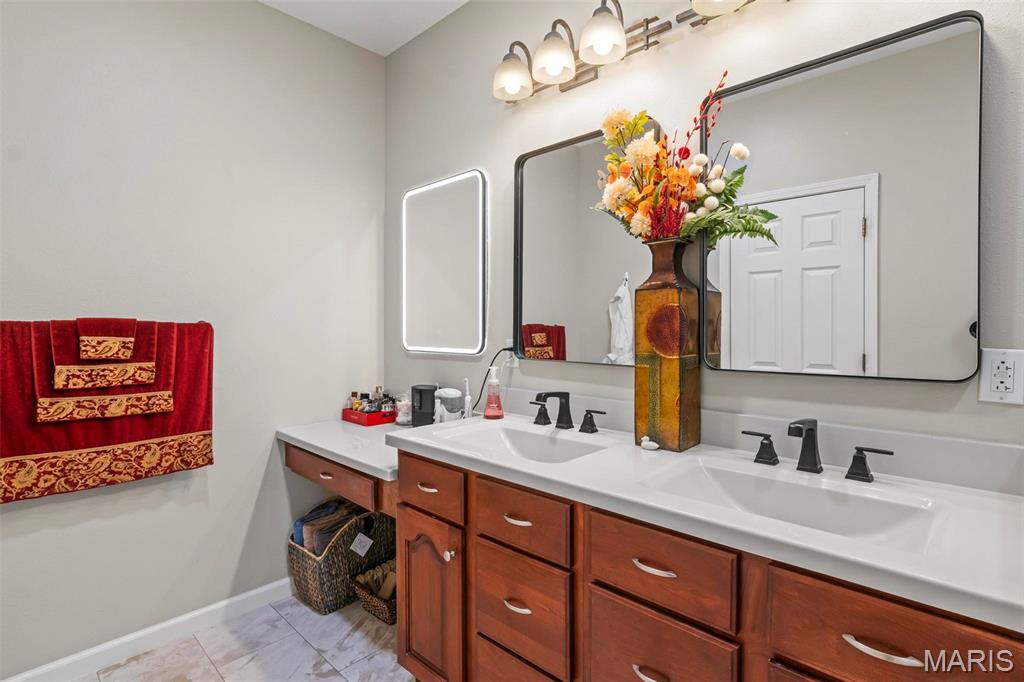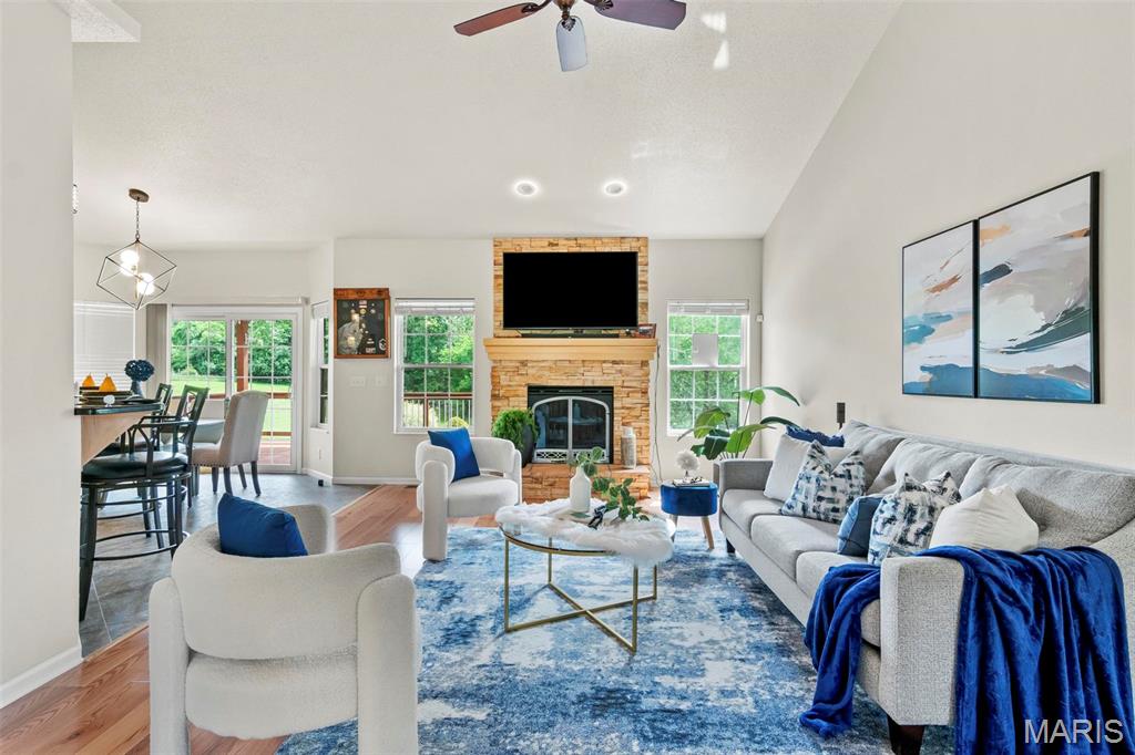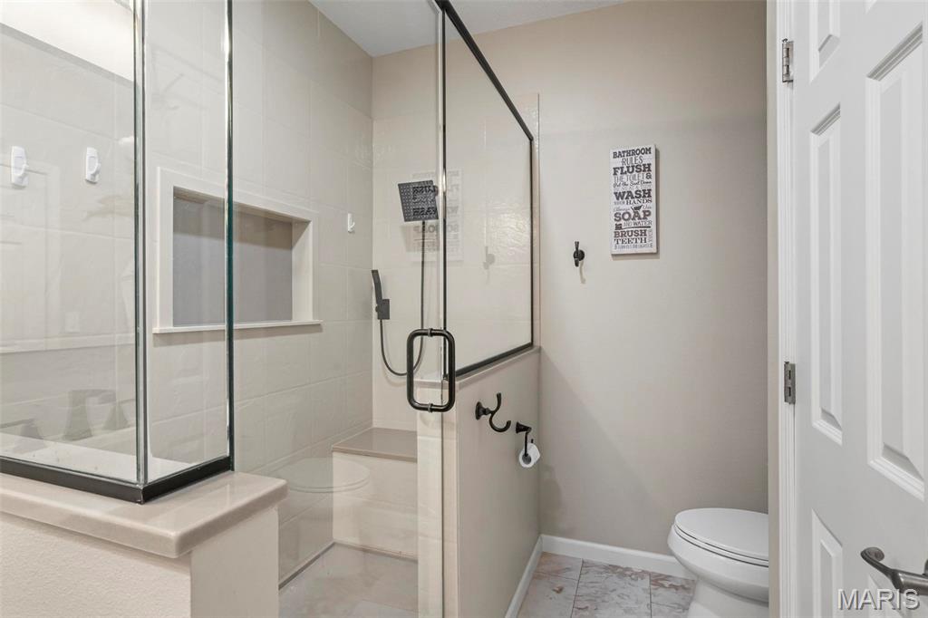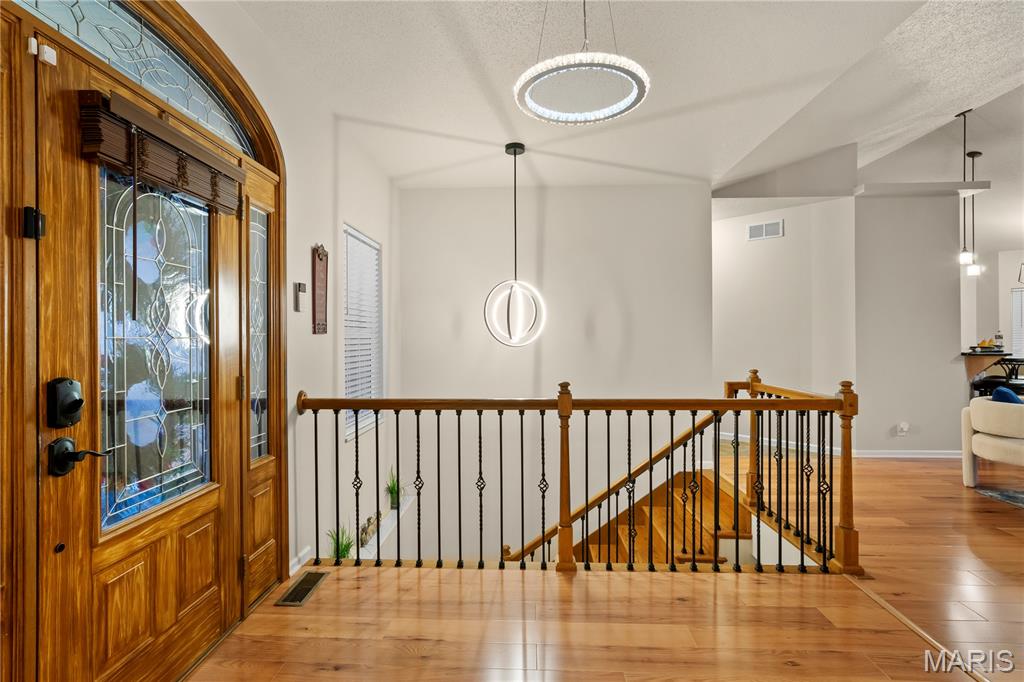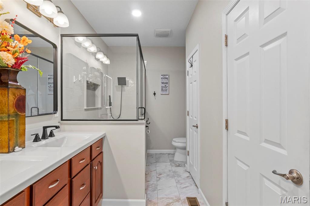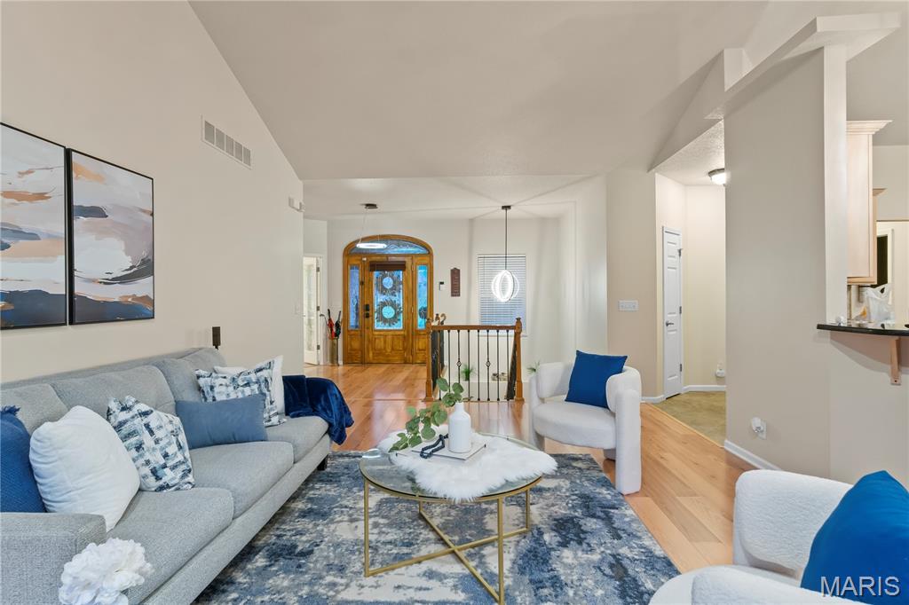 Back on market at NO fault of Seller (due to buyer financing). Cool off with this beautiful, custom-built home. wooded lot, and in-ground, salt-water pool! An executive home, built for family & entertaining, with a stunning entrance, new flooring & a charming office & custom book shelves, leads into a gorgeous living room w/vaulted ceilings. A Gourmet chef’s kitchen with granite counters, new s/s appliances & custom cabinetry, plus dining area, showcases beautiful wooded views year-round, inside and out. The master bedroom features more incredible views, a walk-in closet, and bath with spa features. Two more large bedrooms, a full-sized updated bath, laundry room w/new washer & dryer, a guest bath, and plenty of closets complete the main level. The outside is built to be used all year–with over-sized, heated pool, stone fireplace & sitting area, basketball court, fire pit, large covered patio, hot tub & grill area. The lower level patio leads to a 44′ x 32′ recreation area, custom bar area, large 4th bedroom & walk-in closet, updated full bath, and even more storage! With newer windows throughout, custom Bruce hardwood flooring, new appliances and lighting, an oversized 3 car garage, lots of upgrades, on 2+ wooded, private acres in the O’Fallon school district, and minutes to downtown, you’ll see why this home is both beautiful and unique. Home has been appraised and listed well below appraised value.