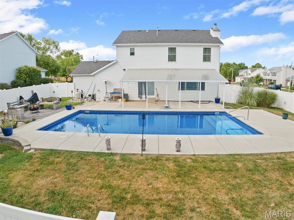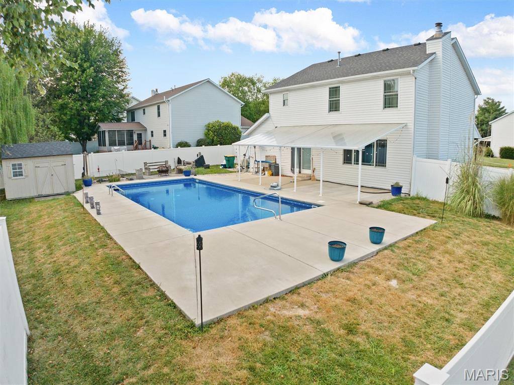 Welcome to your dream home in the heart of O’Fallon! This beautifully updated 4-bedroom, 3.5-bath home sits on a spacious corner lot with refreshed curb appeal, countless upgrades & located just minutes from schools, parks, hospitals, Scott Air Force Base, and highway access. Enter into to a bright, two-story foyer featuring a stunning bay window that fills the space with natural light. The main floor offers a formal dining room, a versatile office/playroom, half bath, cozy living room w/ gas FP, large eat-in kitchen & mud/laundry room for added convenience. Upstairs finds two generously sized bedrooms w/ walk-in closets & a refreshed full hall bathroom. The expansive primary suite boasts a walk-in closet & spa-like ensuite w/ double vanities, soaking tub, separate shower. The finished basement includes a spacious family room, 3rd full bath, 4th bedroom & plenty of storage. Enjoy the outdoors in your private backyard oasis, complete with a new 18×36 heated saltwater pool, expanded decking, a covered patio, and a charming garden sitting area—all surrounded by a privacy fence. Upgrades newer roof, windows, flooring, paint, appliances & garage door – just to name a few! This one is a must see!
