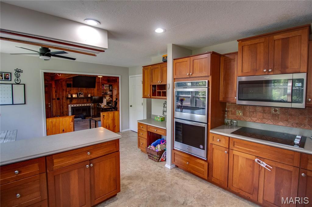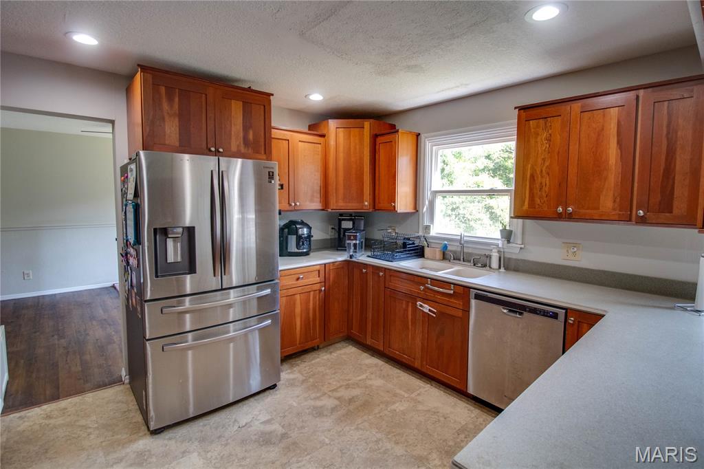 Check out this gorgeous home in Whispering Oaks Subdivision! Newer carpeting, luxury vinyl planking, and vinyl flooring throughout. The kitchen features cherry cabinets with stainless steel appliances including a double oven and glass cooktop. Enjoy the view of the backyard from the breakfast nook, or sit on your front patio beneath the shade of the mature trees. The large back deck has plenty of room for furniture and activities. Inside, you can enjoy your time in the large living room or the spacious family room with vaulted ceilings and fireplace. The garage and basement offer ample storage space. Showings start Saturday, July 12th! Buyer and/or buyer agent to verify all MLS data.