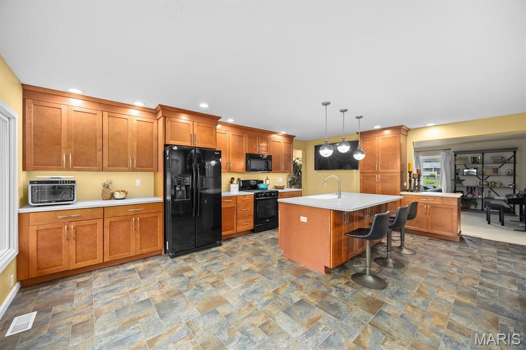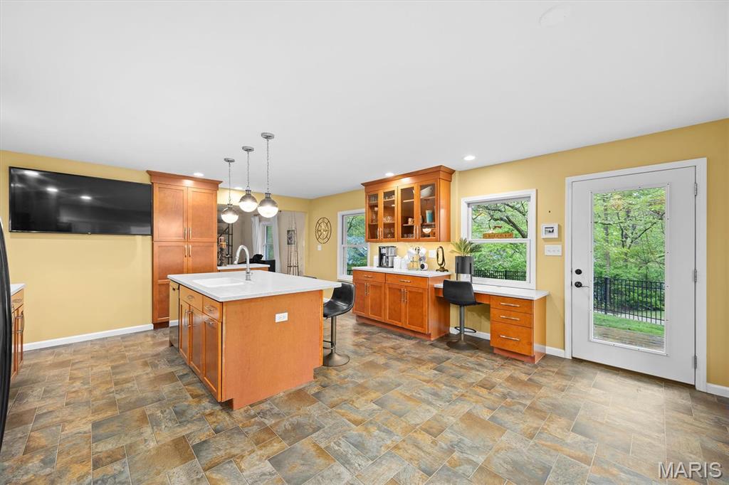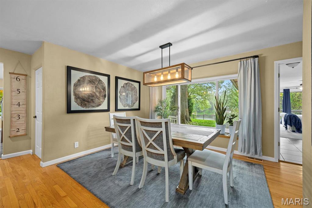 PRICED TO SELL!!! Enjoy LAKE LIVING in this gorgeous ranch set back on a private double lot on beautiful Dunlap Lake in Edwardsville! Your own private backyard dock is included to enjoy sunsets & fun on the lake day one! This tree lined one acre property offers gorgeous views from kitchen, DR & primary suite! Fenced level yard overlooks the lake & offers space for that pool you’ve been wanting. Cabinets galore, kitchen island w/seating, corian counters & window walls in breakfast area highlight this big open light filled kitchen. Oversized LR & formal DR are steps away. Primary suite w/two window walls, custom closet built-ins & private door to yard are sure to please. Finished LL offers FR, 4th BR area w/room to finish more. Don’t miss this opportunity to live on the water & enjoy kayaking, paddle boarding, swimming & fishing in your own backyard!