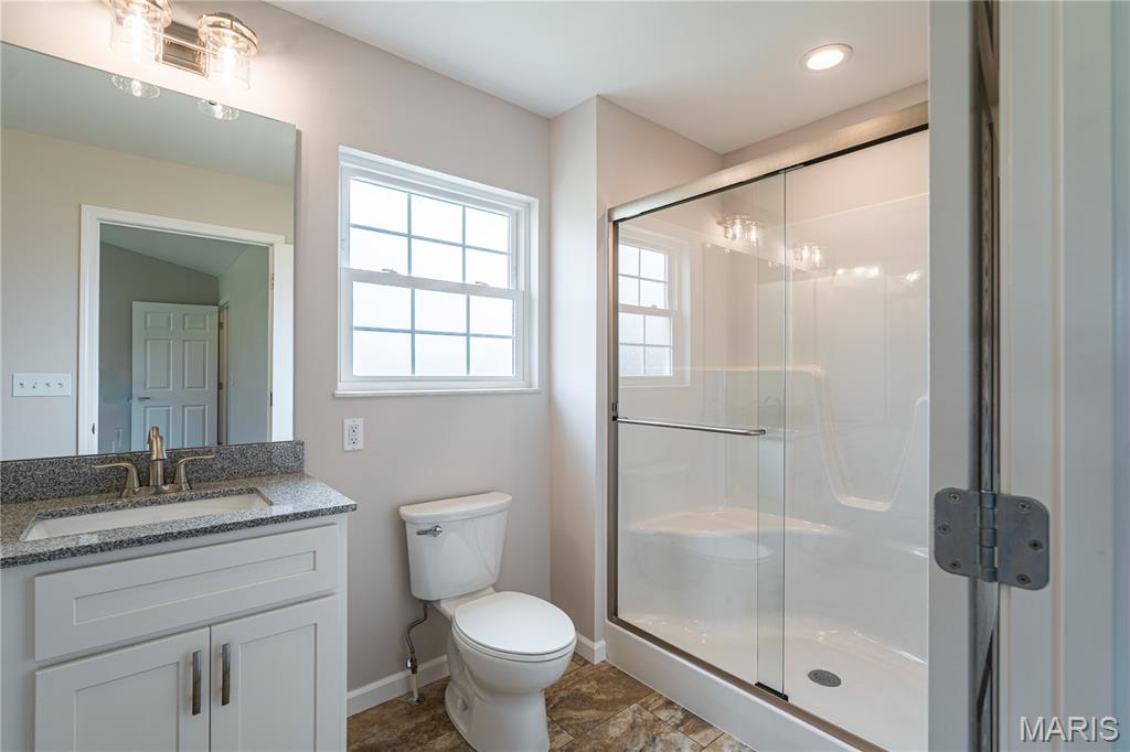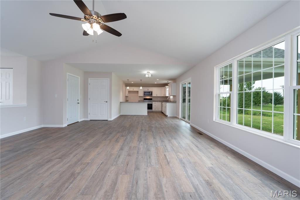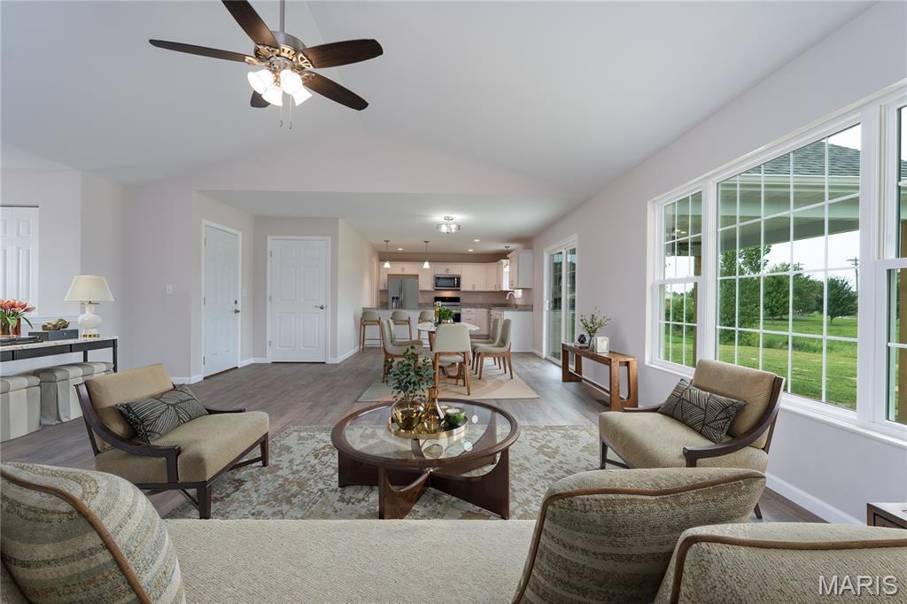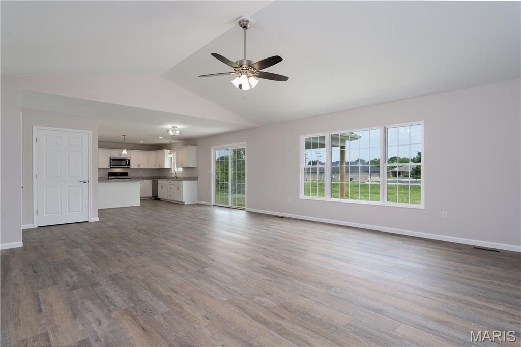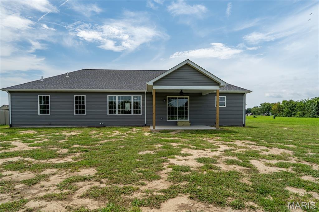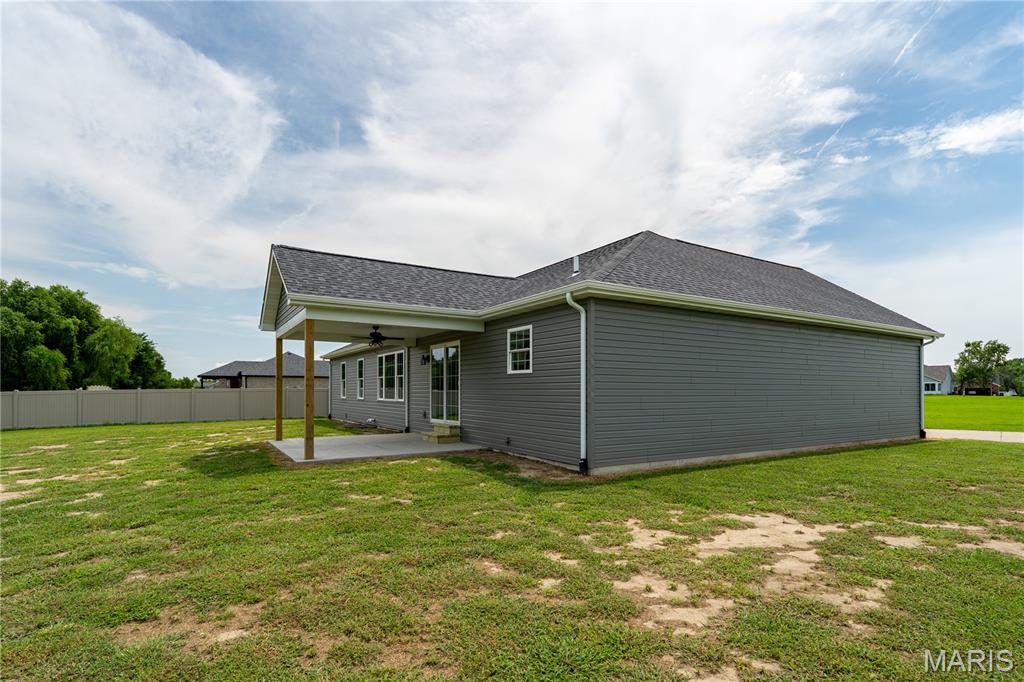 Welcome Beautiful Cardinal Crossing subdivision. Homes can be custom built for owners, to fit there needs. This 3 bed /2 Full Bath home offers a owner a degree of ownership that you will appreciate. Entering the home you will be greeted with 9 ft picture window, sunlight abounds w/open concept living room. Kitchen is a staple to this home offering some slide a shelf extensions with white shaker cabinets. The Open concept combo kitchen /dining room is spacious & shows of the 6 ft island / w -granite counter tops & beautiful sliding patio door. Extending the kitchen with a 13×15 Covered back patio. Home has WiFi convection 5 burner gas stove and dishwasher and microwave. The master bedroom and main bathroom has sound deadening material added to the walls for privacy. Builder has also added R49 insulation and added in garage R 19. The primary suite features a spacious bedrooms w/ walk-in closets & full bathroom with a luxury shower for sitting while showering. Bedroom 2 & 3 are spacious and have quality flooring and closets . Full unfinished basement with two egress windows. ready for the 4th bedroom and living room. Home has been roughed in for full bath in basement.