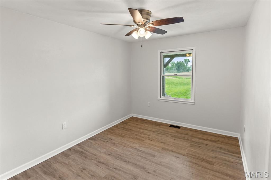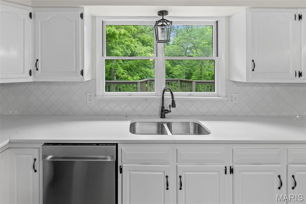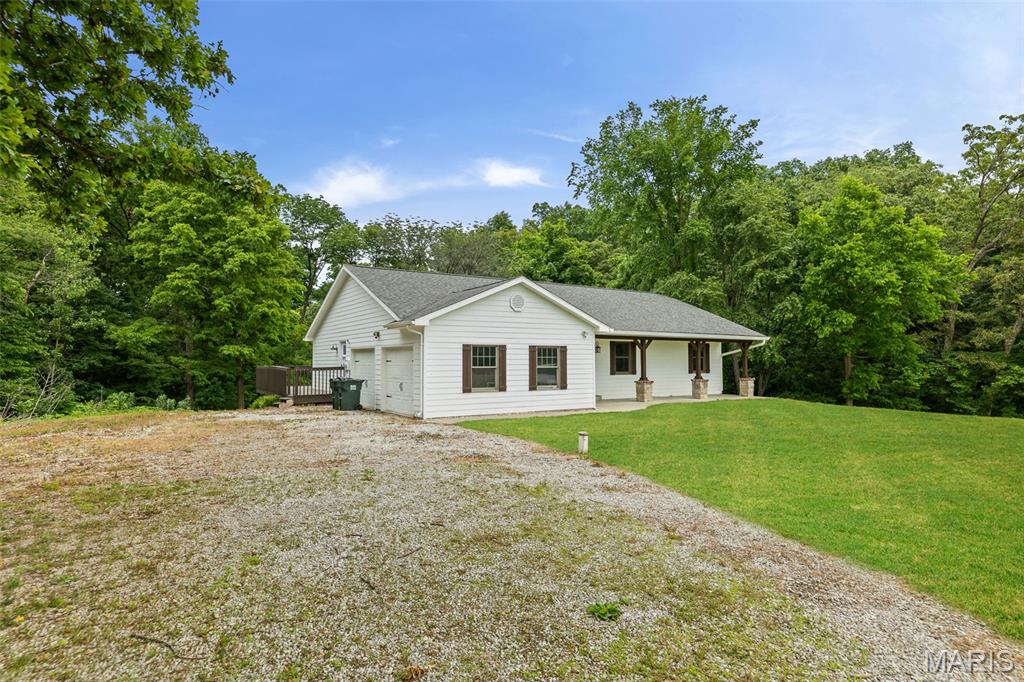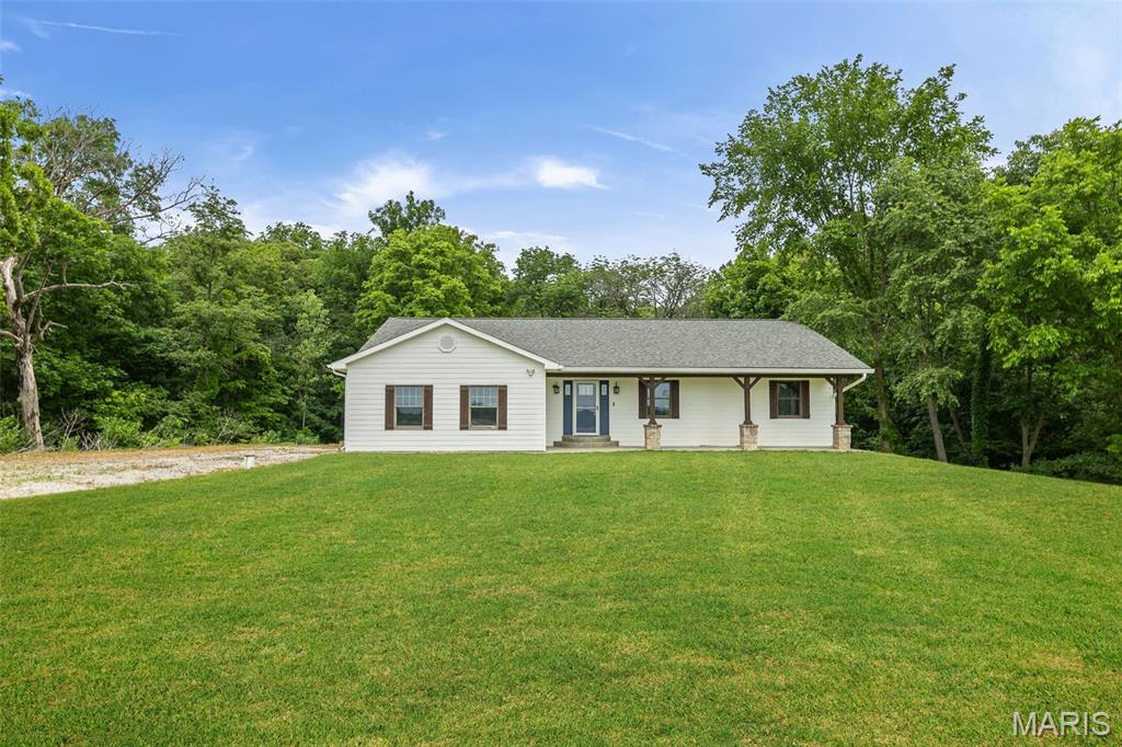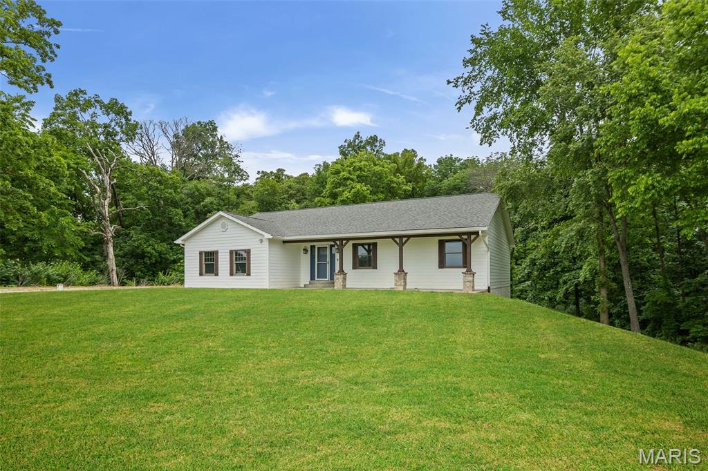 New price!! Acreage opportunity!! 7.73 acres are wooded with a creek that runs through the property. Very private & peaceful! Covered front porch & large deck in back overlooks wooded views. Open floor plan. Foyer entry, spacious living room is open to kitchen. Quartz countertops, kitchen island & new dishwasher. All appliances included. Freshly painted interior. Wood laminate throughout most of the main level. Primary bedroom includes 2 walk in closets (one includes hookups for 2nd laundry area if desired). Primary bath features new tile tub surround, dual sink vanity. 2nd & 3rd bedrooms share a full bath. Plus there is an additional half bath on main level. Walk-Out Basement is partially finished, flooring & ceiling finishes will make it complete; includes 4th bedroom, bonus room, family room with wet bar, wood burning fireplace & 3/4 bath. Plenty of storage space too. Side load 2-car garage. Roof & James Hardie siding 2016 approx. New HVAC system installed 2021. Located in Millstadt grade school & Freeburg High School. Will pass occupancy inspection through St. Clair County. Buyer to verify all info.