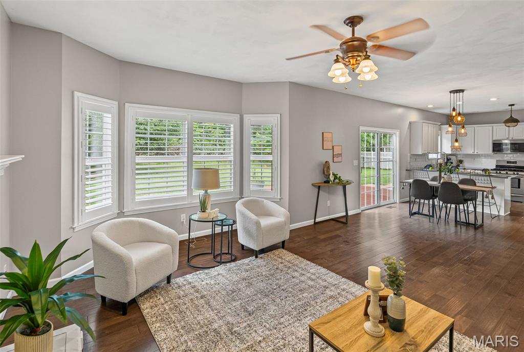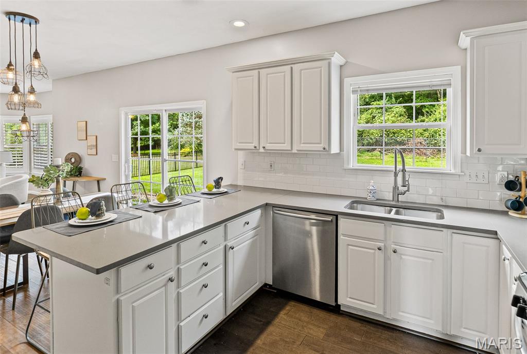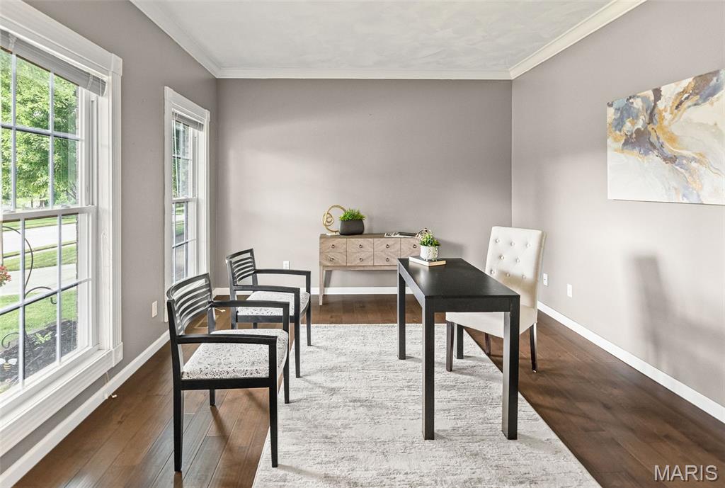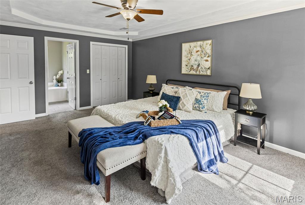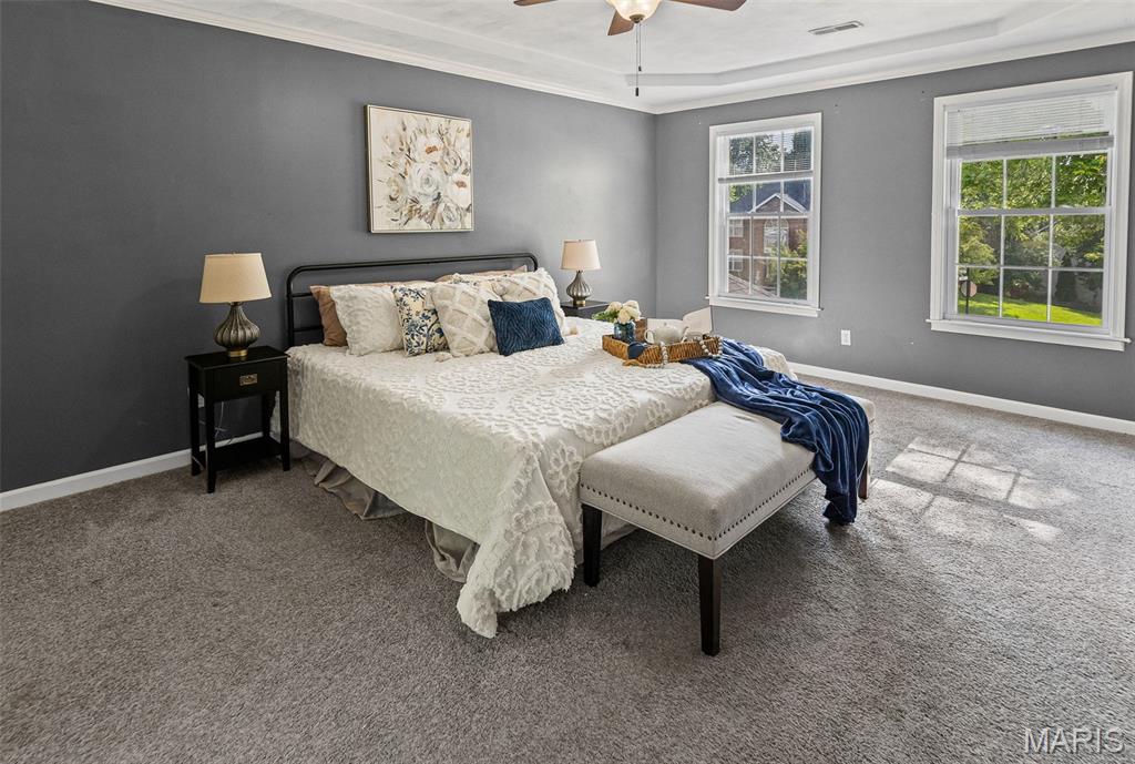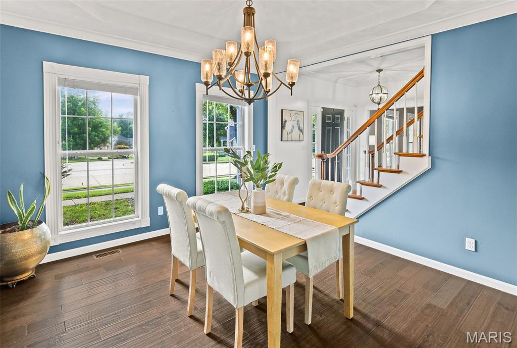Come see this stunning 5-bedroom, 4-bath, 2-story home ideally placed in a coveted Edwardsville neighborhood—The Homes of Center Grove—and just minutes from parks and schools. This well-maintained turnkey property offers a perfect blend of space, function & location. Step inside the gracious foyer, flanked by a formal dining room & office/den. The integrated living room & kitchen create a seamless flow for entertaining and feature quartz countertops and abundant storage. A full bath & laundry complete the main level. Upstairs you will find 4 generous bedrooms, including a luxurious primary suite with tray ceilings, spacious walk-in closet, and en suite bath with jetted soaker tub & shower. An additional full bath serves the 3 accompanying bedrooms. The finished lower level expands your living space with a family room, 5th bedroom with egress, yet another full bath & extra bonus room—ideal for any purpose. Outside you will enjoy the screened-in sunroom and fully-fenced backyard—perfect for relaxing or entertaining—and the deck that looks out into the natural beauty of the park next door. The concrete driveway and oversized 2-car garage add practicality to this exceptional property. New HVAC (2019); new water heater (2022); and new roof (2024)—not to mention transferable basement waterproof warranty and home systems service package—offer peace of mind. Do not miss your chance to own this beautiful move-in ready home in the heart of Edwardsville!
