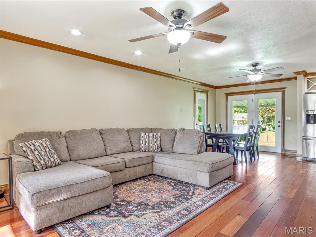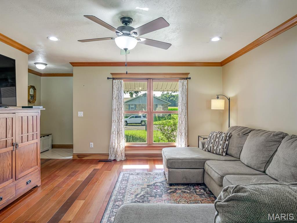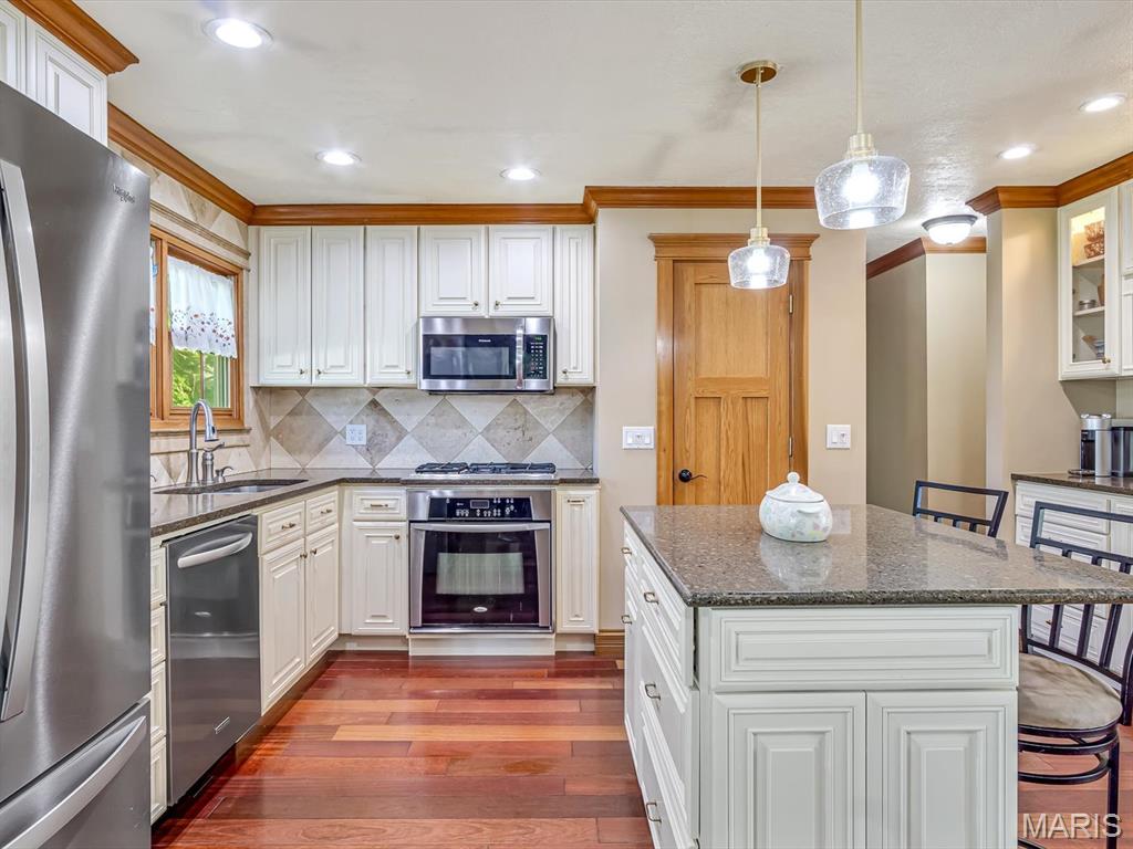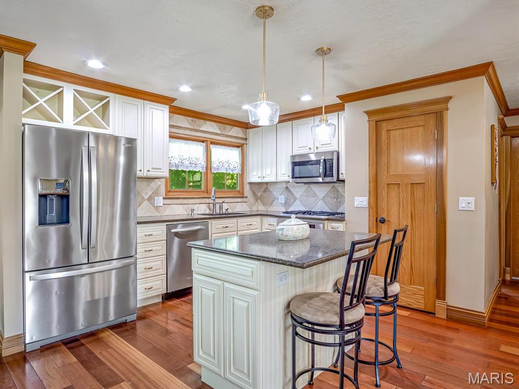 Welcome to this beautifully maintained 3-bedroom, 3-bathroom brick home situated in the heart of Smithton! From the moment you arrive, you’ll notice the inviting curb appeal, oversized driveway and manicured landscaping that set the tone for what’s inside. Step into the updated kitchen, complete with custom cabinetry, granite countertops, stainless steel appliances and a center island with pendant lighting—perfect for casual dining or entertaining. The open floor plan seamlessly connects the kitchen, dining and living areas, all highlighted by rich wood flooring, recessed lighting and large windows that fill the space with natural light. All three bedrooms are generously sized, and the home offers three full bathrooms, including one located in the unfinished basement—providing a perfect opportunity to expand your living space or create a custom lower level to fit your needs. Whether you’re looking for single-level living, room to grow or a great location close to everything Smithton has to offer, this home is a must-see! New roof prior to closing!
