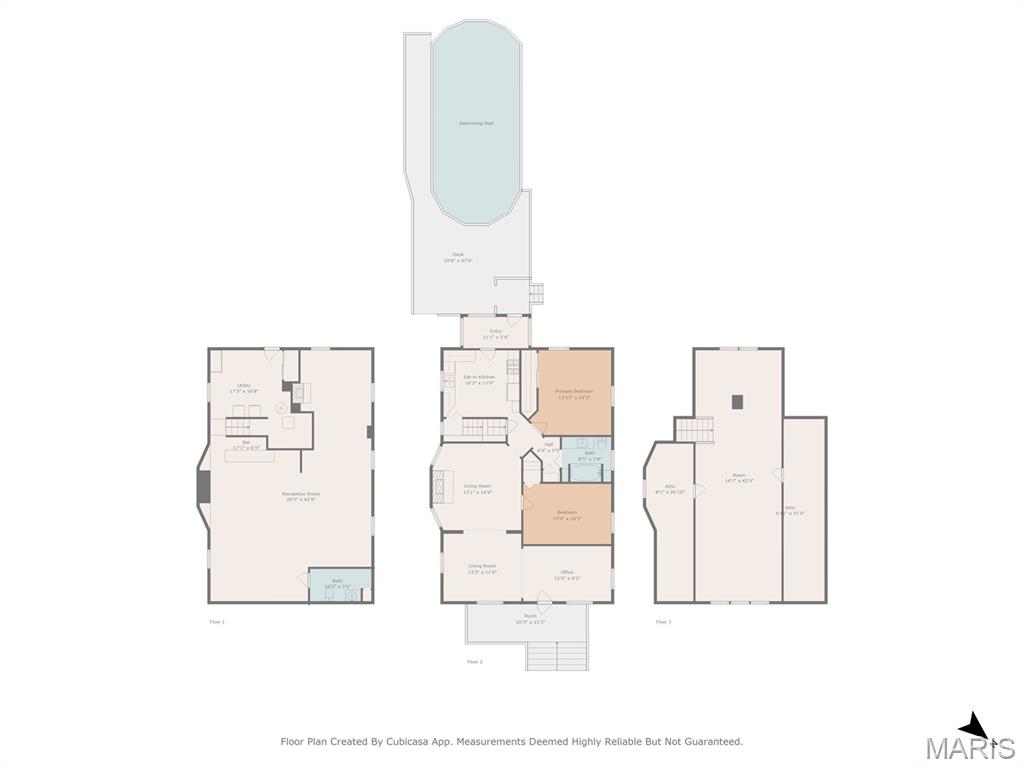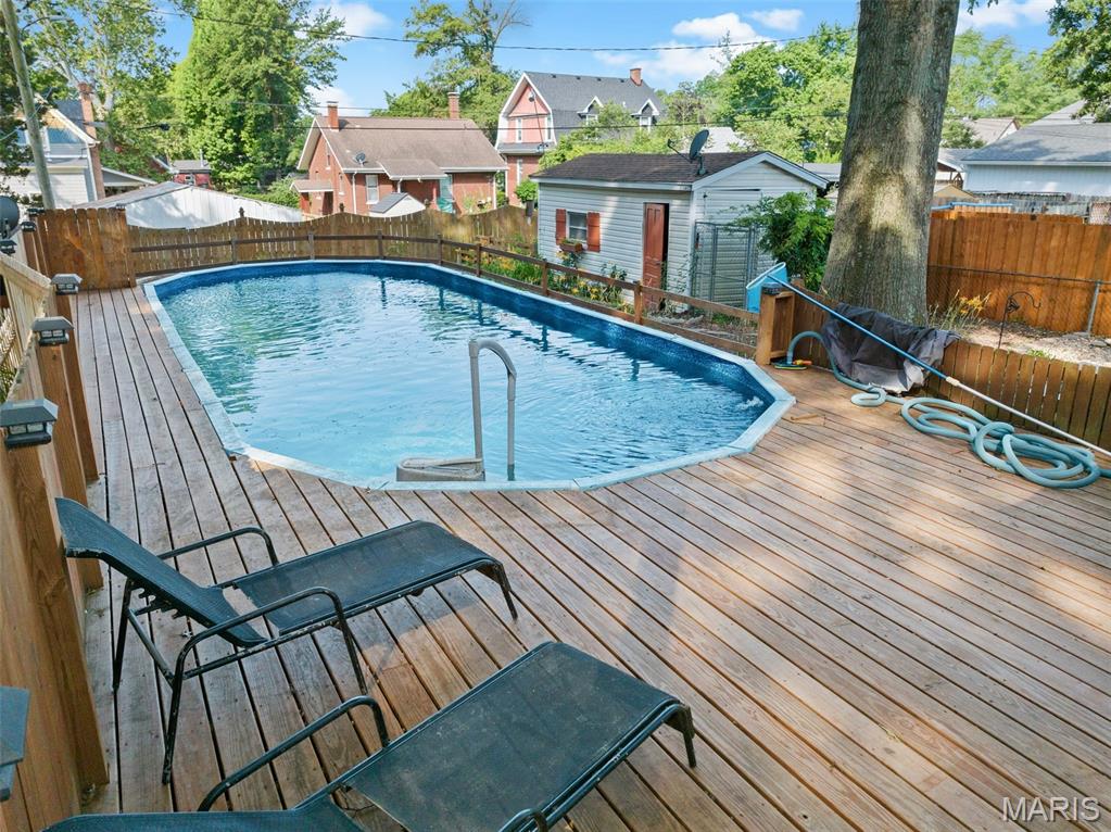 ****NEW PRICE ****You must see the inside to appreciate the amount of square footage this home offers. Discover over 3,100 square feet of updated interior that includes 2 main floor bedrooms, living room, family room with fireplace, office, eat in kitchen, bath, and sunroom. Upper level with 42 x 14 area finished for third bedroom, 2 oversized storage areas. Lower level has game room area, rec room area, separate lower living room, bath and laundry. The sunroom overlooks the deck surrounded pool in the private rear yard with separate storage/workshop building. Private low maintenance rear yard.