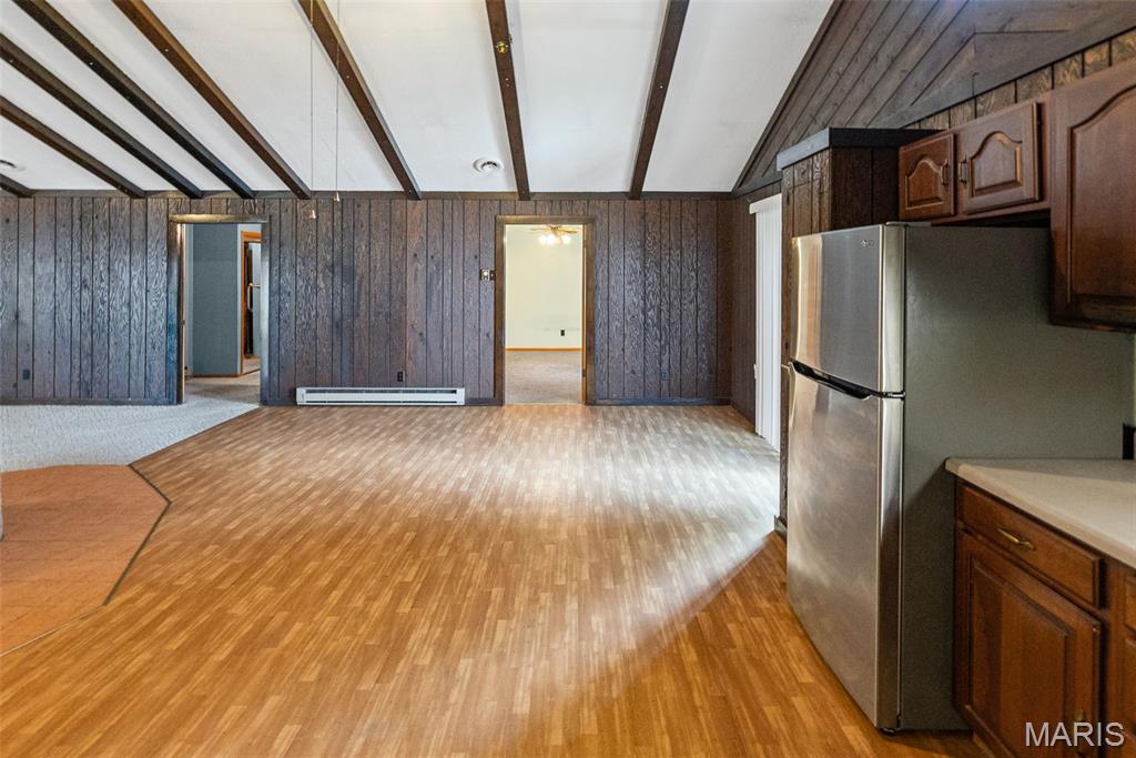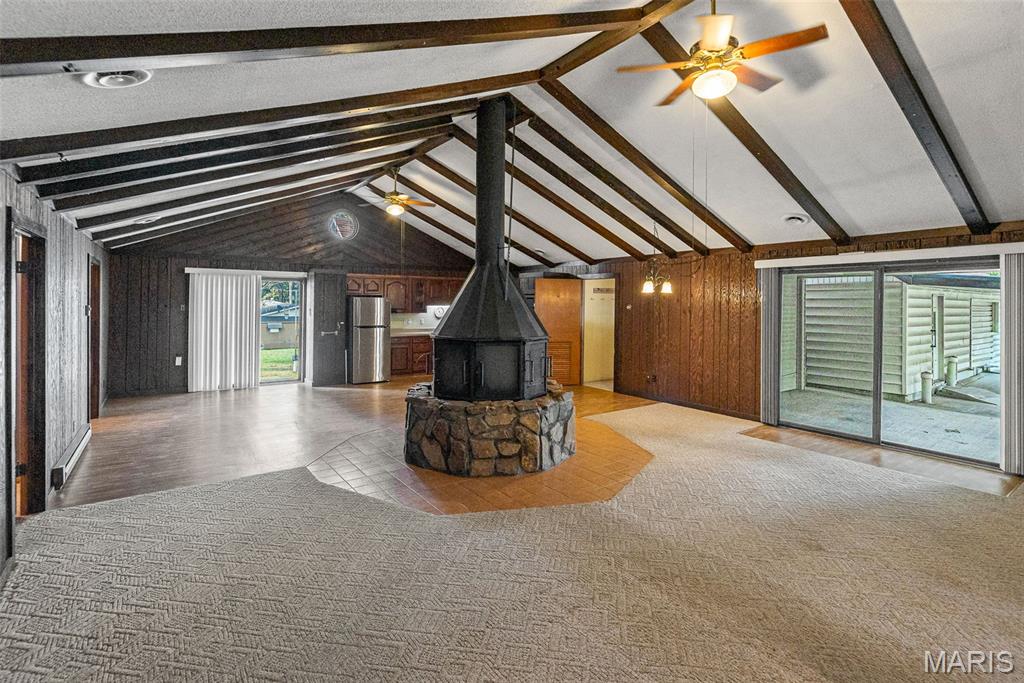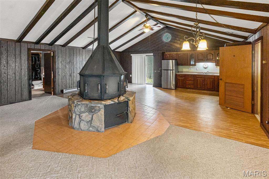 2 bed, 2 bath home with a custom built central fireplace, beamed cathedral ceilings and open concept design. Well-built and well-maintained, this unique property features a sun-filled spa area with incredible natural light, 3 heating systems, and a 3-year-old roof. Convenient laundry and mudroom offer practicality and a place to stow shoes, coats, backpacks and more. 2 car garage with space for hobbies or workshop and a carport for additional parking. A rare find offering comfort, quality, and space for work, play, and relaxation. Don’t miss this opportunity!