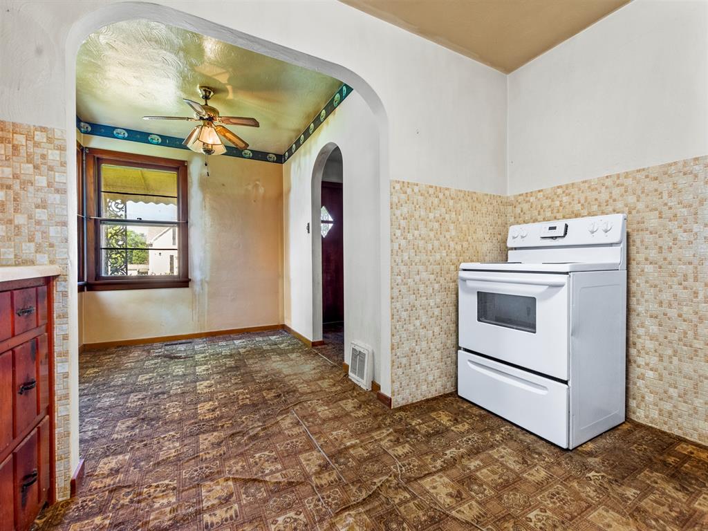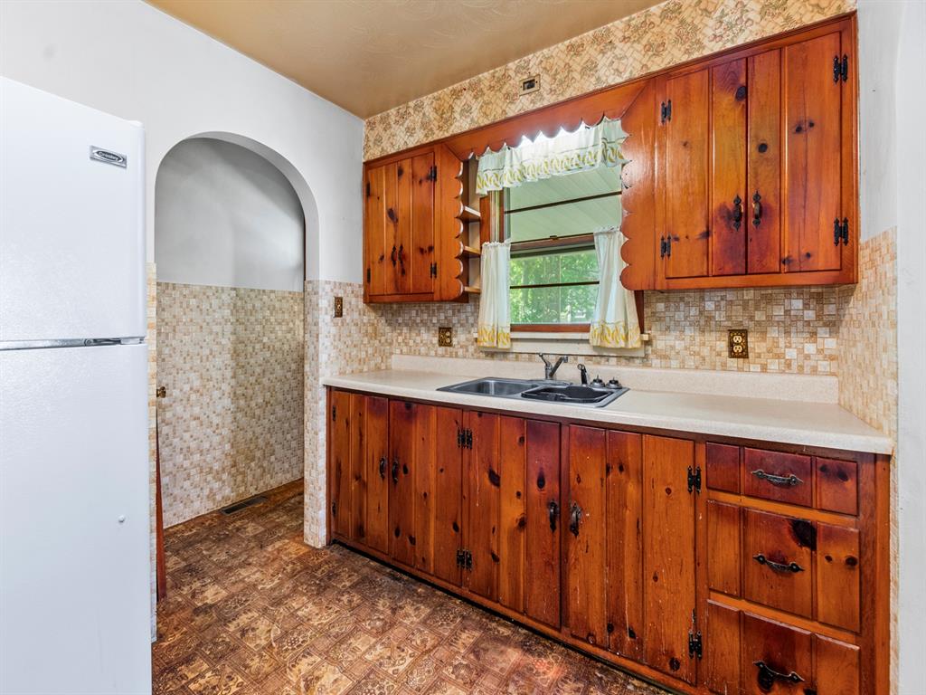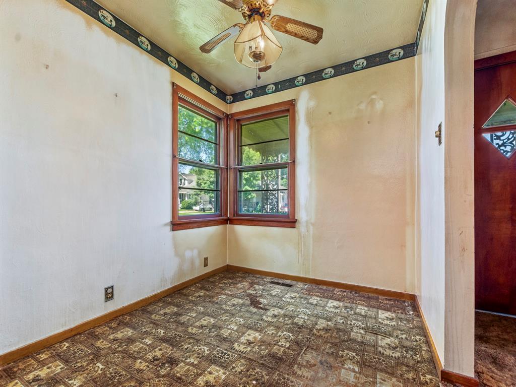 Charming Bungalow with Endless Potential! Opportunities like this don’t come around often. Bring your vision to this inviting 2BR, 1BA bungalow brimming w/ character & promise. From the moment you step inside, you’ll appreciate the home’s unique architectural details—arched doorways gracefully connect the kitchen, dining room, & spacious living area, while coved ceilings & a large front window fill the space w/ natural light & timeless charm. The separate dining room offers the perfect setting for entertaining & both bedrooms are generously sized w/ ample closet space. The vintage bathroom features mid-century tile on the floors & walls, plus a dual-door linen closet for added storage. Additional closets in the entry & hallway provide even more functionality. Upstairs, imagine creating a cozy office nook or hobby space—an ideal way to expand your living area. The lower-level laundry room includes built-in cabinetry, offering even more storage options. Outside, a large yard shaded by a mature tree offers room to roam, play, or garden & there’s potential for a future garage (buyer to verify with the village). Unwind on the spacious side porch & enjoy the welcoming neighborhood vibe as you wave to passersby. With solid bones and architectural charm, this home is ready for your personal touch. Don’t miss your chance to revitalize this classic bungalow. (Sold as-is. Inspections for buyers information only. Seller to do no repairs.)