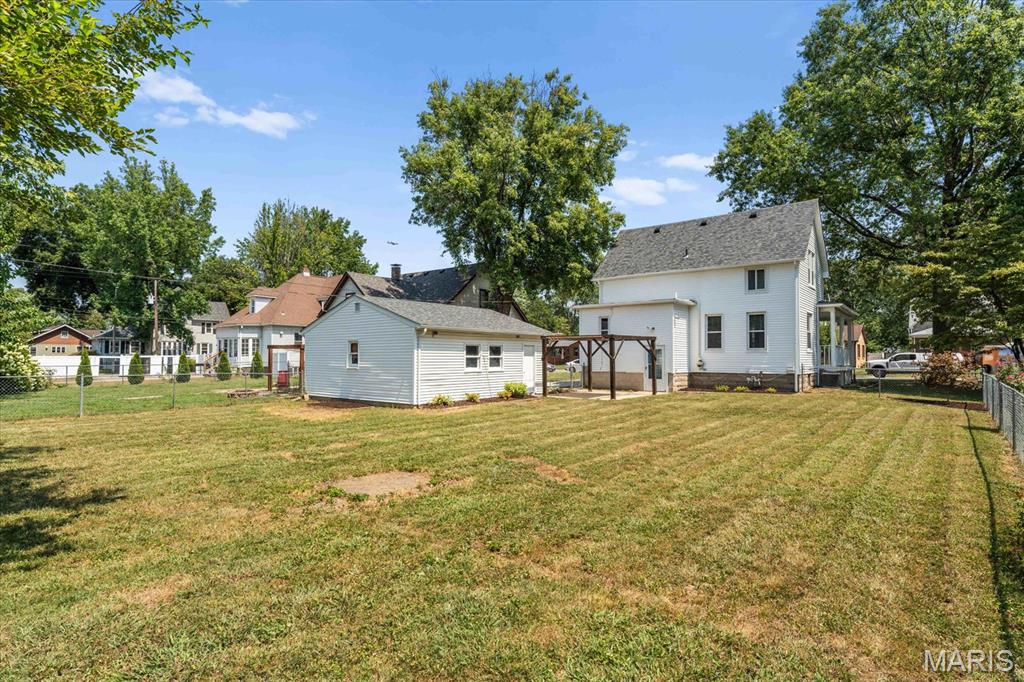 Captivating Folk Victorian home just blocks from the vibrant O’Fallon Downtown District is a must see! Step onto the inviting wrap-around front porch and through the front door into a grand entry foyer, featuring a stunning half-turn staircase that sets the tone for the home’s historic elegance. The main level boasts soaring ceilings and an open flow, ideal for both daily living and entertaining. The well-appointed kitchen, complete with a convenient bar for seating, seamlessly connects to the dining room, which also provides access to the front porch—perfect for morning coffee or evening gatherings. Plus access to the living room with historic solid pocket doors for added privacy. A charming main-level half bath and laundry/pantry complete the main level. Second Level: three generously sized bedrooms and a large full hall bath. The exterior is as impressive as the interior, featuring new roof, updated siding, and a detached, oversized two-car garage. The expansive, fenced yard offers a private oasis for outdoor activities and relaxation. The unfinished basement provides ample storage and a Woods Basement Waterproof System. Living here means being part of a dynamic OFallon community, with restaurants, coffee shops, and shopping just a short stroll away. Schools: O’Fallon School District -Marie Schaefer (K-5) -Fulton (6-8) – OTHS (9-12)