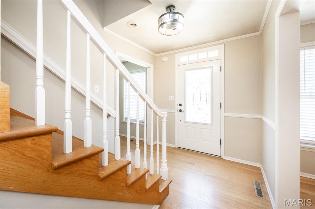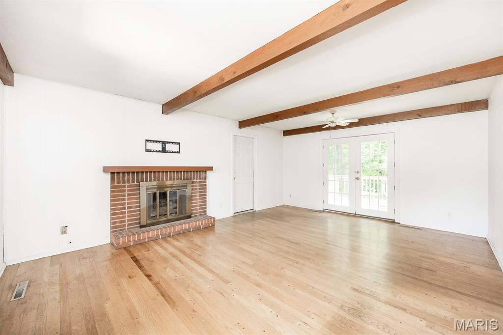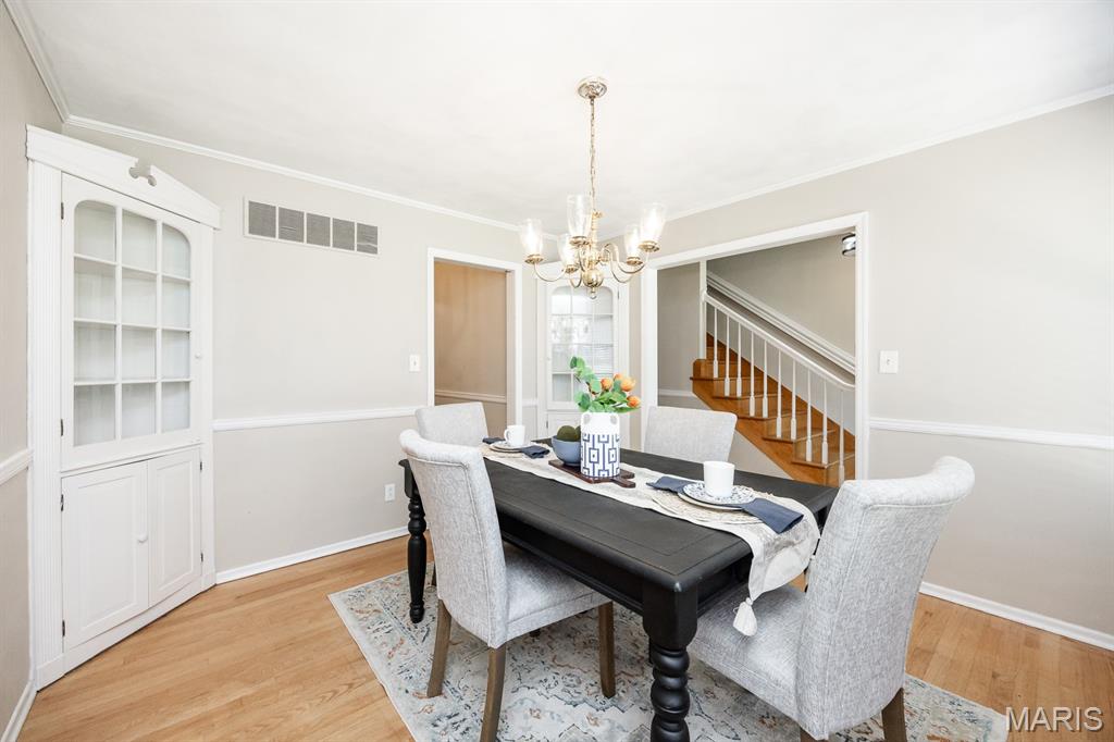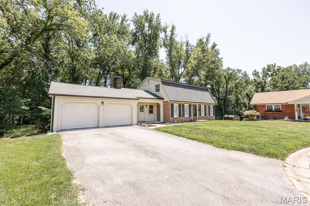 Price Adjustment! Spacious 4 Bedroom 4 Bath Dutch Colonel in a cul-de-sac. New windows (soon to be installed) on main floor and upstairs bedroom windows. This beautiful home comes with a well balanced mix of original and modern features making this home a must see. Featuring; 2 Fireplaces, Primary Suite, One main level bedroom, Main level bath, Beamed ceiling, Original built ins, Wood flooring, Dining room, Living room, Family room, French door, Crown molding, Recreation room with bar, Luxury vinyl flooring, Bonus room or 5th bedroom non conforming, Walkout basement, Bathroom in basement, Utility room with storage, Attached garage, Scenic backyard, Covered brick patio, Deck. Convenience is the key to this location quick Hwy or Interstate access, Metro link, and Bike Trails. Updated features include: New roof May-25, New Gutters May-25, Landscaping June-25, Fresh paint June-25, Lighting 6-25, Ceiling fans 25. Move in ready!