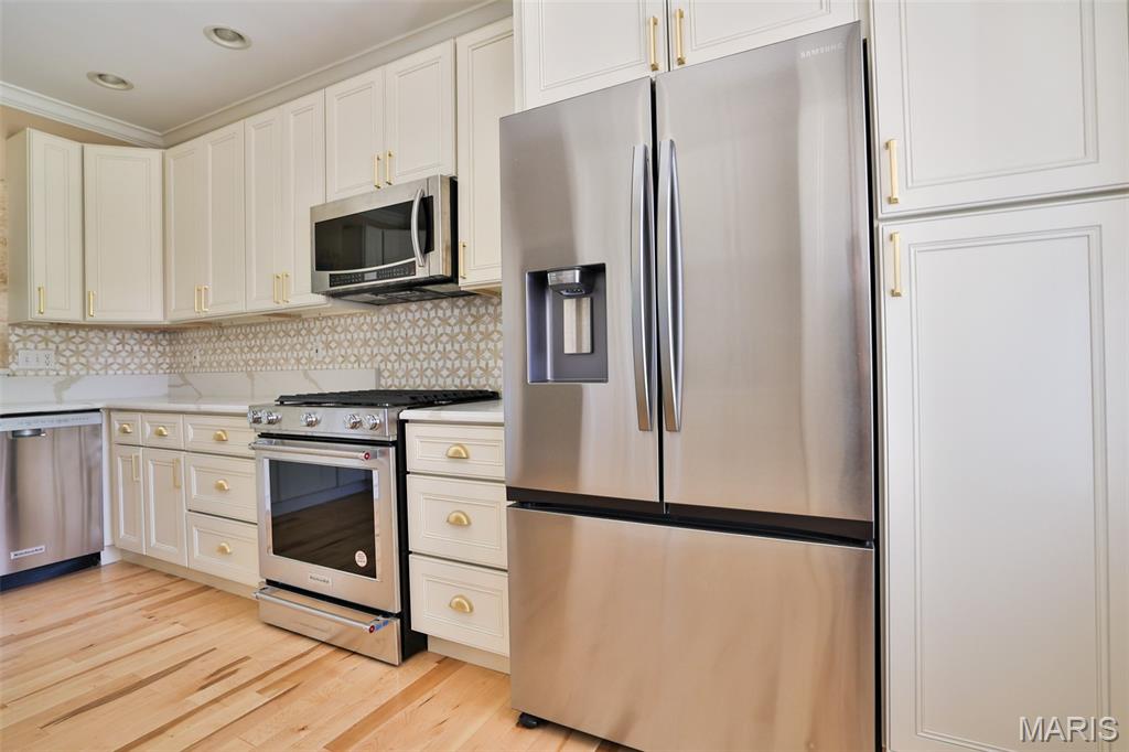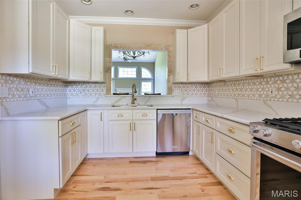 Discover this stunning townhouse in the heart of Edwardsville offering spacious, maintenance-free living! Step inside to a brand-new designer kitchen featuring gold accents, marble backsplash, and quartz countertops. The open-concept dining and living room boasts soaring ceilings and a cozy fireplace. The main-floor primary suite is a true retreat with a luxurious bathroom that includes a freestanding tub, double vanities, and a custom marble shower. Even the powder bath on the main level is a showstopper with thoughtful, high-end design. Upstairs, you’ll find two generously sized bedrooms, a full bath with tub and shower, and a loft-style balcony overlooking the main level, creating a connected, airy feel. Step out back to your private deck backing to serene woods. The walk-out basement impresses with tall ceilings, a custom bar, recreation and family room with fireplace, additional bedroom, full bath, and another patio. This one truly has it all—schedule your private showing today! Roof 6/25