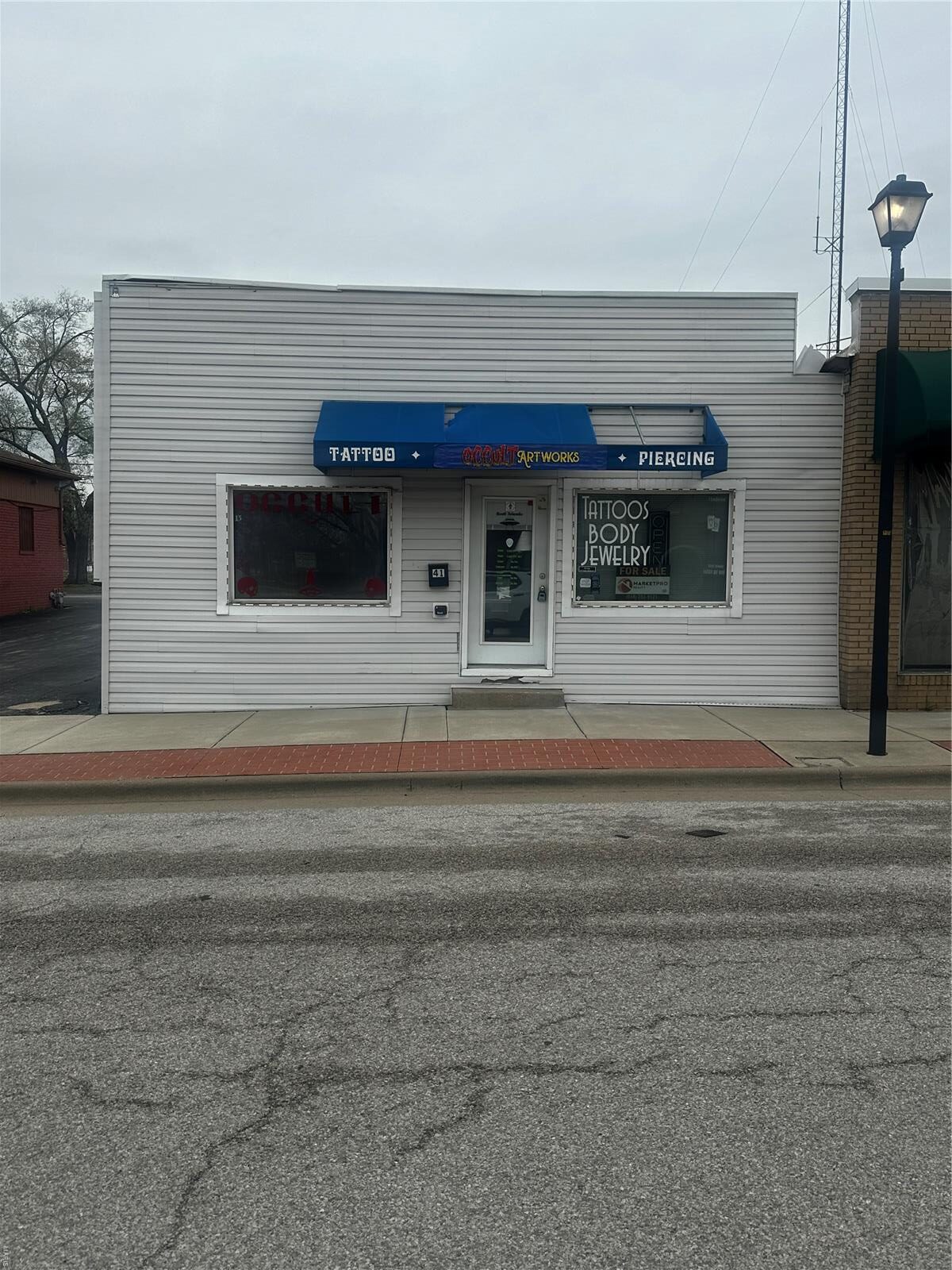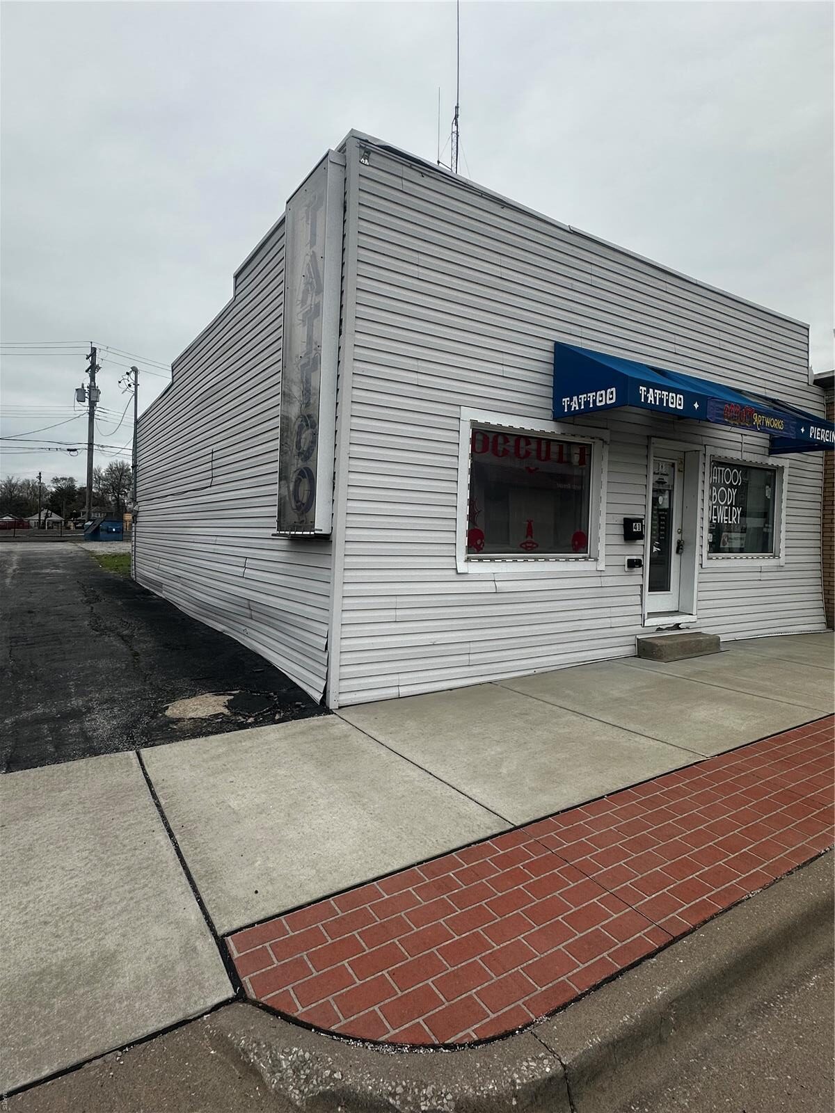 Looking to start up your own business, and own the building instead of leasing for less? Or, opportunity to buy and lease out to a business owner, the possibilities are endless. In the past this operated as a tattoo/piercing parlor, but can be re-invented as an office building/small business of your choosing. Large picture windows will meet you at the front of this building for plenty of natural lighting, inside is a waiting area, with room for 4+ chairs, two display cases stay with sale, desk, light table, computer, security cameras, LED open sign and additional LED sign-the laptop to operate the sign lights and cameras also stay. In the tattooing area you will find a large room with two tattoo chairs, one functional sink, and plumbing for a secondary sink (just needs sink bowl and faucets) with a multitude of outlets. Break room area with kitchenette and half bath-also a small back room used for piercings, gravel parking lot in back. Take a look today! Location: Downtown, High Traffic