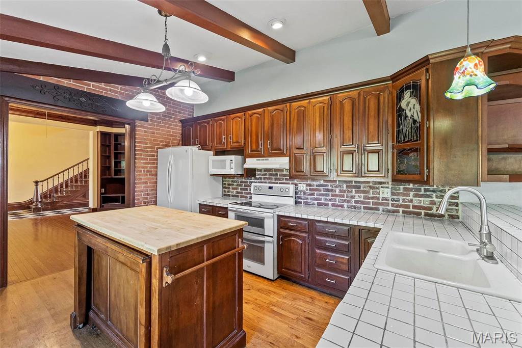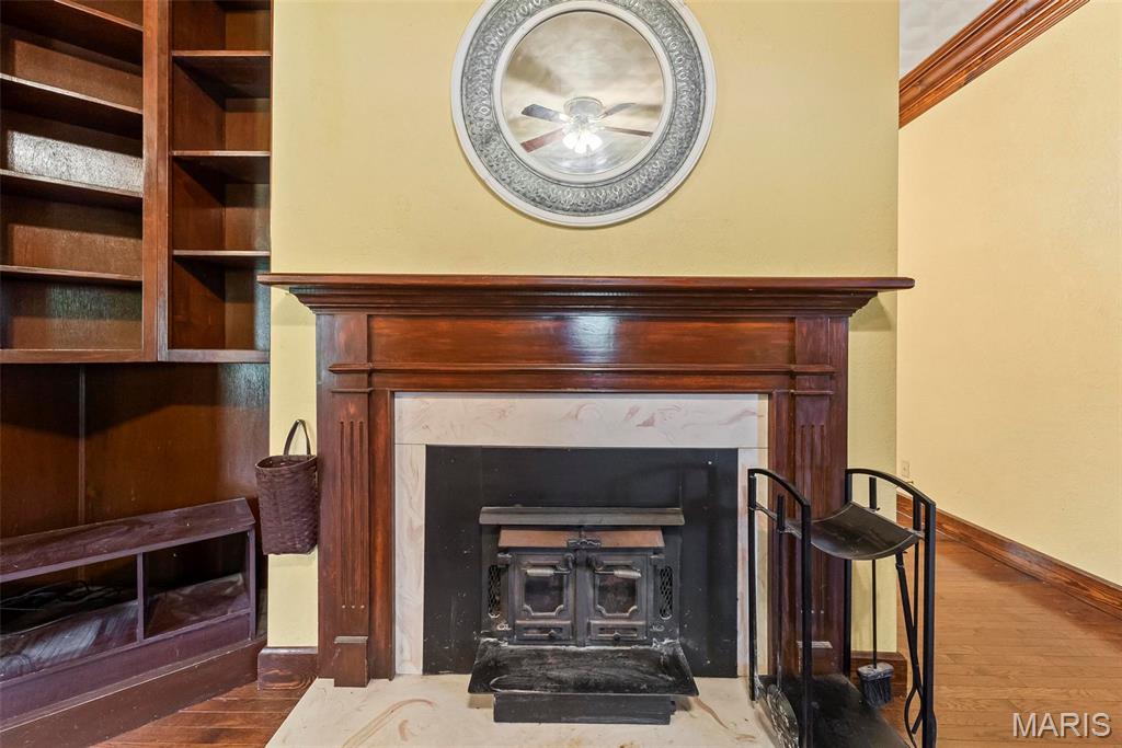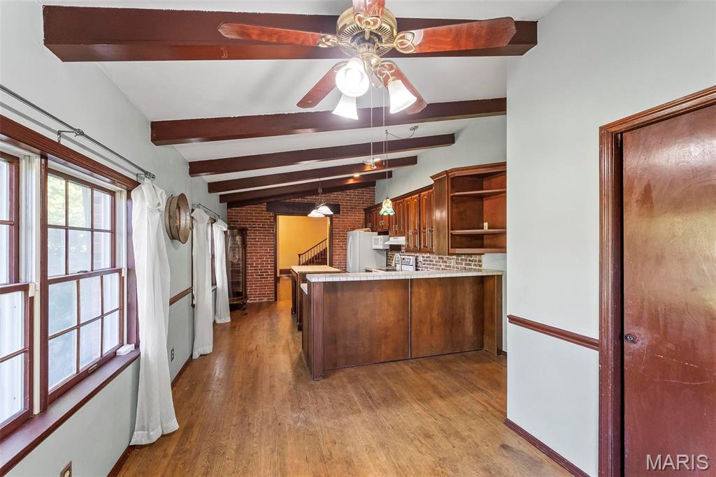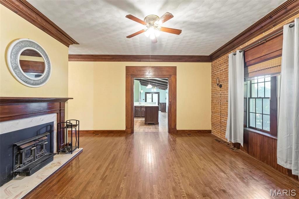 Welcome to this beautifully restored, meticulously maintained historic brick home on 1.39-acre corner lot. Located across from a scenic walking trail, this 5-BR residence offers timeless character & modern convenience. Step inside to a warm and inviting foyer adorned w/ original hardwood trim & built-ins that highlight the home’s craftsmanship. The living room features a wood-burning fireplace & plenty of windows throughout invite natural light to pour in. The spacious kitchen offers ample cabinet space, tile countertops, & appliances—ideal for both everyday living and entertaining. Main-floor Mother-in-Law suite adds versatility & comfort for multi-generational living or guest accommodations. Upstairs, you’ll find 3 bedrooms along w/ a bonus area. A charming carriage house is located just behind the main home. Perfect for extra guest space or a creative studio, possibilities are endless. Carriage house 500 sq.ft. Enjoy the peaceful setting while being located minutes from SAFB, I-64.