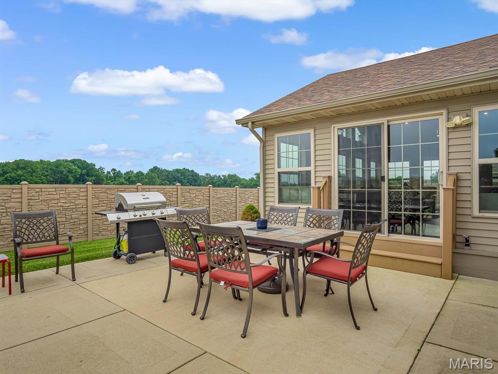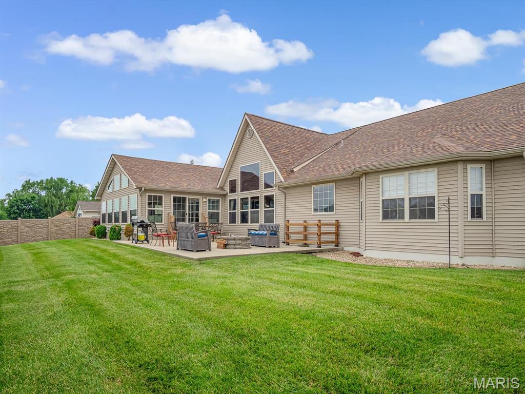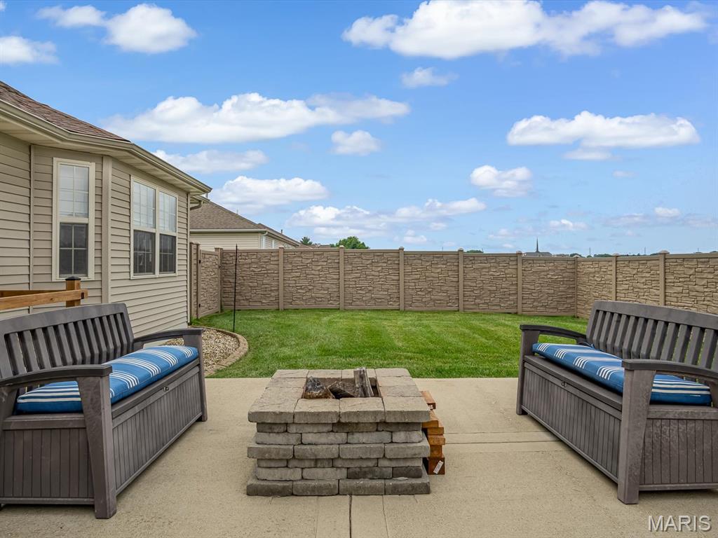 Outside is your private retreat! The expansive 20 x 27 patio with a fire pit, private backyard boasts a superior rock wall polyethylene fence.