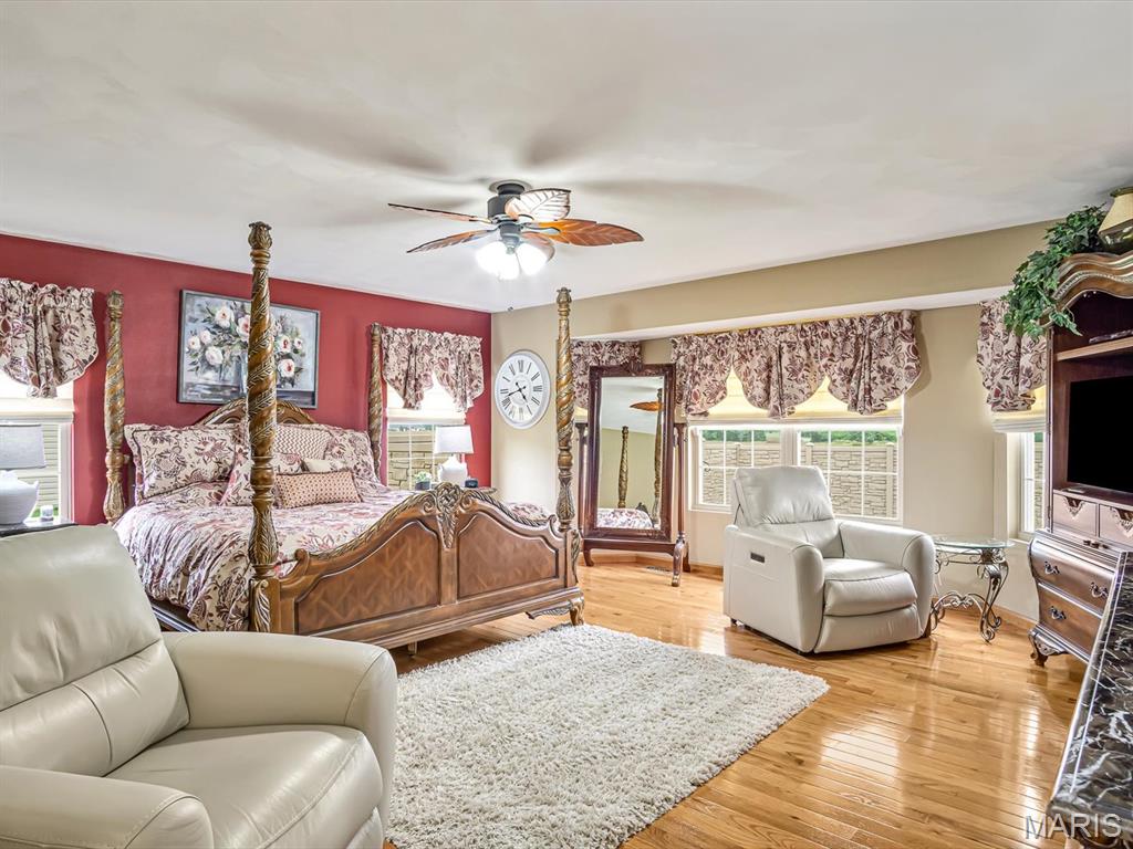 Expansive Primary Bedroom suite, complete with a beautiful bay window, a spacious walk-in closet, and an luxurious ensuite bath featuring a jetted tub and a walk-in shower.
