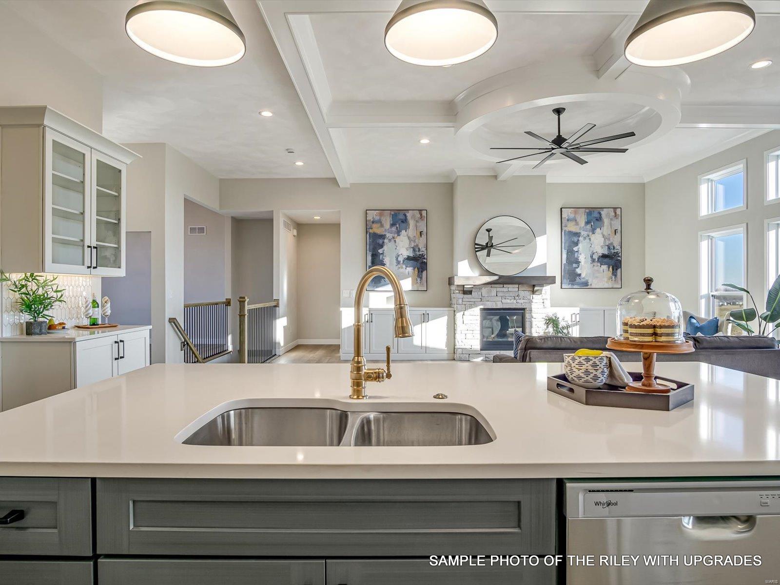 Inside, you’ll find these Luxurious Standard Features, Granite countertops, an elegant iron spindle staircase, vault ceiling and a cozy gas fireplace with a marble surround and wood mantle.