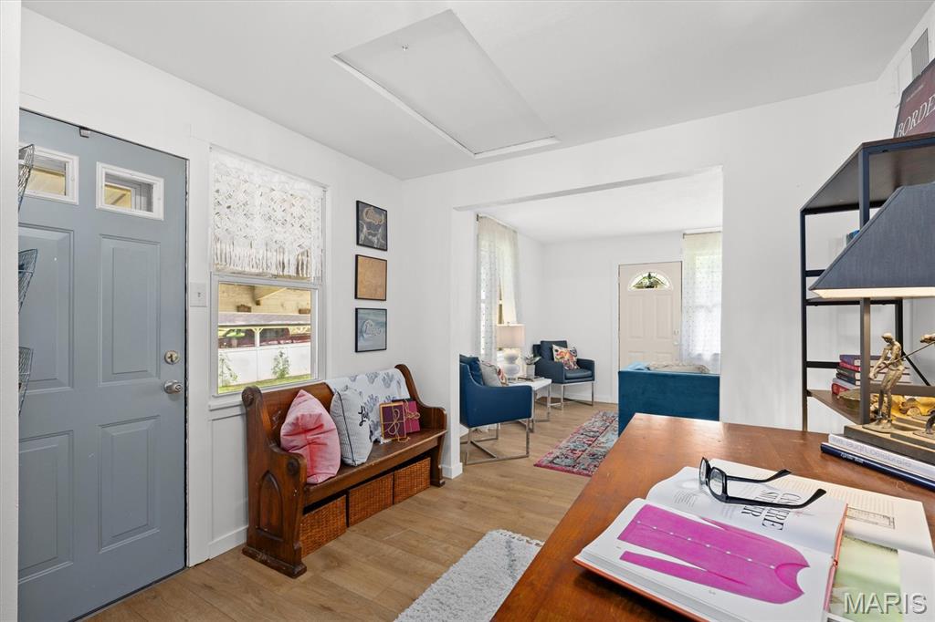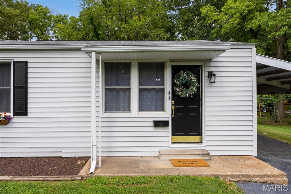 Welcome to the charming 44 Apple Tree Lane, where comfort meets convenience! This delightful cottage has been tastefully refreshed, offering a warm, inviting atmosphere and a smart, functional layout for easy, carefree living. Tucked away at the end of a peaceful, low-traffic street, the home provides abundant privacy while still just minutes from dining, shopping, schools, and Scott AFB. Upon arrival, enjoy the convenience of extra parking spaces plus an attached carport. Inside, find a bright, sun-filled living room that flows into a versatile bonus space—perfect for a home office, reading nook, or hobby room. The spacious eat-in kitchen boasts generous cabinetry, ample counter space for meal prep, and an adjacent laundry area with a half bath. From the kitchen, find access to the backyard retreat, featuring a covered patio ideal for morning coffee or evening relaxation. Two comfortable bedrooms and a full bath complete the home’s efficient single-level design. Recent updates include fresh interior paint, some new flooring, stylish light fixtures, and more—making this property truly move-in ready. Whether you’re downsizing, buying a first home, or looking for a low-maintenance lifestyle, this charming property has it all!