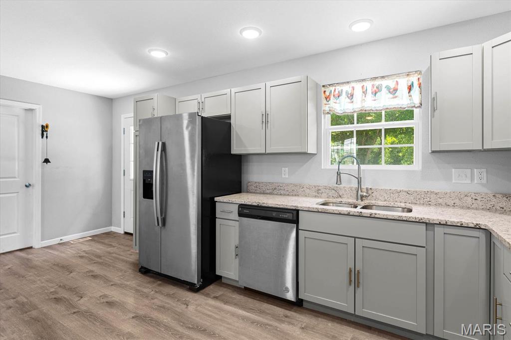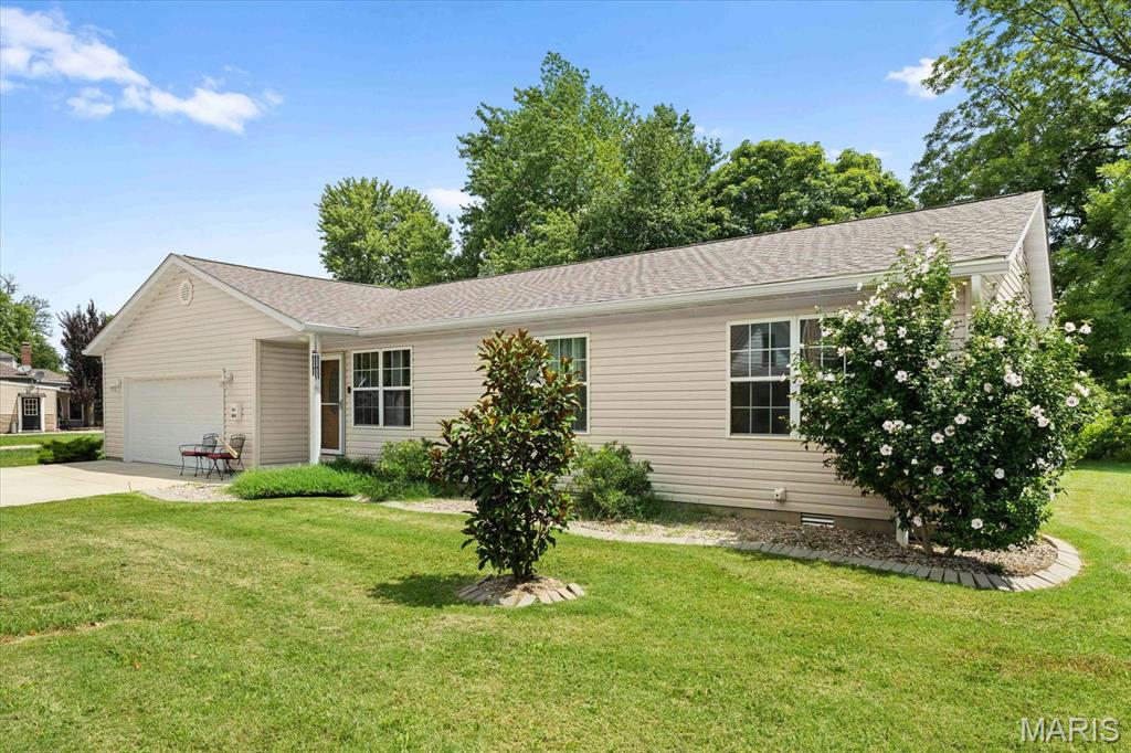 Now available is a lovely Ranch-style home with an open floor plan. This home, built just four years ago, features three bedrooms, two bathrooms, and a two-car garage. Home has a HUGE kitchen/eating area with an abundance of grey cabinets, beautiful granite countertops, and stainless steel appliances. The large primary bedroom features a walk-in closet and a master bath with a shower. There are two additional nice-sized bedrooms and a convenient hall bath. Off the kitchen, you will find a large laundry/furnace room, and the washer and dryer stay with the home. There is an oversized two-car garage (24′ x 24′) with additional area for storage or workshop area & separate breaker for a freezer or 2nd refrigerator. UPGRADES: Waterproof vinyl plank flooring, high-quality carpet in bedrooms, energy-efficient vinyl windows, Rudd high-efficiency furnace, and white trim & doors throughout. Situated on a spacious 3/4 ACRE(+-) lot with patio (16 ‘x 14’) and large driveway for parking. The yard is partly fenced with a 6-foot white vinyl fence. The patio has a retractable awning. Call TODAY for a showing!