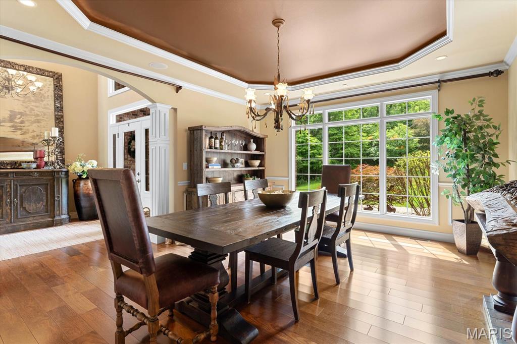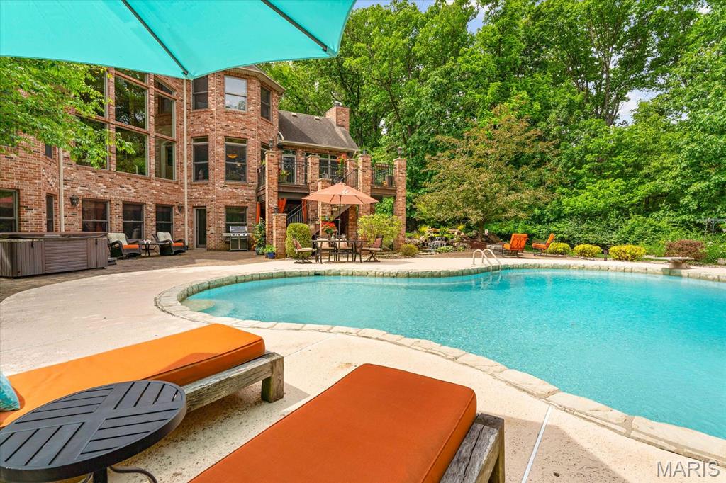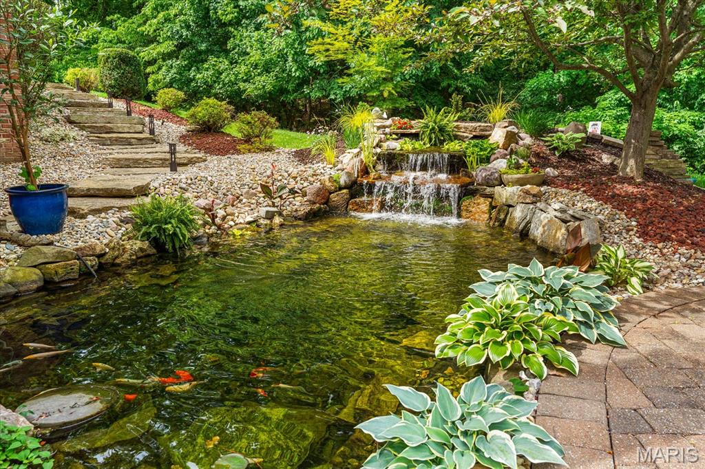 The walk-out lower level is an entertainer’s dream with a family room, wet bar, kitchenette, 2nd laundry, two bonus rooms, and a medical spa. Outdoors, enjoy serene luxury with an inground heated saltwater pool, a tranquil 5000-gallon koi pond with a waterfall, an Ipe wood deck, and a covered patio with a bromic heater. The 3-car climate-controlled,1000 sqft side-entry garage, central vac system, and geothermal HVAC offer efficiency and convenience. This home is a true sanctuary of comfort and style. A rare find that seamlessly combines natural beauty with modern luxury! Close to shopping, dining, The Great River Road, and The Nature Institute. Allow 24 hour advance notice for all scheduled showings.