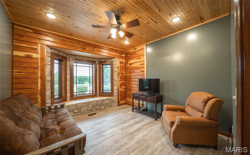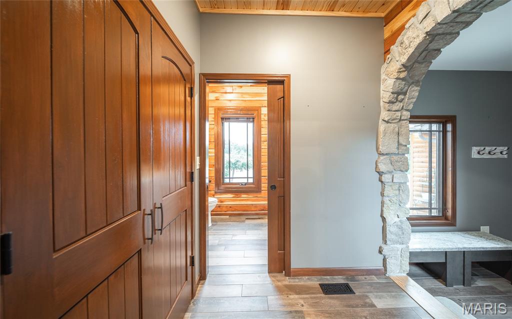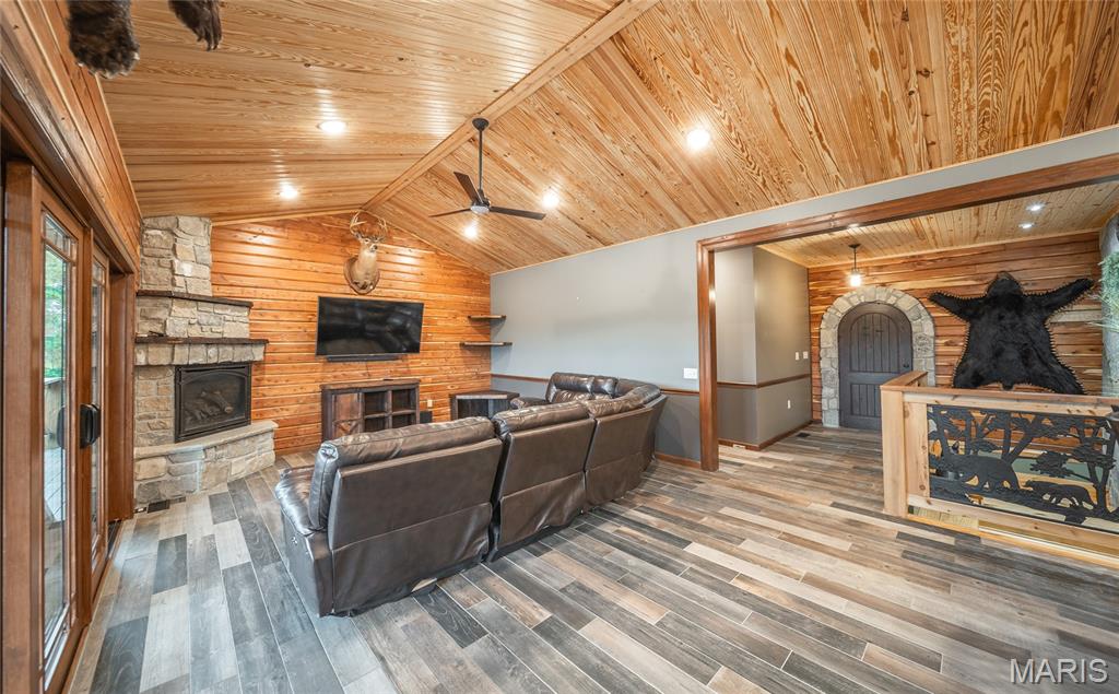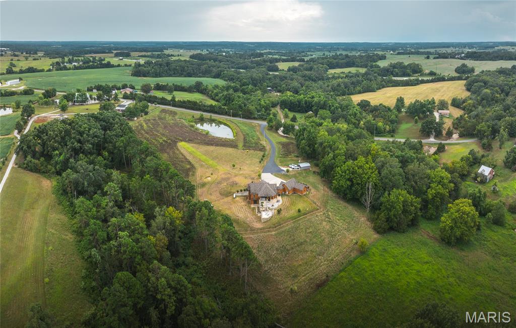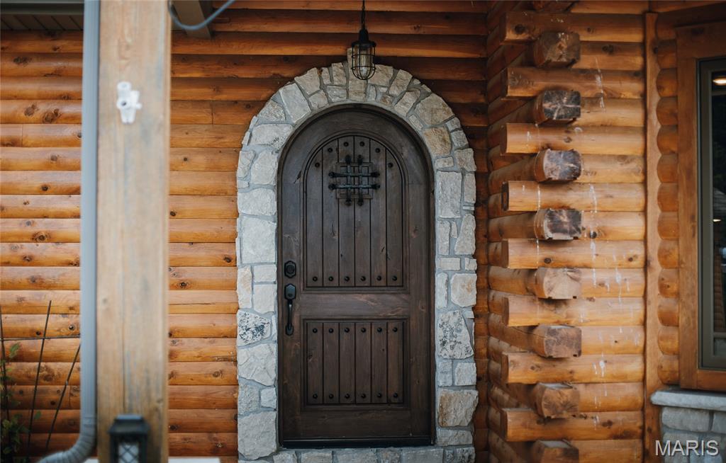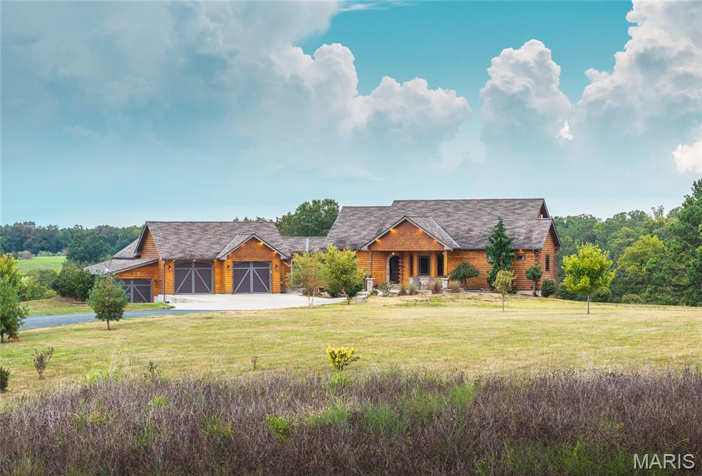 This beautiful log home sits just outside of Perryville and only minutes from Interstate 55, making it easy to enjoy quiet country living with quick access to town or the highway. The home rests on 12 +/- acres of open ground with a stocked pond, offering both recreation and peaceful views. A big emphasis on landscaping makes the exterior feel just as welcoming as the inside. The home has all the warmth and charm of a mountain cabin, with a layout designed for comfort. On the main level you’ll find the master bedroom with a private master bath featuring his and her closets, along with another full bathroom and an office space. The open kitchen and family room create a great gathering area, and the main-level laundry adds convenience. The finished basement provides even more living space with an additional bedroom, full bath, a finished bonus room, plus a second stove top and refrigerator—perfect for guests or entertaining. Outside, the back patio with a built-in fireplace sets the stage for relaxing evenings or hosting friends and family. An attached 2-car garage rounds out the home. If you’ve been looking for a cozy log home with acreage, water, and a convenient location, this property is ready to check all the boxes.