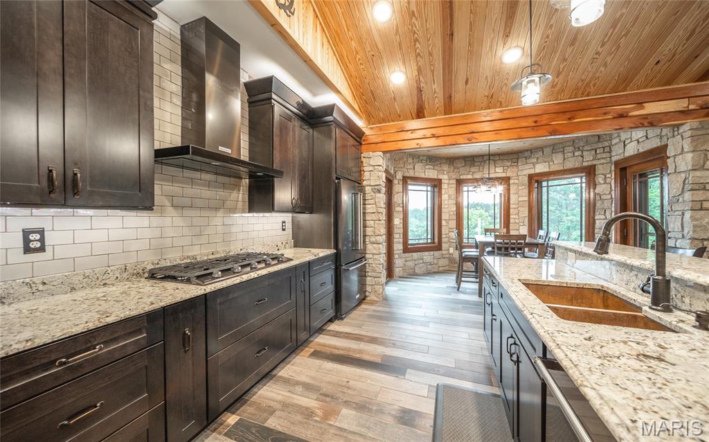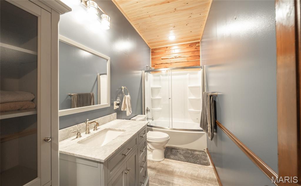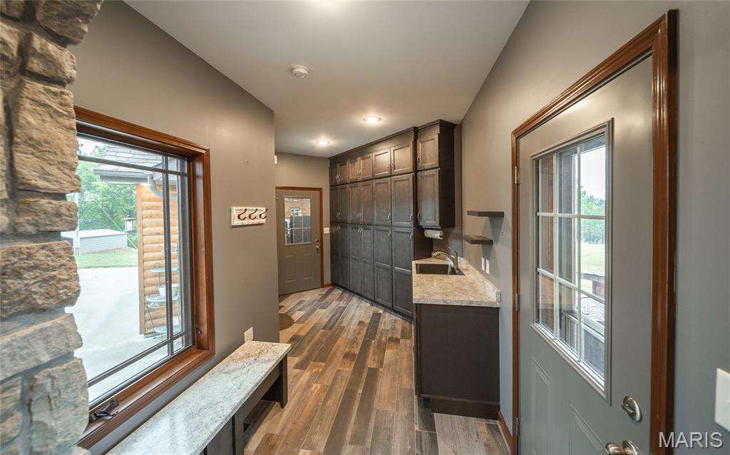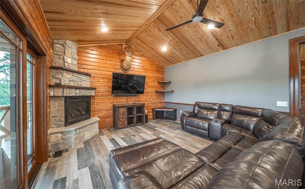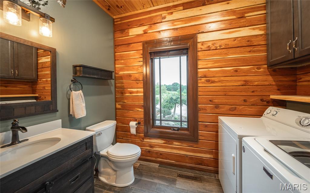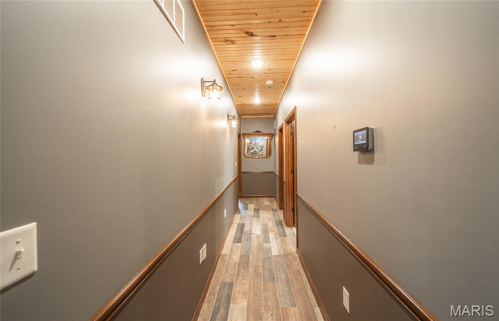 This beautiful log home sits just outside of Perryville and only minutes from Interstate 55, making it easy to enjoy quiet country living with quick access to town or the highway. The home rests on 12 +/- acres of open ground with a stocked pond, offering both recreation and peaceful views. A big emphasis on landscaping makes the exterior feel just as welcoming as the inside. The home has all the warmth and charm of a mountain cabin, with a layout designed for comfort. On the main level you’ll find the master bedroom with a private master bath featuring his and her closets, along with another full bathroom and an office space. The open kitchen and family room create a great gathering area, and the main-level laundry adds convenience. The finished basement provides even more living space with an additional bedroom, full bath, a finished bonus room, plus a second stove top and refrigerator—perfect for guests or entertaining. Outside, the back patio with a built-in fireplace sets the stage for relaxing evenings or hosting friends and family. An attached 2-car garage rounds out the home. If you’ve been looking for a cozy log home with acreage, water, and a convenient location, this property is ready to check all the boxes.