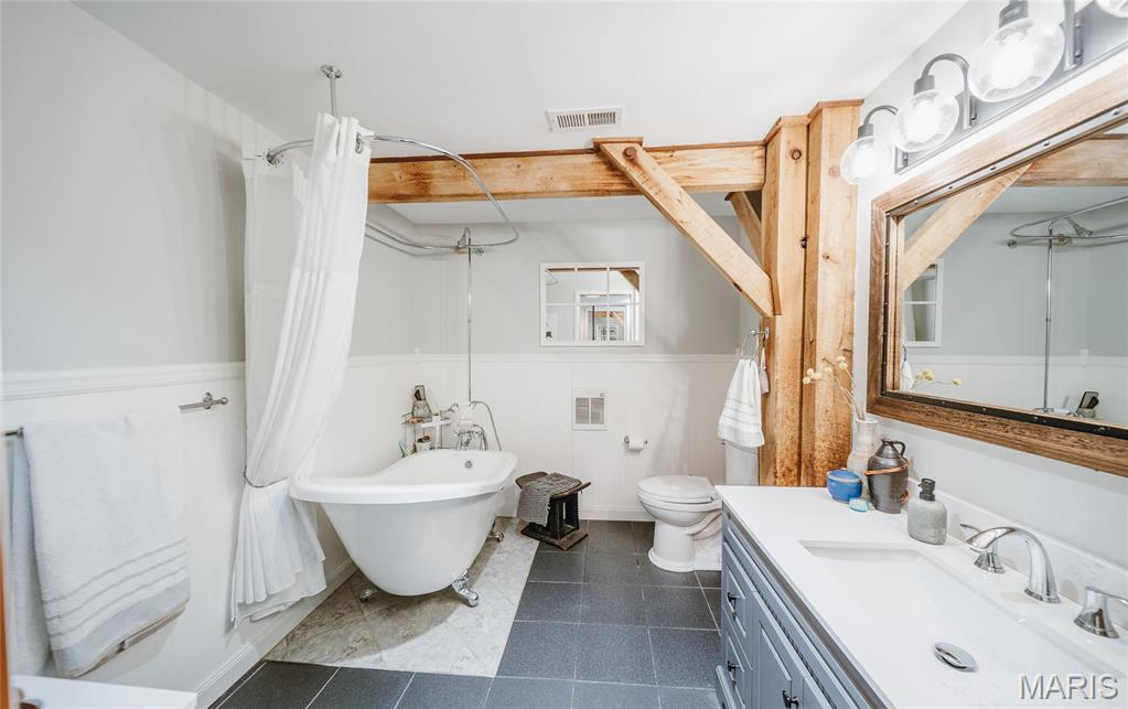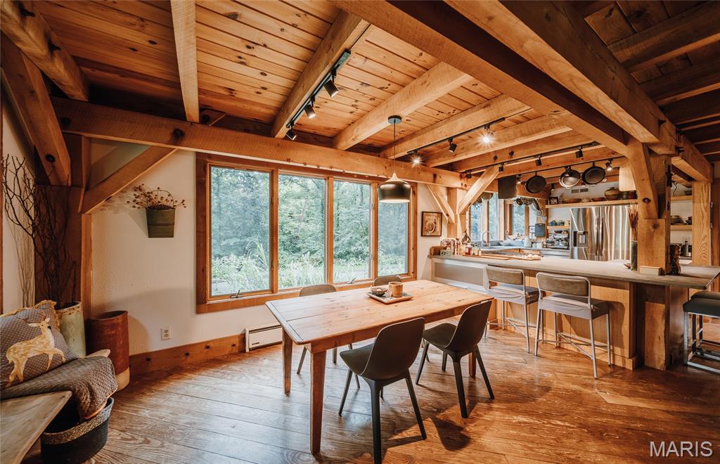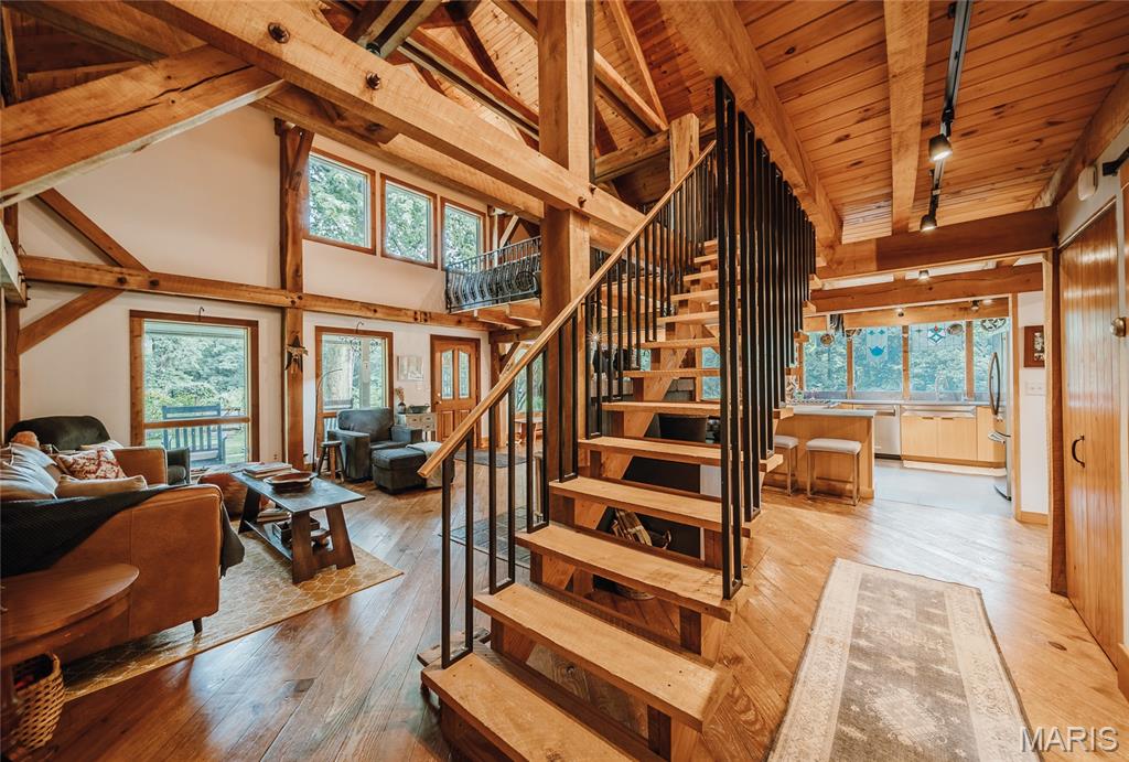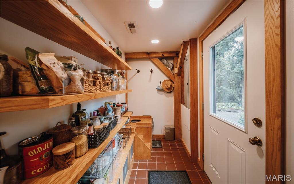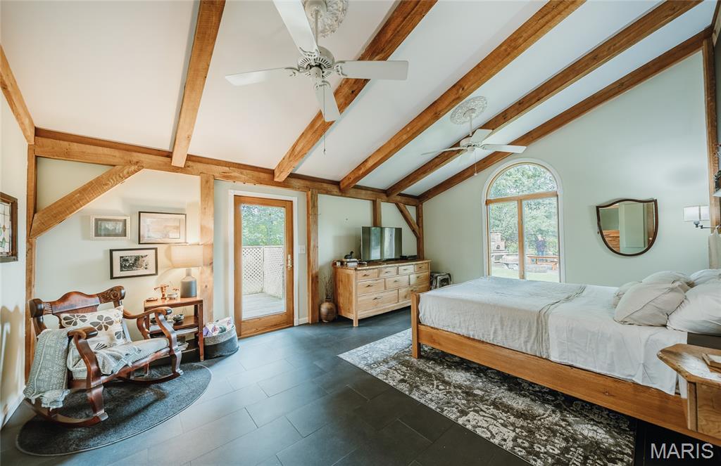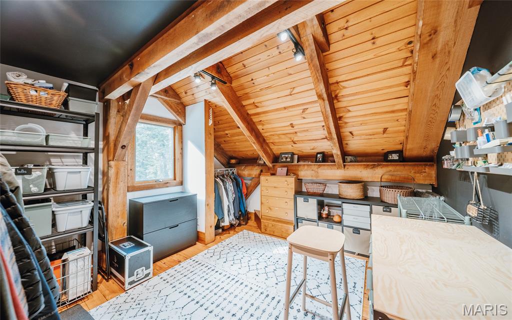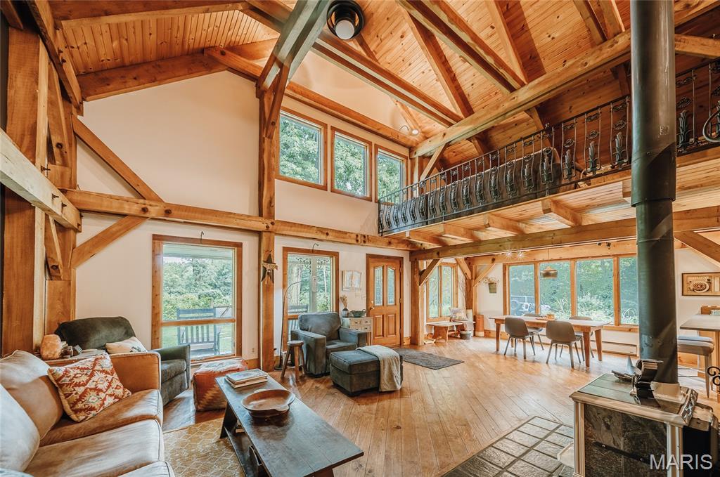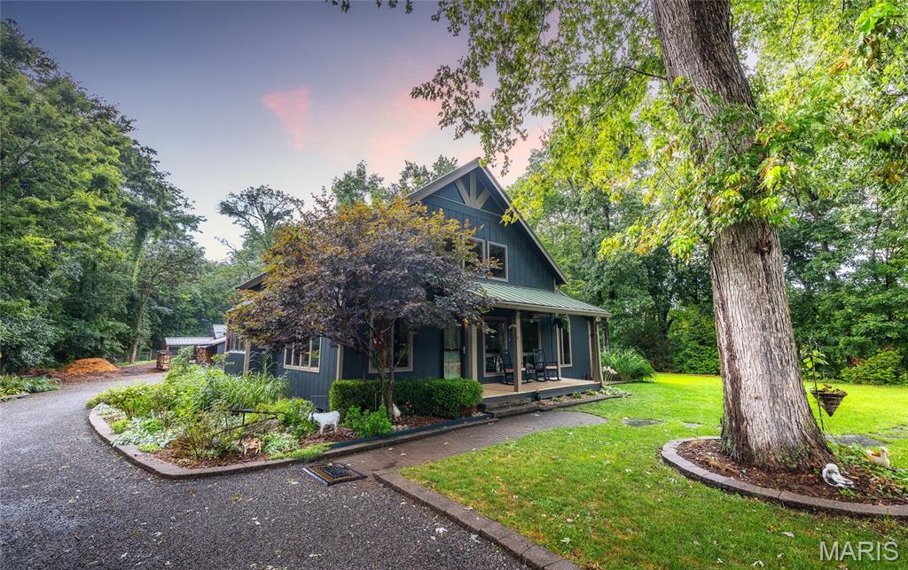 The timber-framed home showcases vaulted white oak ceilings and a striking Hearthstone wood-burning fireplace, creating a warm and inviting atmosphere. The remodeled kitchen and bathroom combine modern finishes with rustic charm, while an outdoor wood-fired pizza oven invites farm-to-table gatherings with family and friends. Located within the highly sought-after Edwardsville School District, this unique property is ideal for those who value self-sufficiency, natural beauty, and a peaceful retreat—just minutes from town.