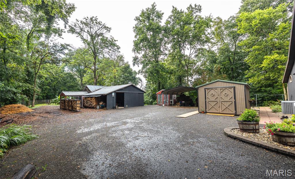 This rare and secluded 5-acre organic homestead offers the perfect blend of privacy, beauty, and sustainable living. Thoughtfully developed over the past 15+ years, the property features lush organic gardens, mature native landscaping, and well-established fenced pastures. A small herd of goats, llamas, and poultry are included, along with multiple functional outbuildings to support your homesteading lifestyle.